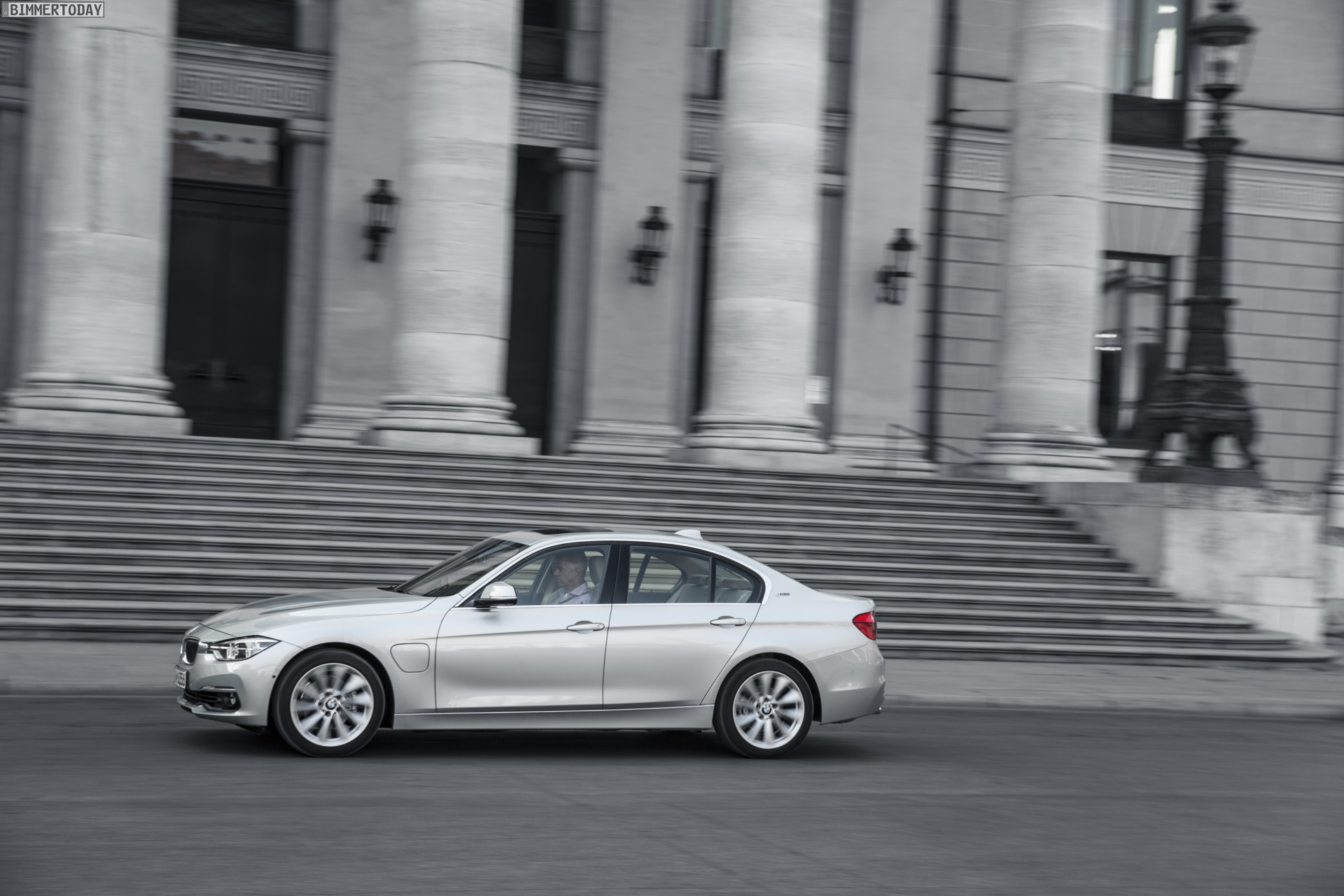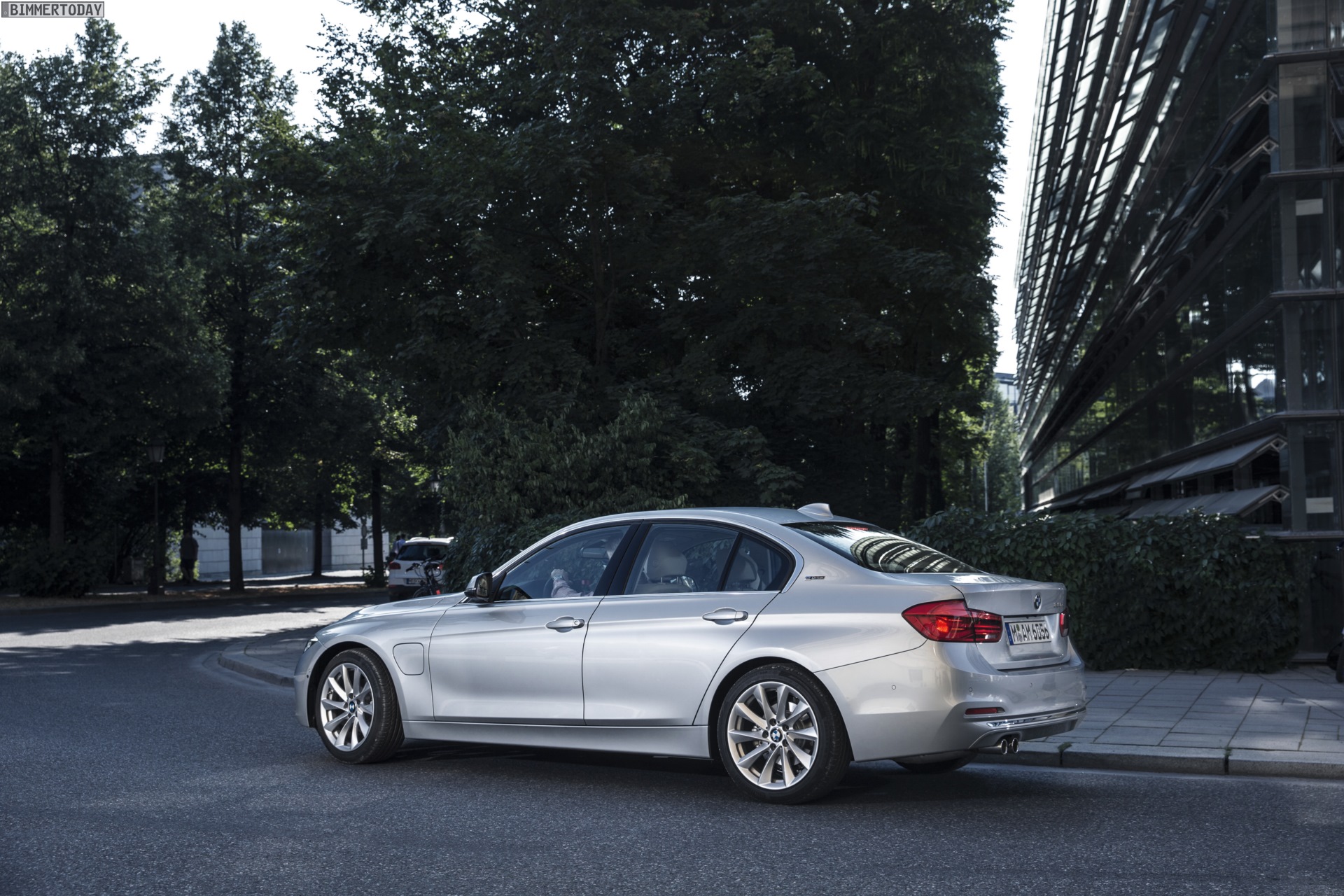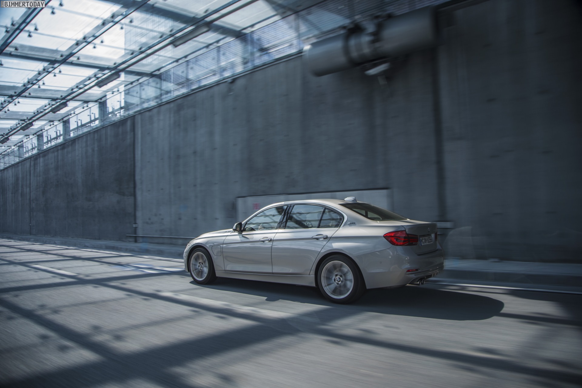 Der zusätzlichen Technik zum Trotz verbleiben im Kofferraum des BMW 330e immerhin 370 Liter Gepäckraum-Volumen, auch die Rückbank bleibt im Verhältnis 40 : 20 : 40 teilbar. Dynamische Fahrer dürfen sich außerdem darüber freuen, dass sich das Gewicht des 330e gleichmäßig auf beide Achsen verteilt. Mit einem EU-Leergewicht von 1.735 Kilogramm ist der Plug-in-Hybrid rund 160 Kilogramm schwerer als ein gewöhnlicher 330i, ein 330d bringt 120 Kilogramm weniger auf die Waage.