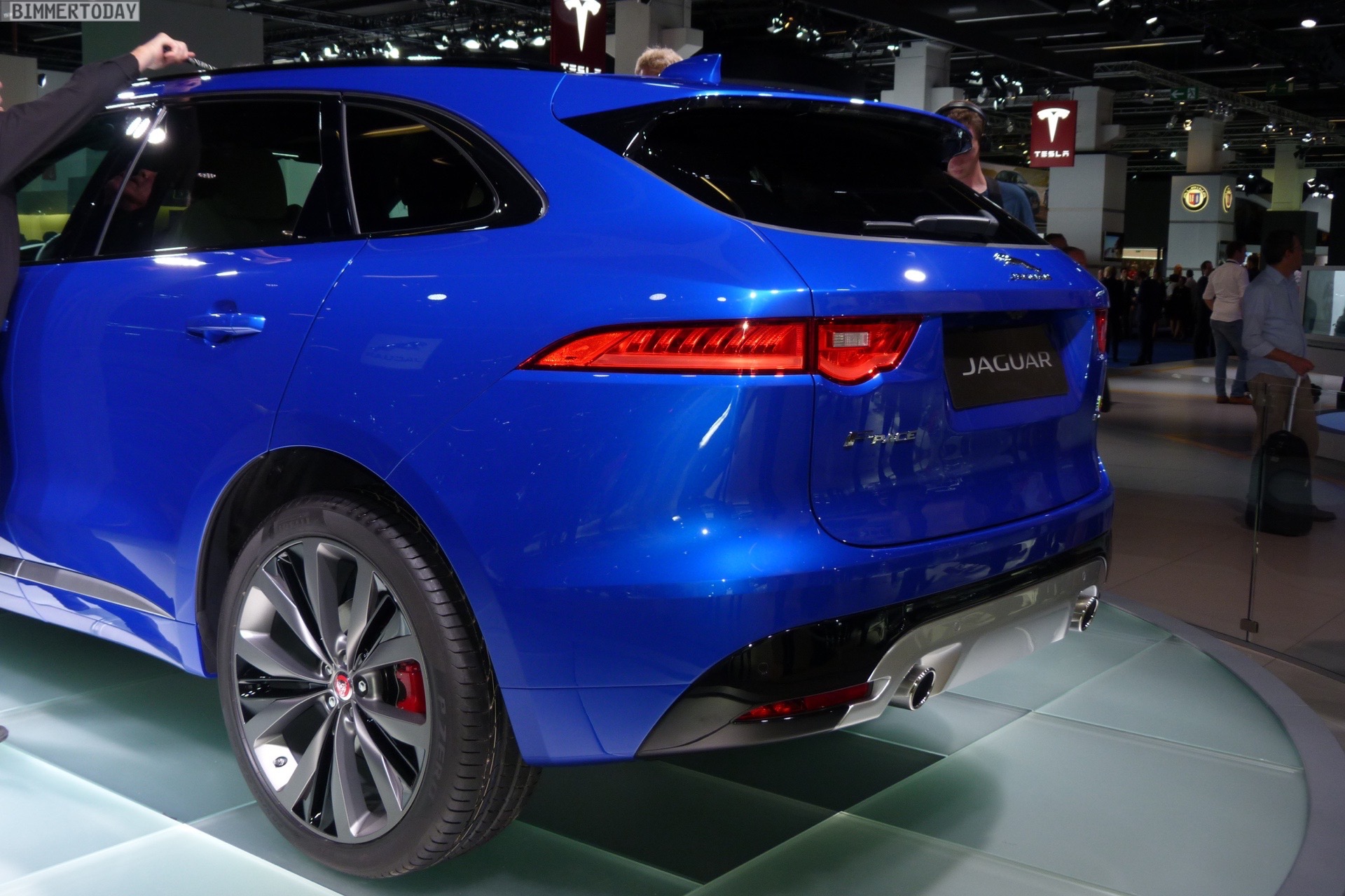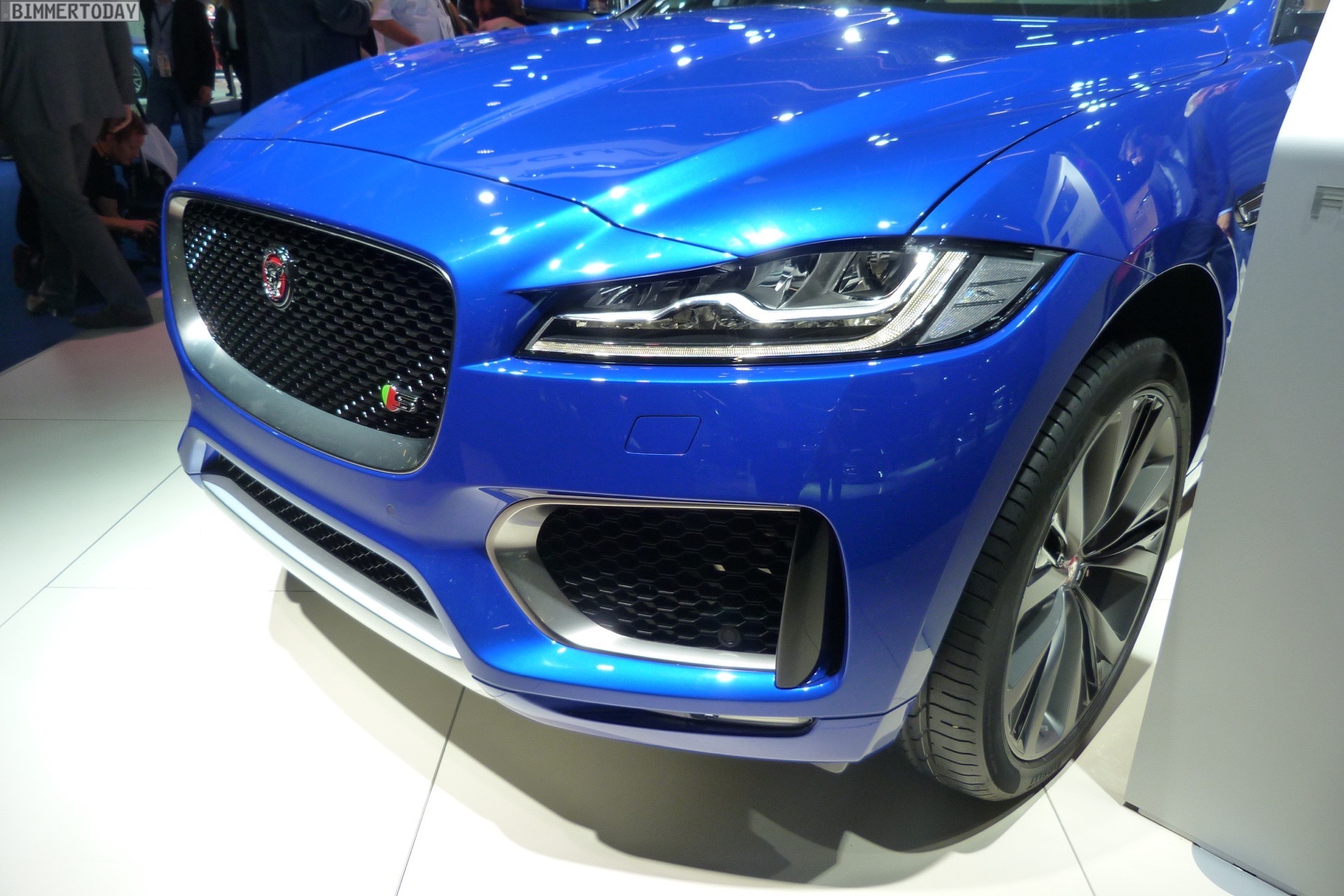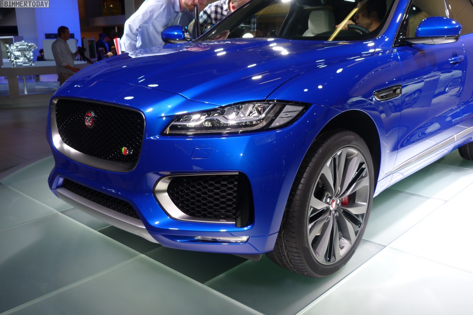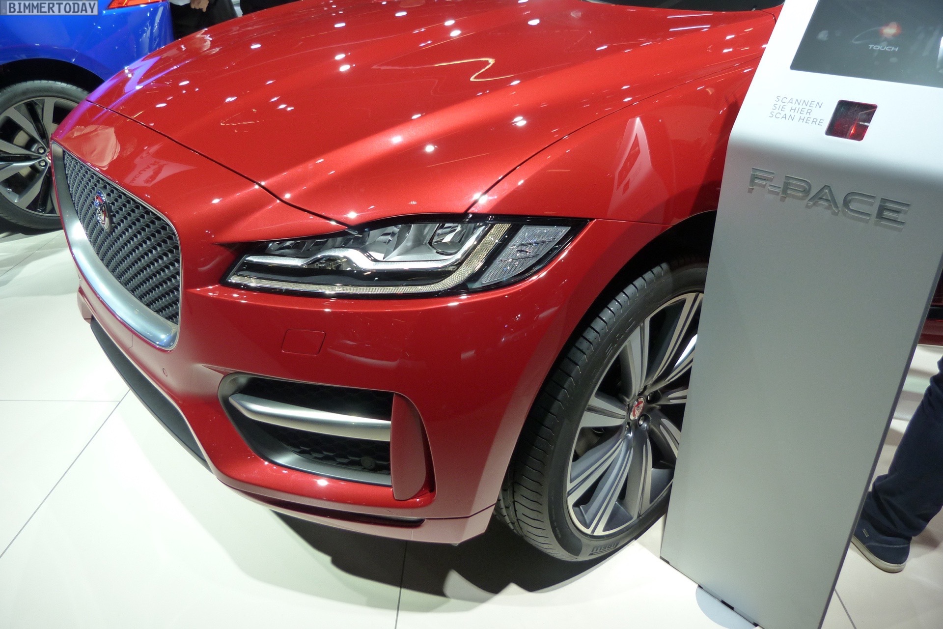 Zur Weltpremiere in Frankfurt zeigt Jaguar den neuen F-Pace nicht nur im strahlenden Blau der First Edition, sondern komplettiert die Farbpalette des Union Jack noch mit zwei weiteren Exemplaren in Rot und Weiß: