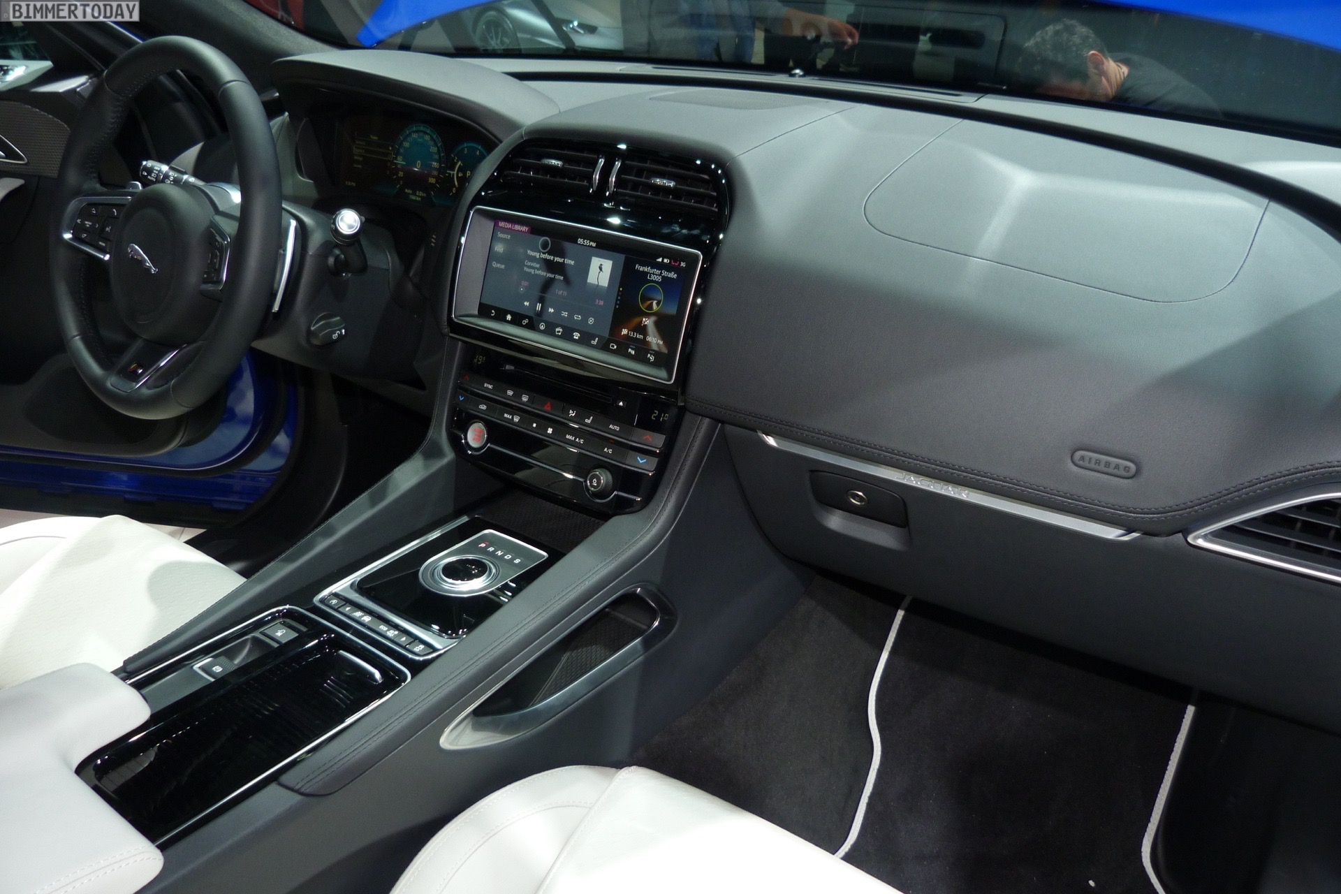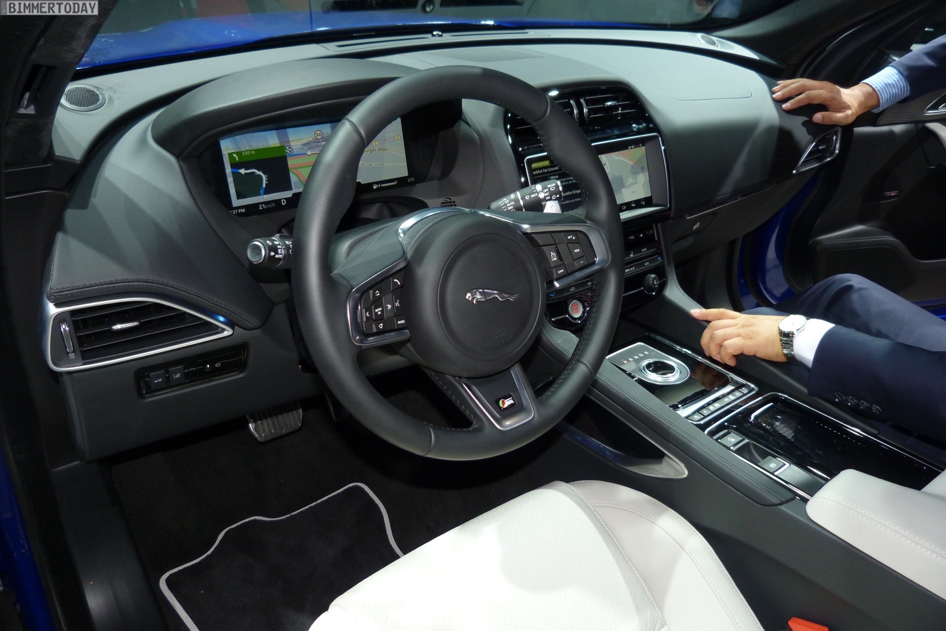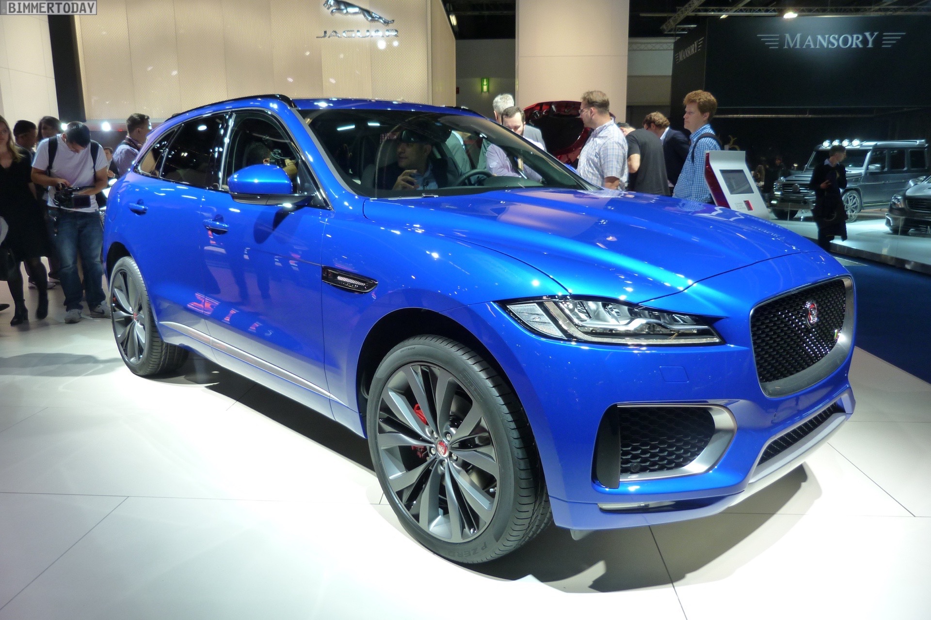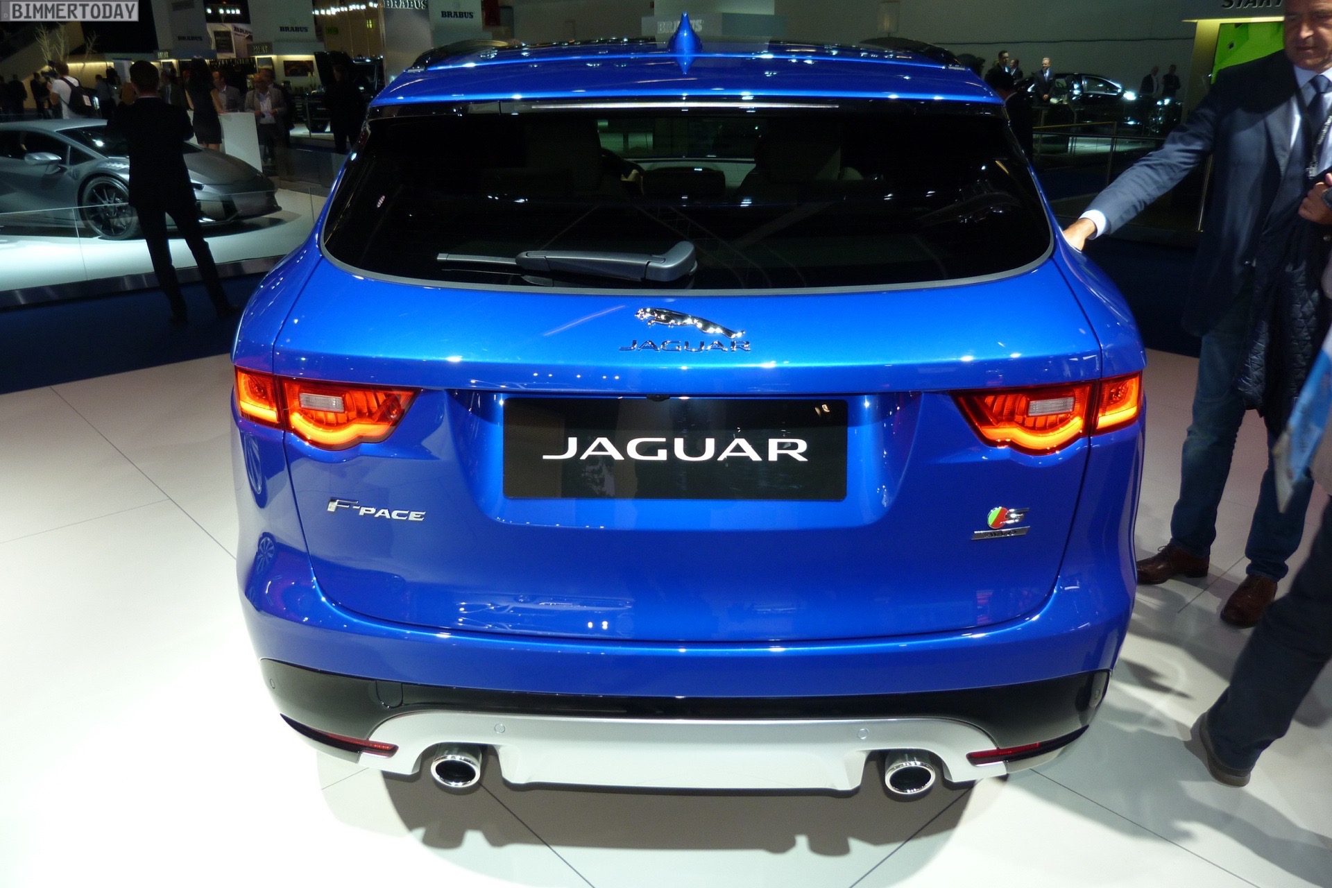Zur Weltpremiere in Frankfurt zeigt Jaguar den neuen F-Pace nicht nur im strahlenden Blau der First Edition, sondern komplettiert die Farbpalette des Union Jack noch mit zwei weiteren Exemplaren in Rot und Weiß: