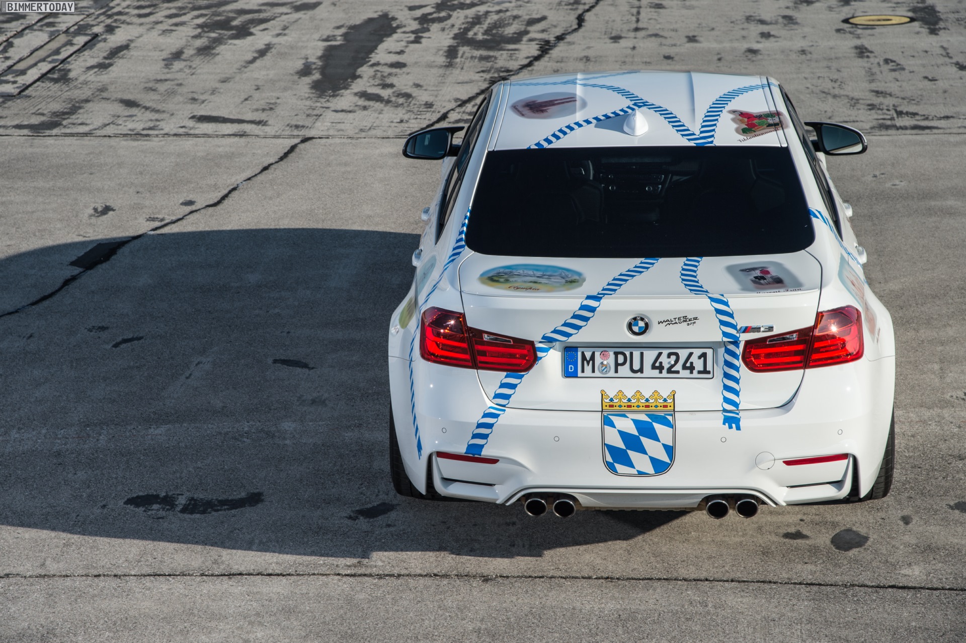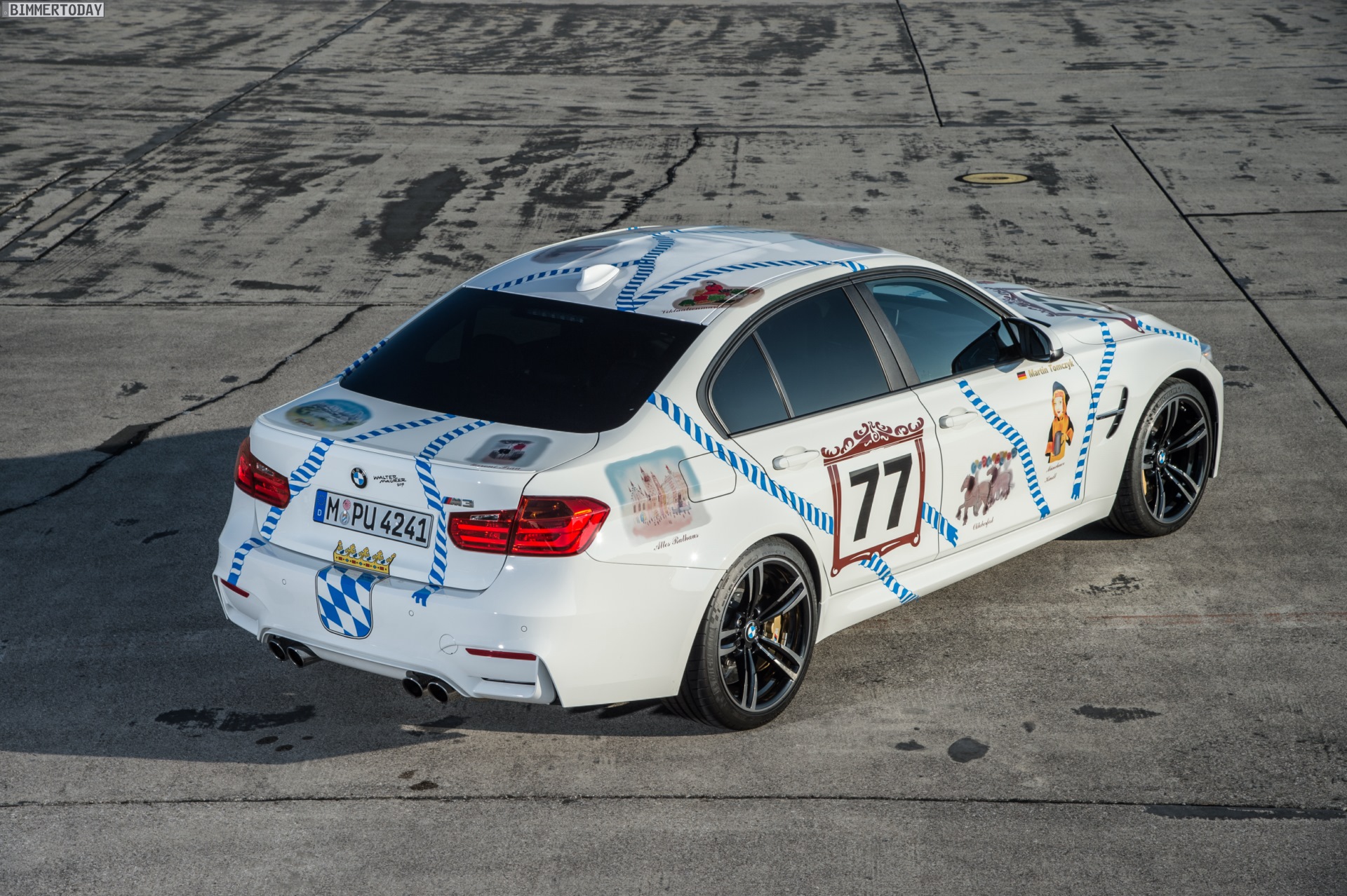 Während Designer Walter Maurer das BMW M1 Procar lackieren durfte, wurden seine Ideen im Fall des BMW M3 Münchner Wirte als Folierung realisiert. Das überzeugende Ergebnis könnte so auch zum Vorbild für andere heimatverbundene BMW-Fahrer werden, denn das Design steht der aktuellen M3 Limousine ausgesprochen gut und garantiert nicht nur in München jede Menge neugierige Blicke.