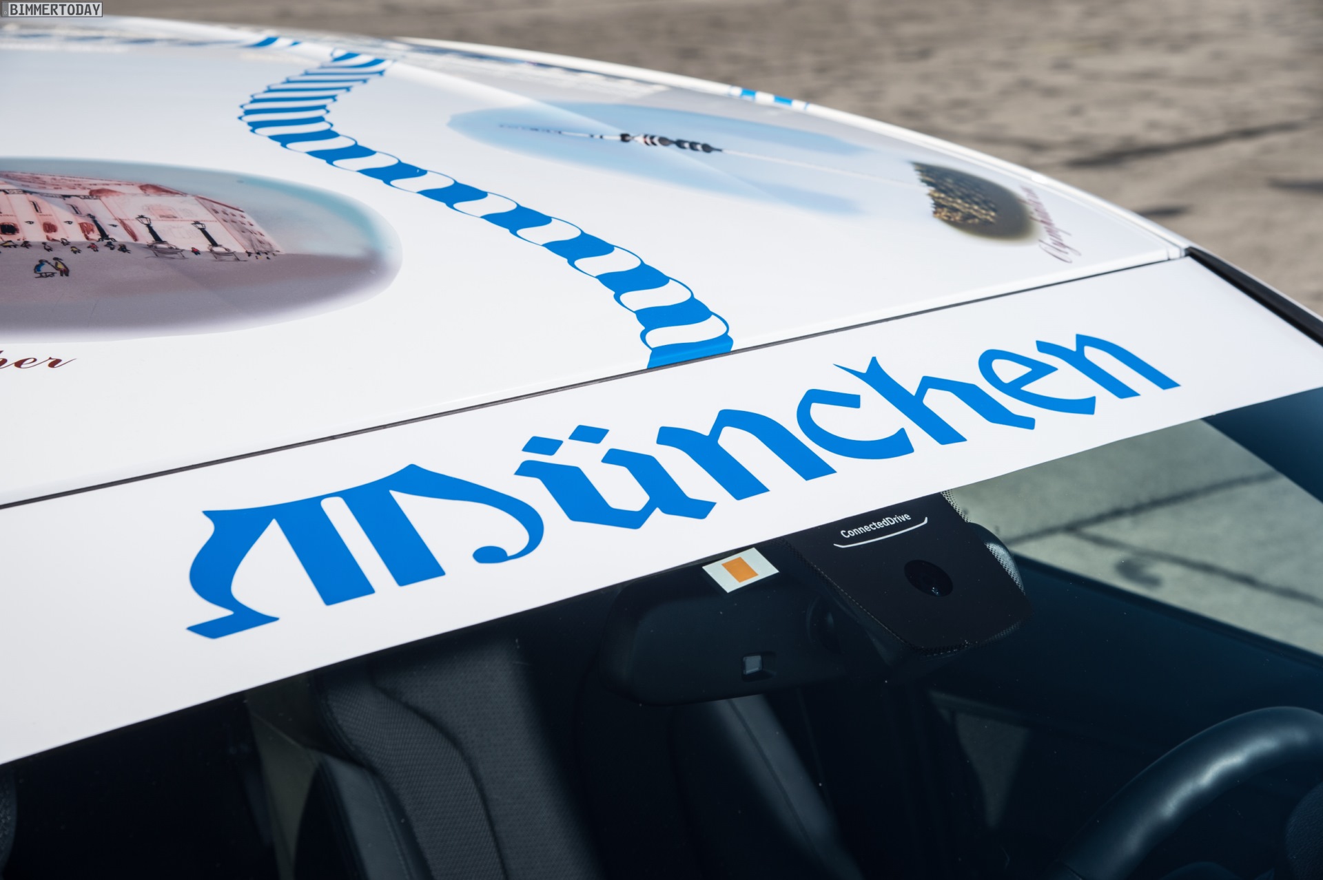 Beide Fahrzeuge feiern mit weiß-blauen Kordeln und Münchner Wahrzeichen wie dem Olympiastadion, der Frauenkirche oder dem BMW Vierzylinder die bayerische Heimat der Marke und sind als klares Zeichen der Verbundenheit von München und BMW zu verstehen.