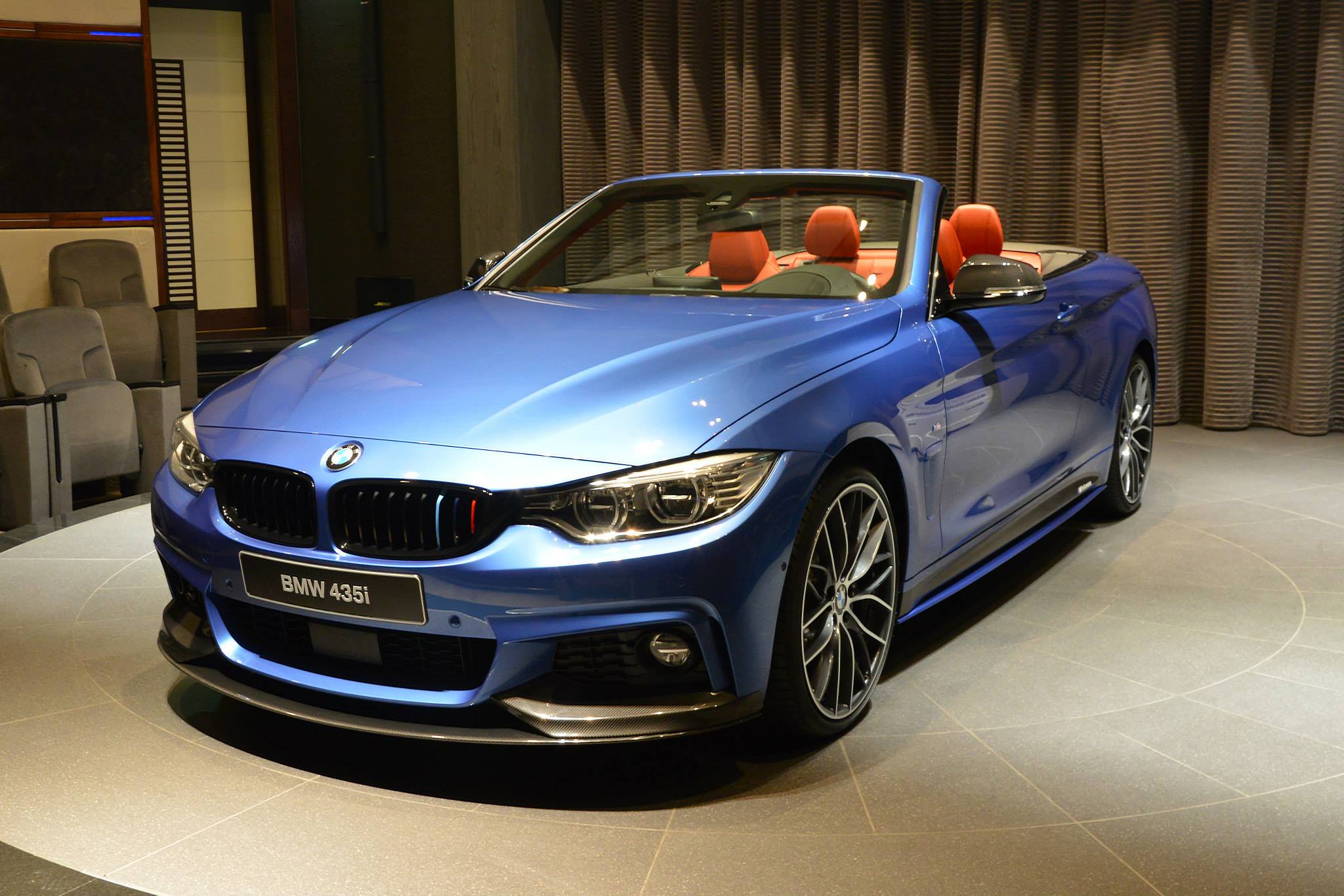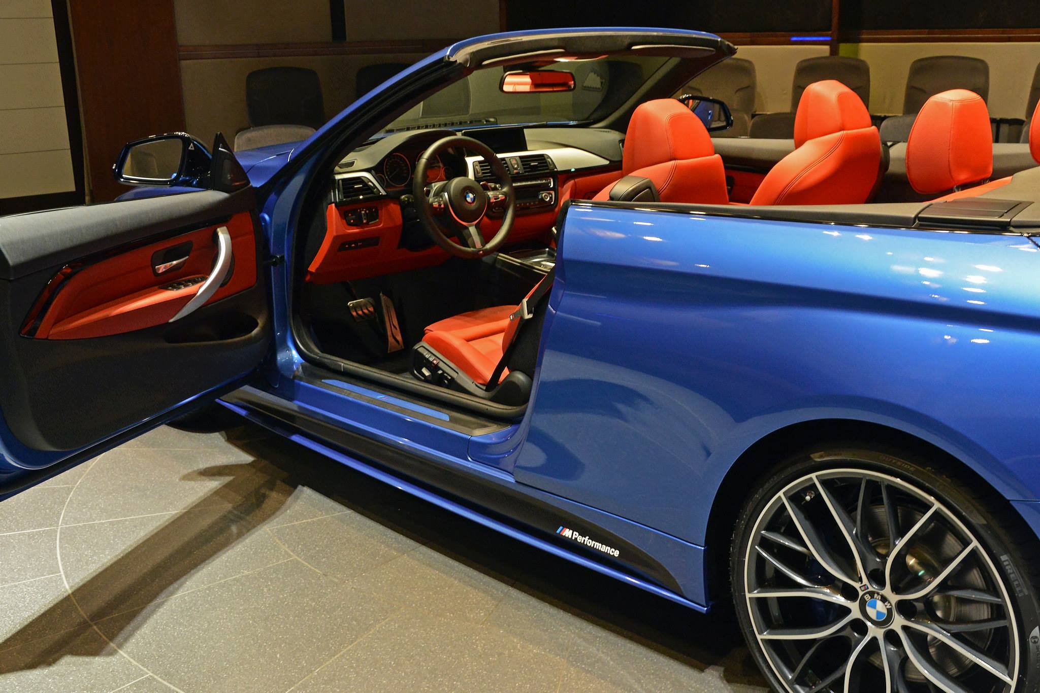 Auch in Kombination mit der beliebten Außenfarbe Estorilblau Metallic sorgen die Tuning-Teile für einen scharfen Kontrast und eine deutlich sportlichere Positionierung. Aktuelle Fotos von BMW Abu Dhabi Motors zeigen, wie stark der 4er mit dem sportlichen Nachrüst-Zubehör aussieht: