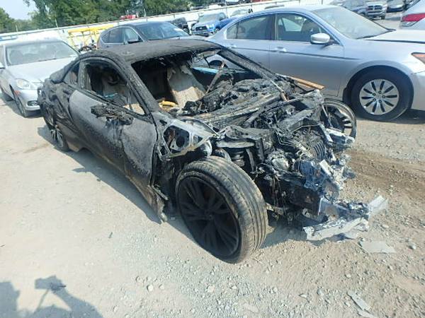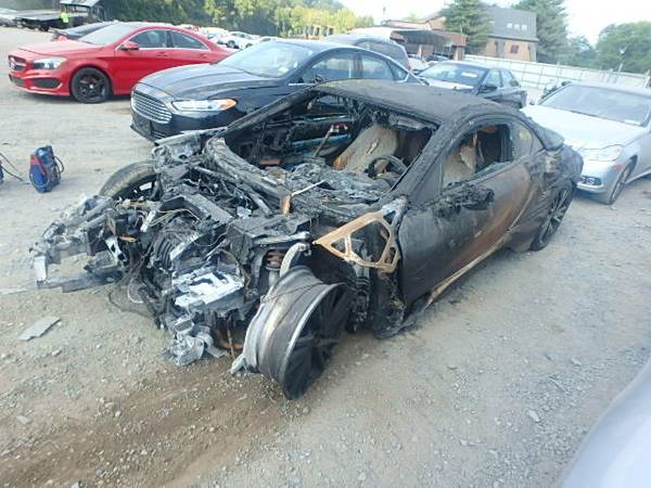 Betrachtet man die Überreste dieses BMW i8 von vorn, lässt sich der Hybrid-Sportwagen auf den ersten Blick kaum erkennen. Ein Feuer hat den vorderen Teil des Fahrzeugs völlig zerstört, aber auch die ab der A-Säule besser als i8 erkennbaren Überreste erinnern eher an ein bizarres Kunstwerk als an eines der fortschrittlichsten Automobile unserer Zeit. Verschenkt wird der verbrannte Sportwagen dennoch nicht, stattdessen verkauft der Besitzer die Reste bei Craigslist.