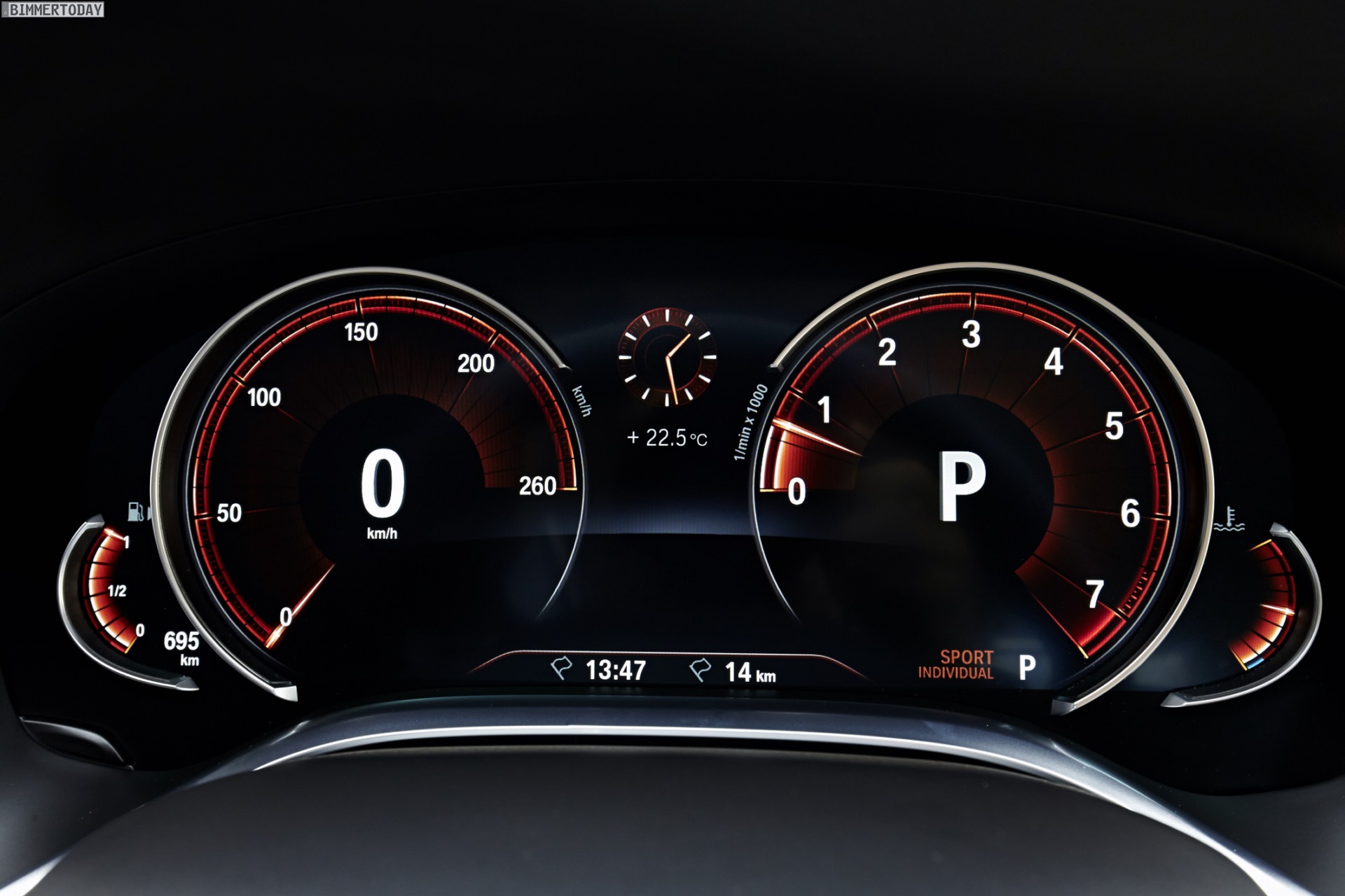 Bei dem von BMW UK konfigurierten BMW 7er G11 sorgt das M Paket sogar für einen Aufpreis von 7.100 Euro, denn es handelt sich um die vorläufige Einstiegs-Motorisierung. Von übertriebener Zurückhaltung kann im Fall des BMW 730d 2015 trotzdem nicht die Rede sein, denn der 265 PS starke Sechszylinder-Diesel beschleunigt die 1.755 Kilogramm leichte Limousine ganz souverän in 6,1 Sekunden auf 100 und erlaubt genau wie die stärkeren Triebwerke eine Höchstgeschwindigkeit von 250 km/h.
