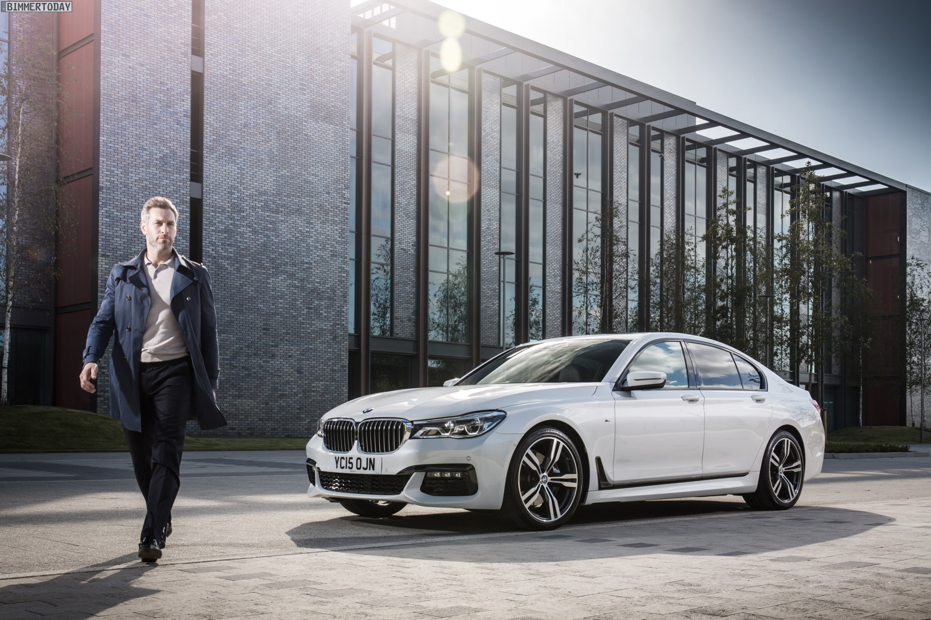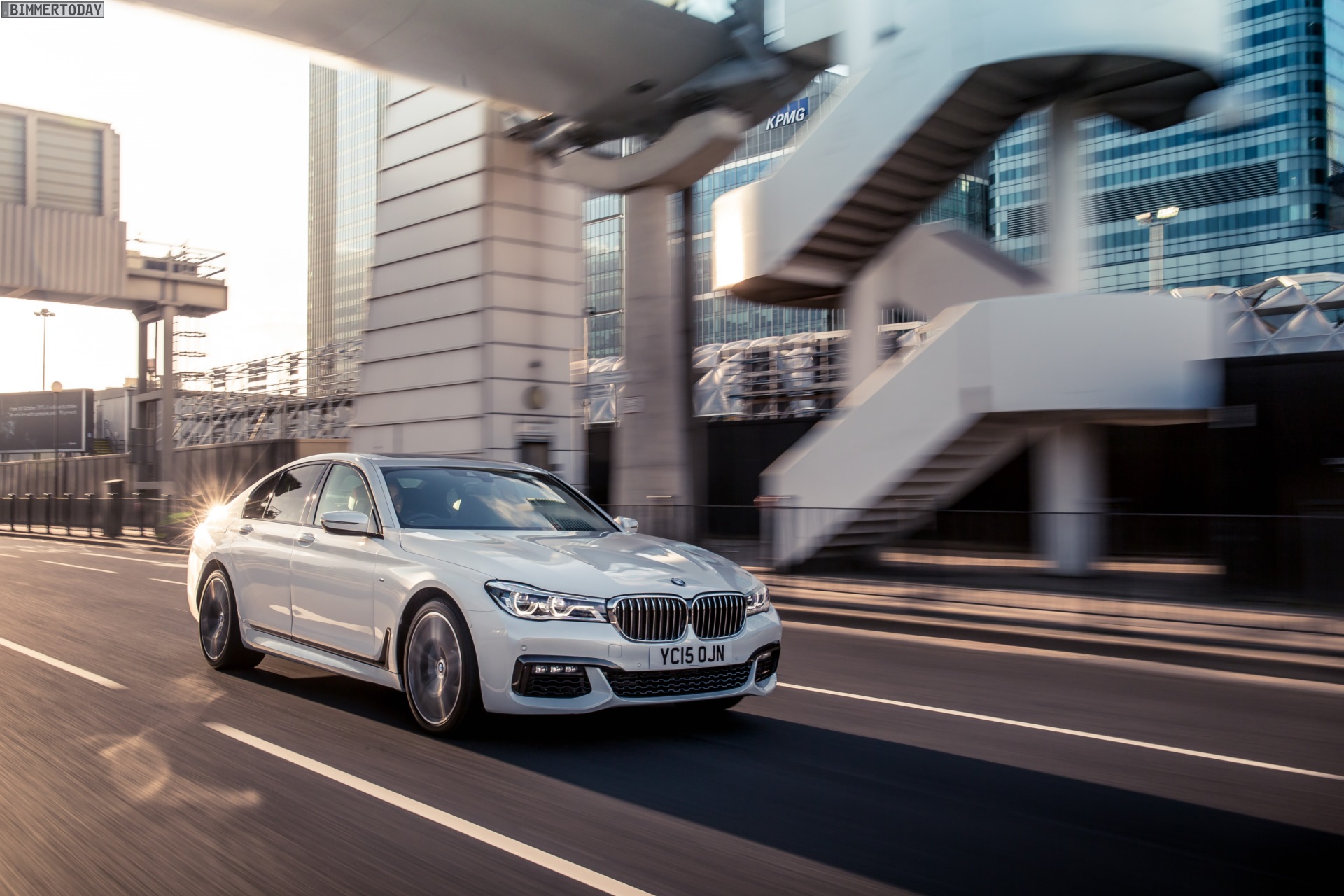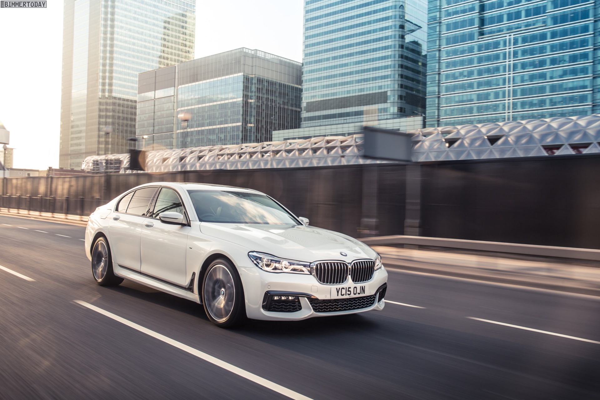 Wenige Tage vor dem offiziellen Marktstart des neuen BMW 7er 2015 am 24. Oktober liefert uns BMW England zahlreiche neue Fotos von der Luxuslimousine, die uns nun in und um London präsentiert wird. Auf allen Fotos sehen wir den ‘kurzen’ BMW 7er G11 mit M Sportpaket und einer Lackierung in klassischem Alpinweiß, die mit dem M Paket verbundene Shadow Line sorgt für einige dunkle Akzente und trägt so gemeinsam mit den selbstbewusst gezeichneten Schürzen an Front und Heck zum betont-dynamischen Erscheinungsbild der neuen 7er-Reihe bei.
