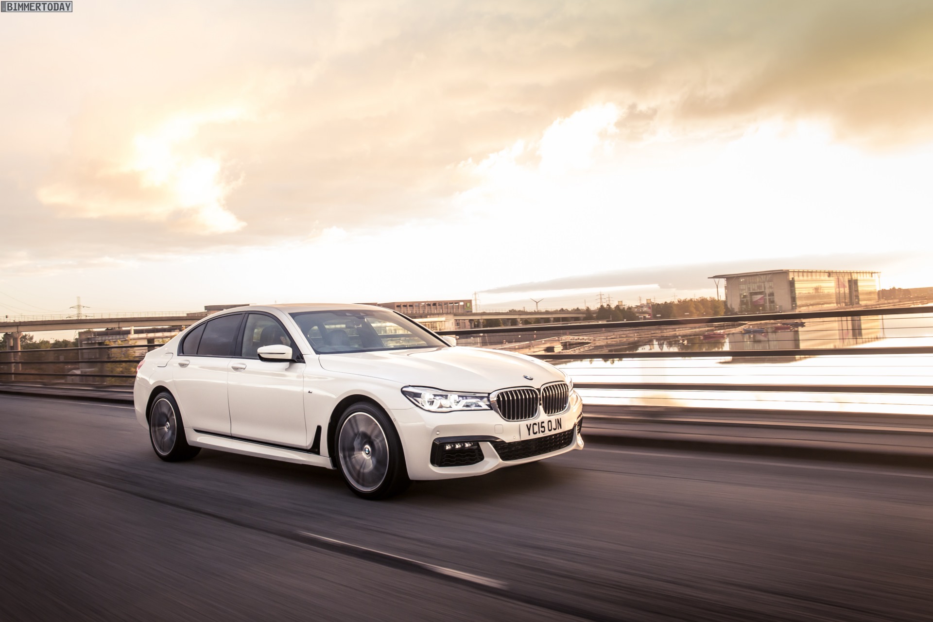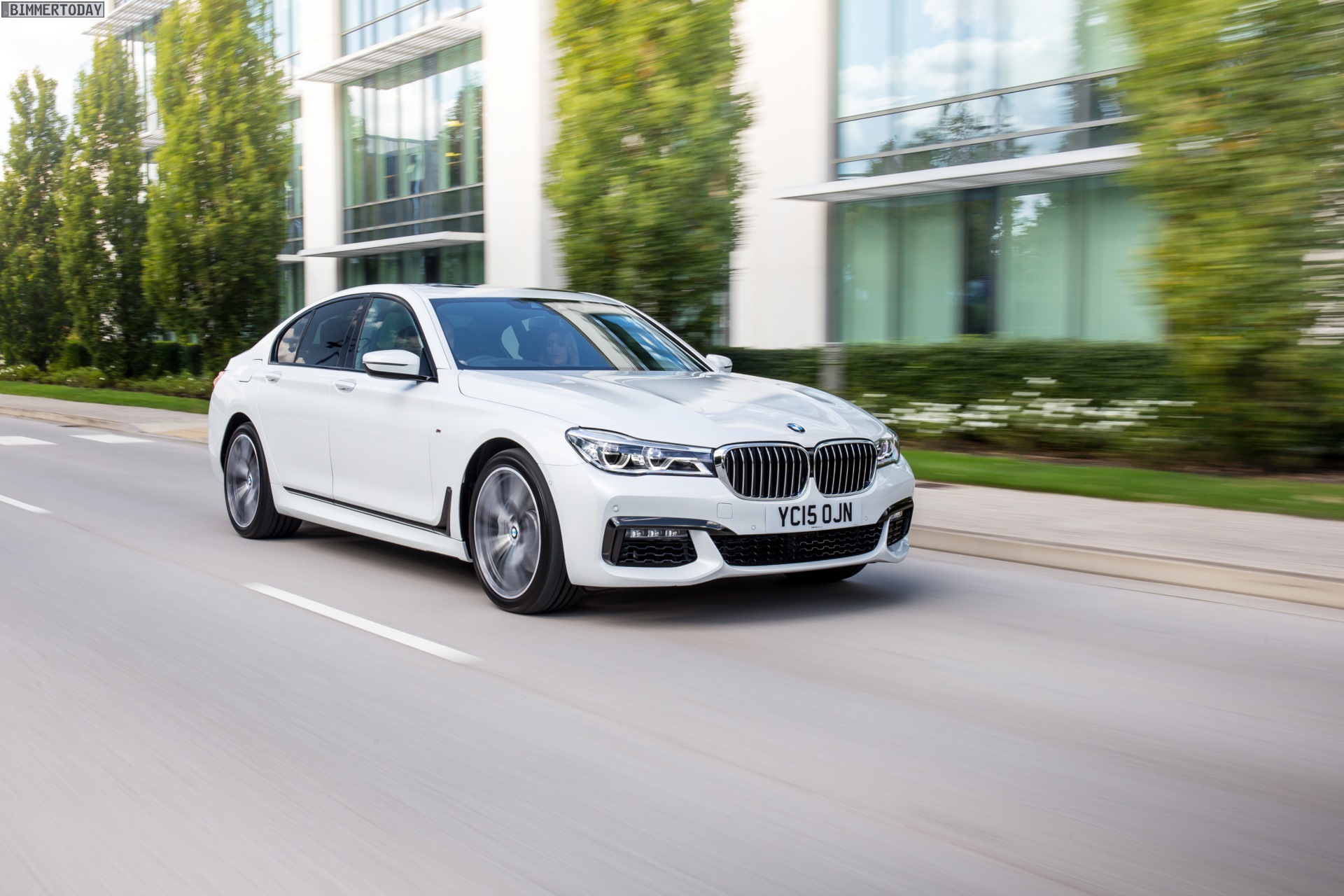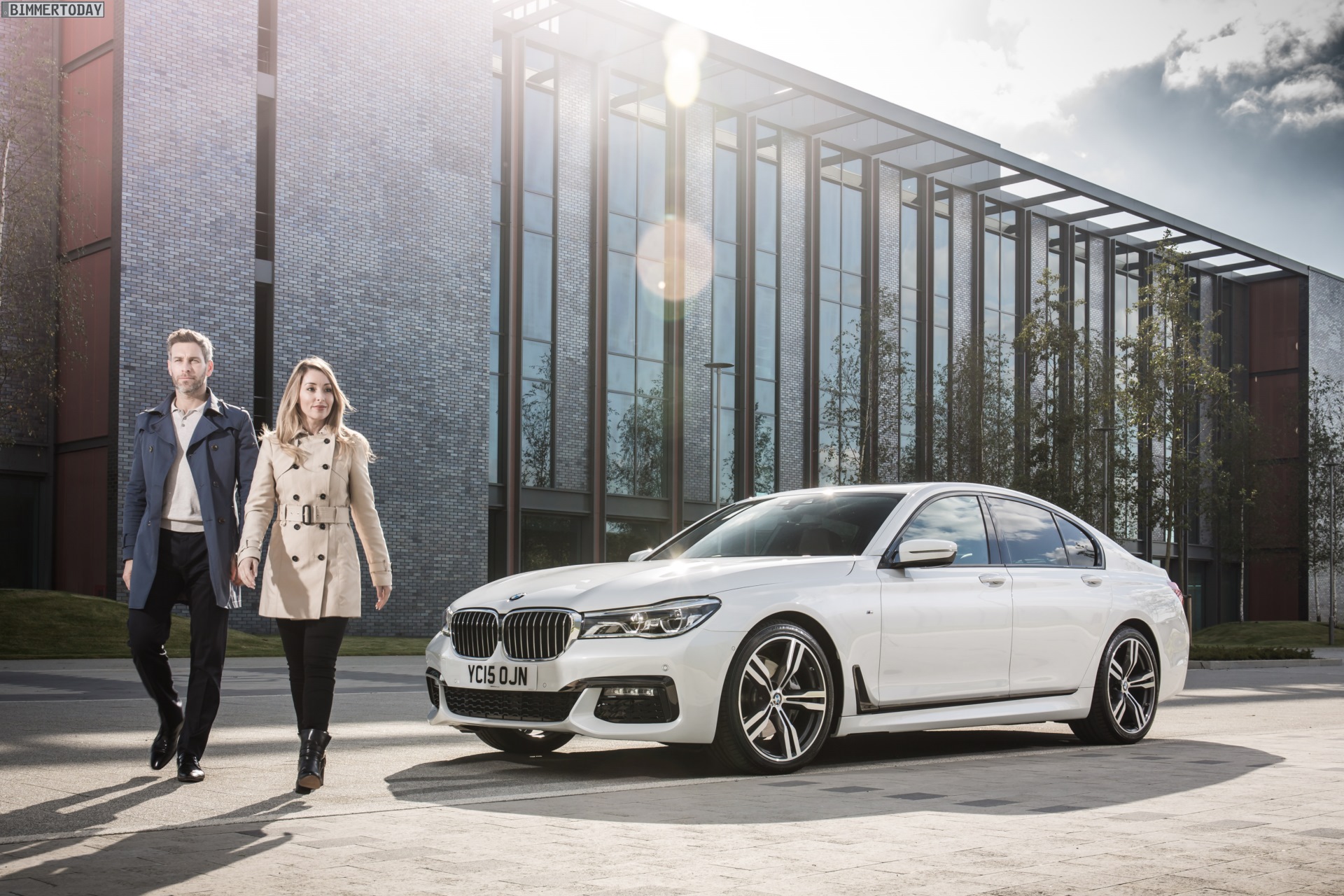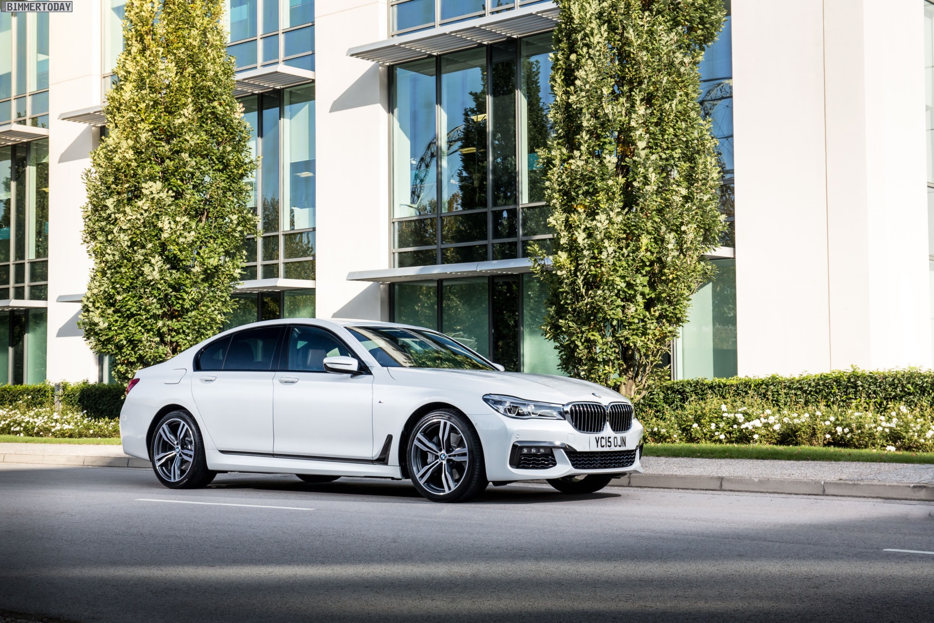 Wenige Tage vor dem offiziellen Marktstart des neuen BMW 7er 2015 am 24. Oktober liefert uns BMW England zahlreiche neue Fotos von der Luxuslimousine, die uns nun in und um London präsentiert wird. Auf allen Fotos sehen wir den ‘kurzen’ BMW 7er G11 mit M Sportpaket und einer Lackierung in klassischem Alpinweiß, die mit dem M Paket verbundene Shadow Line sorgt für einige dunkle Akzente und trägt so gemeinsam mit den selbstbewusst gezeichneten Schürzen an Front und Heck zum betont-dynamischen Erscheinungsbild der neuen 7er-Reihe bei.