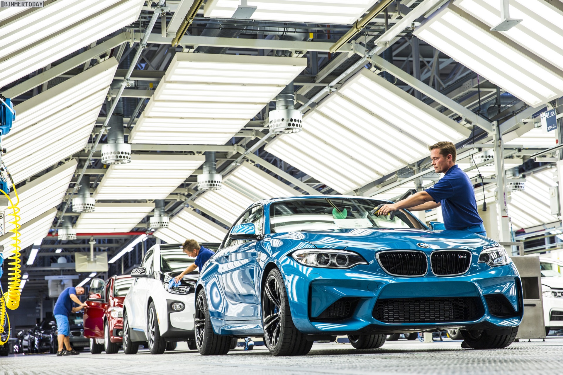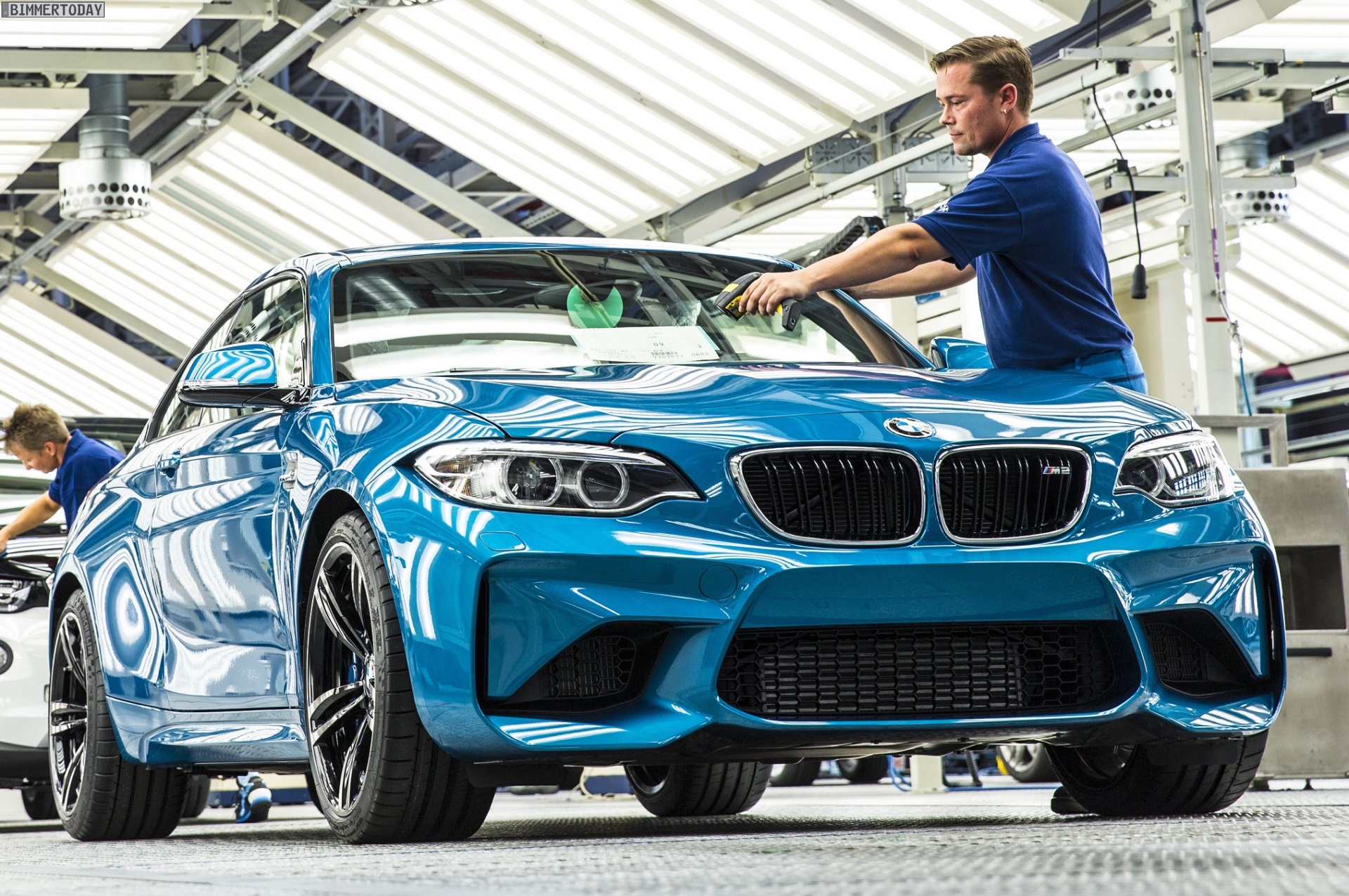Wenige Tage nach der offiziellen Vorstellung des BMW M2 F87 hat die Produktion des Sportcoupés im BMW Werk Leipzig begonnen. Das erste Exemplar ist selbstverständlich in der exklusiven Launch-Farbe Long Beach Blue lackiert, außerdem ist die schärfste Variante der 2er-Reihe auch in den Farben Alpinweiß, Saphirschwarz und Mineralgrau erhältlich.