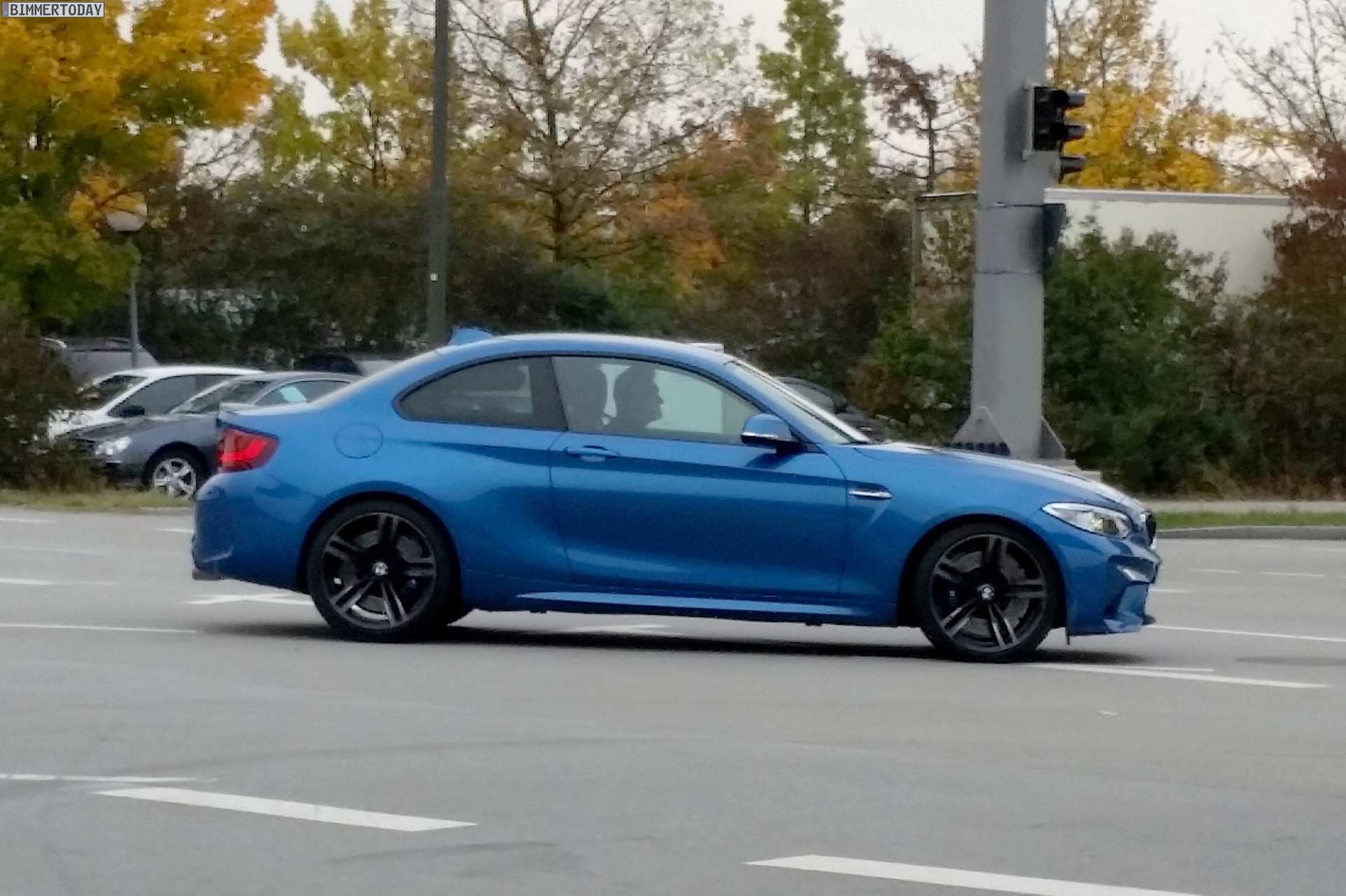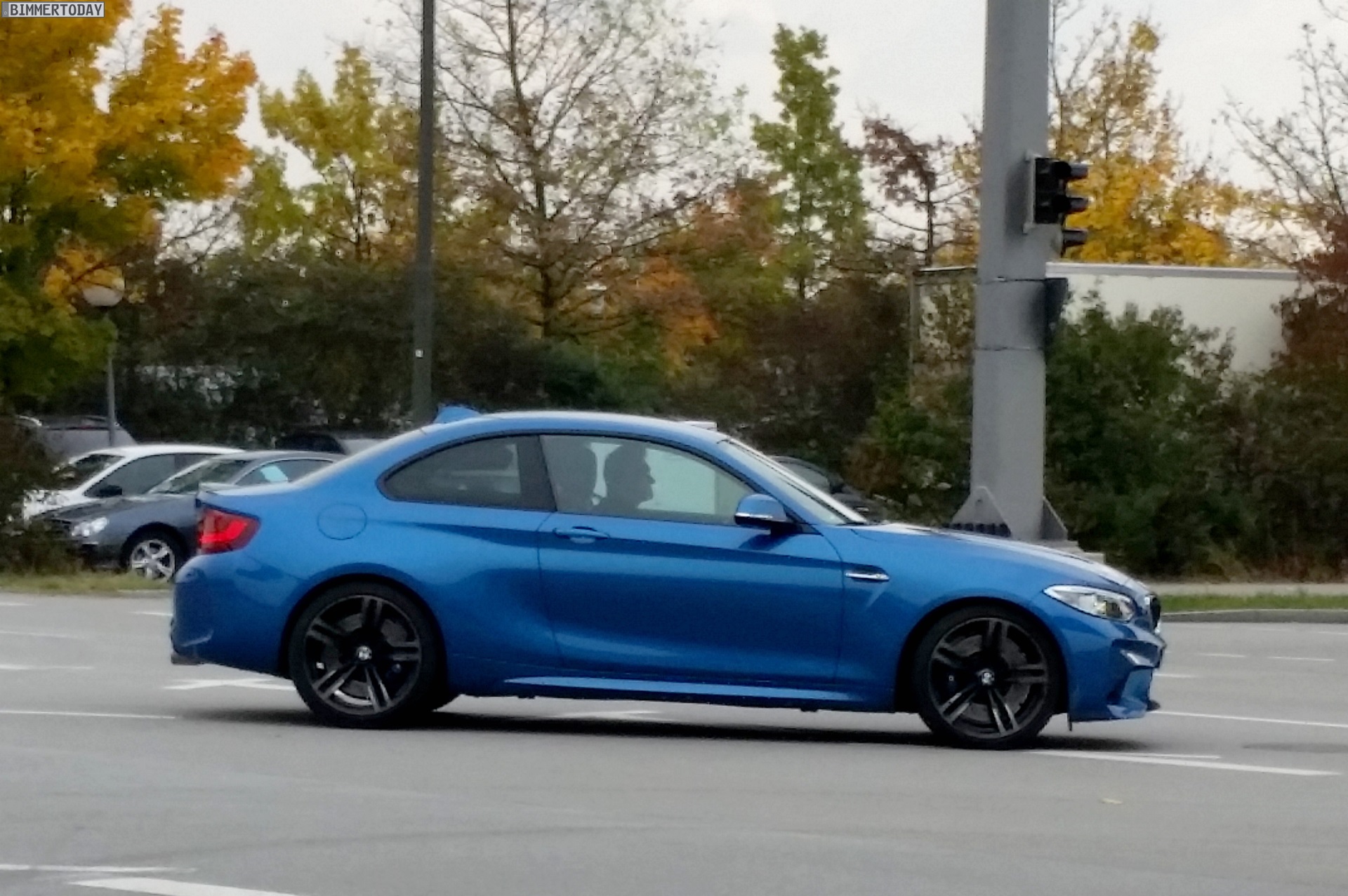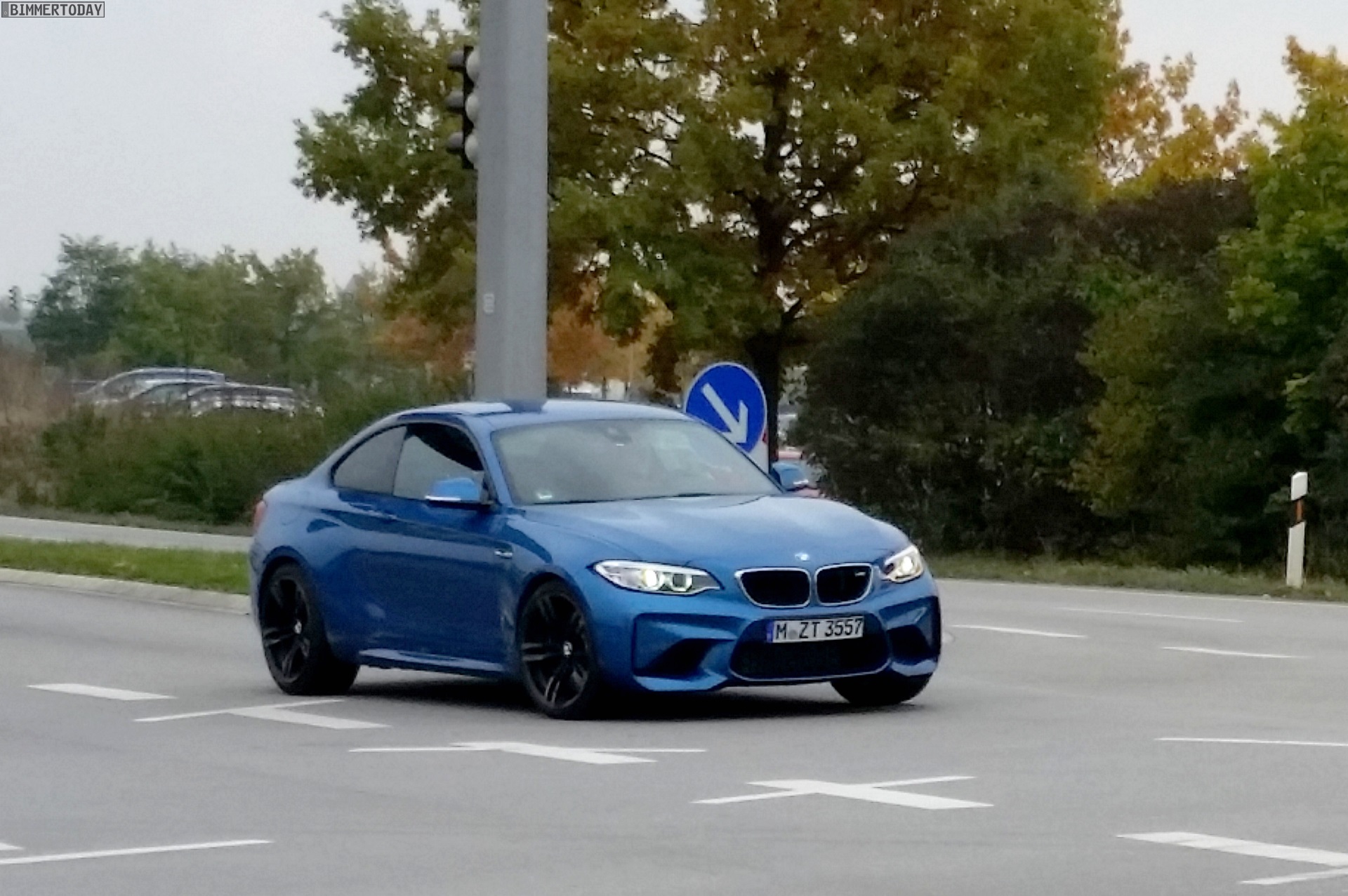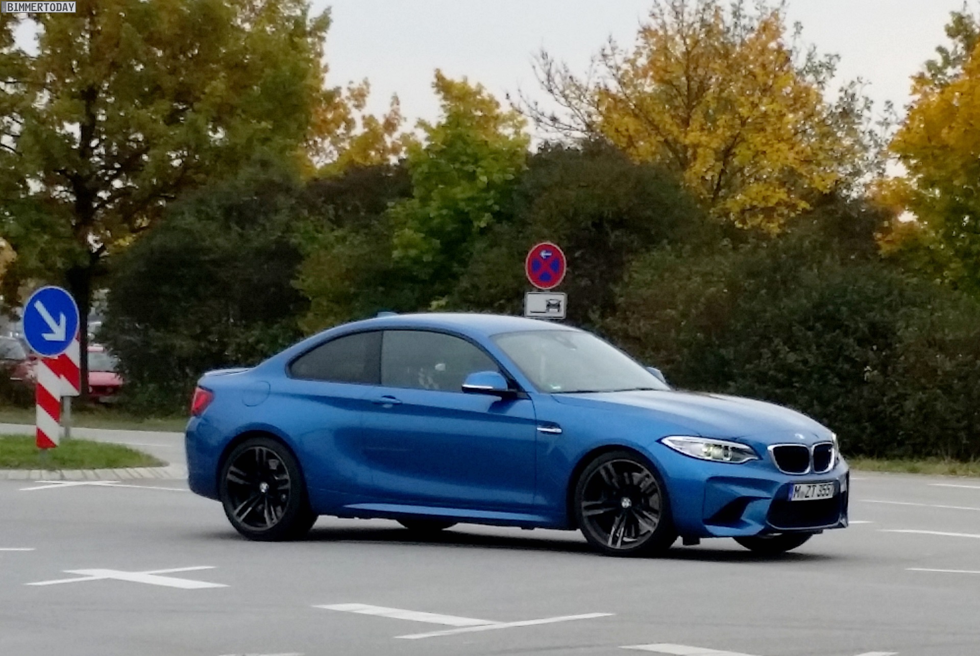 Nachdem wir gestern erste Fotos vom BMW M2 in Schwarz zeigen konnten, erreichen uns nun weitere Live-Fotos eines völlig ungetarnten F87 in der Launch-Farbe Long Beach Blue. Unser Leser Todor hat das Sportcoupé in Garching erwischt, in unmittelbarer Nähe zum Stammsitz der BMW M GmbH darf der 1er M Nachfolger bereits ein knappes halbes Jahr vor seinem Marktstart in zumindest äußerlich serienmäßiger Form glänzen.