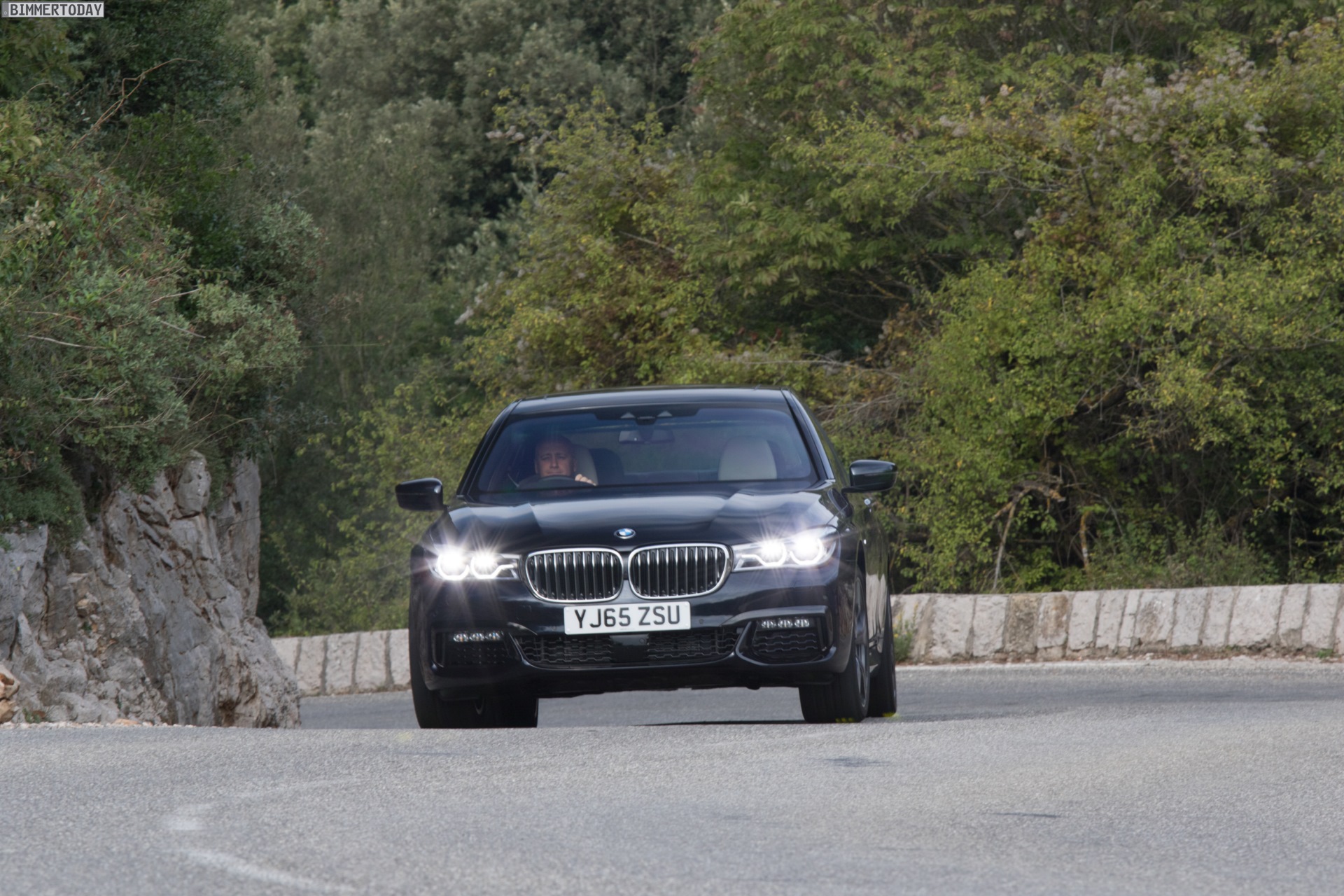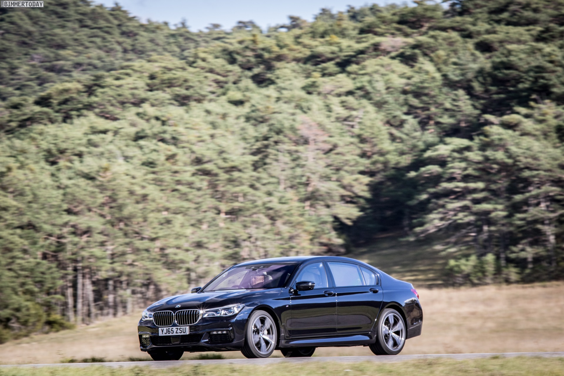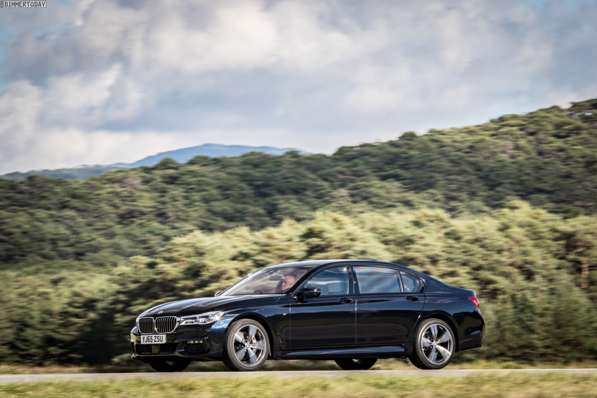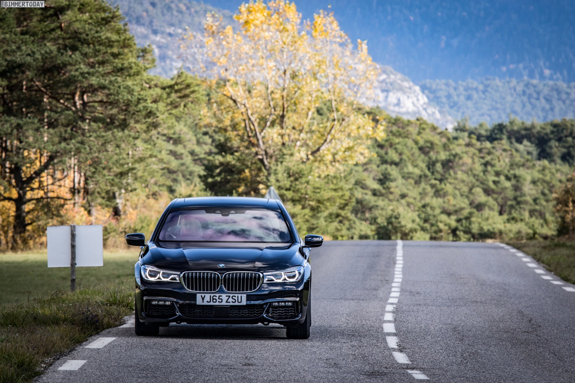 Aus England erreichen uns einige weitere Fotos vom neuen BMW 7er 2015 mit M Sport-Paket. Erstmals sehen wir die Luxuslimousine im eleganten Carbon-Schwarz Metallic, das wie bei einigen anderen Baureihen nur in Kombination mit dem M Paket erhältlich ist. Dank der BMW Individual Hochglanz Shadow Line sind auch einige Elemente wie die vom Luftauslass der Air Breather ausgehende seitliche Zierleiste in Schwarz ausgeführt, die bei anders konfigurierten 7ern mit einer Chrom-Oberfläche glänzen und dadurch eher luxuriöse Akzente setzen.