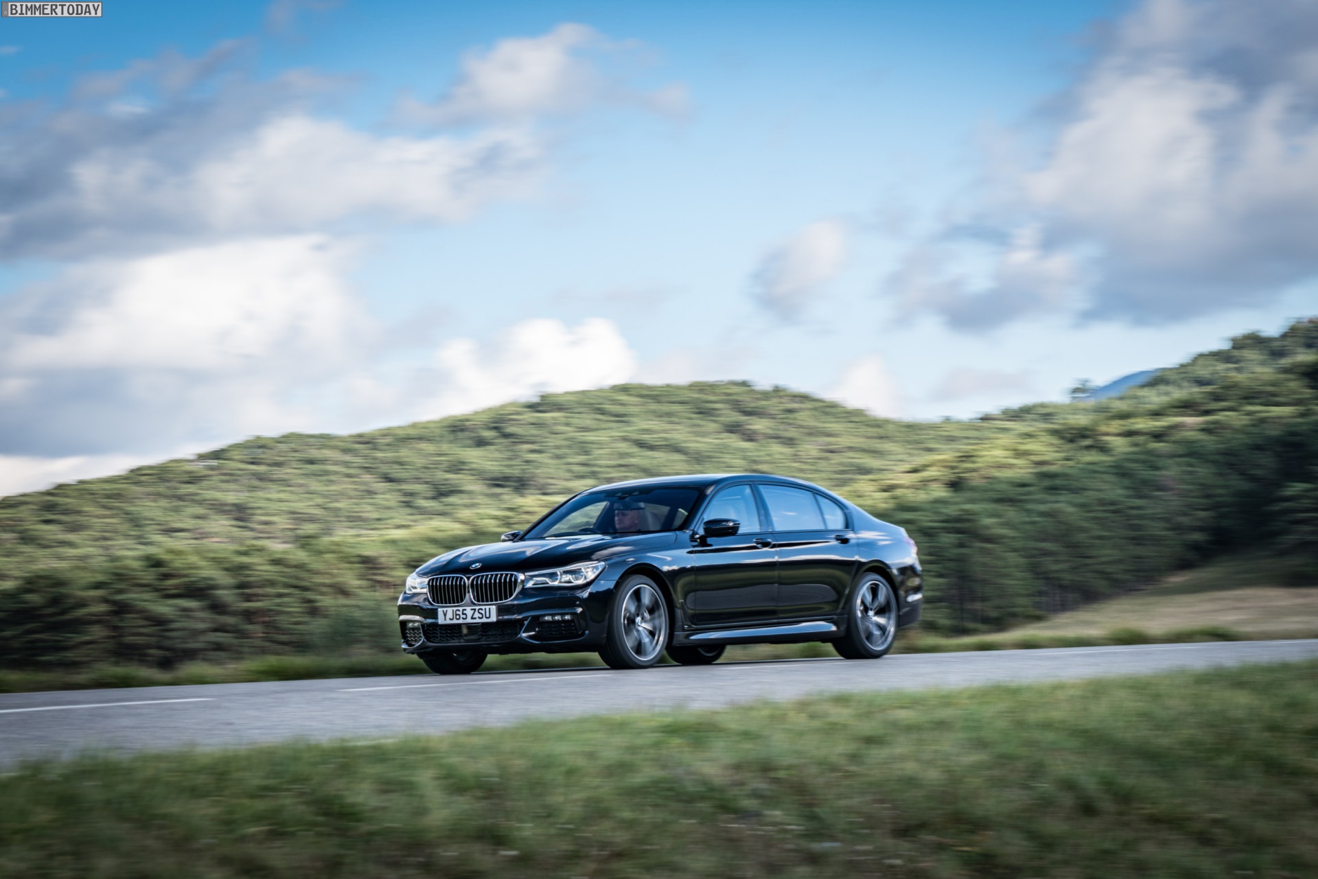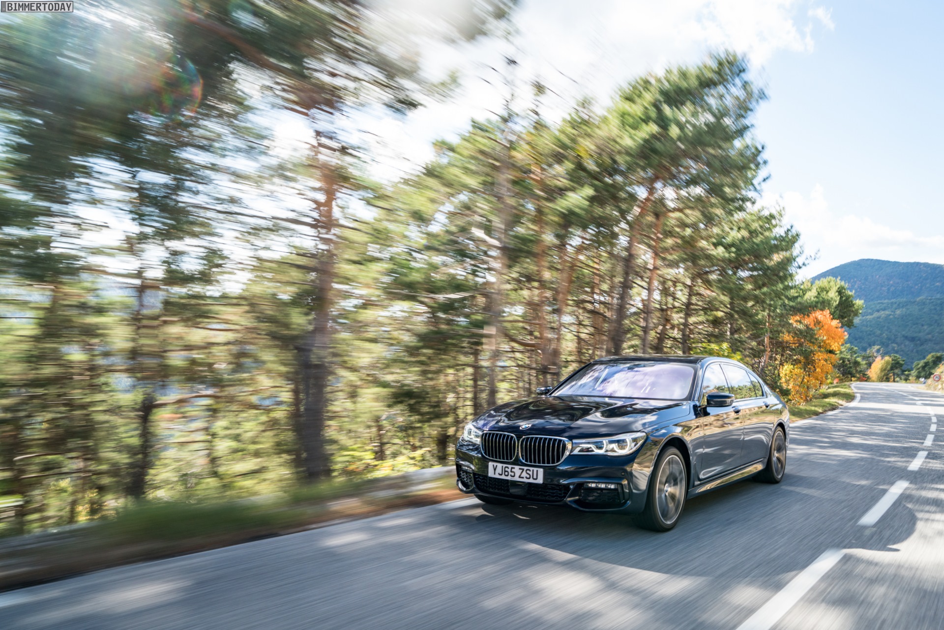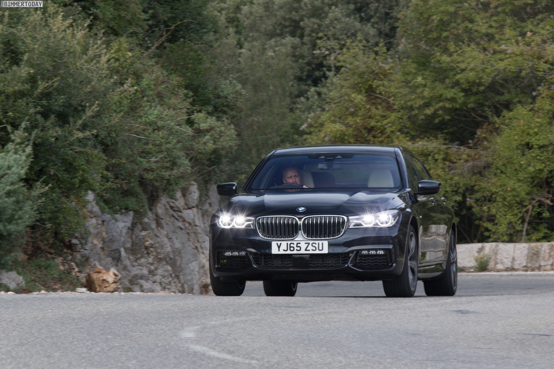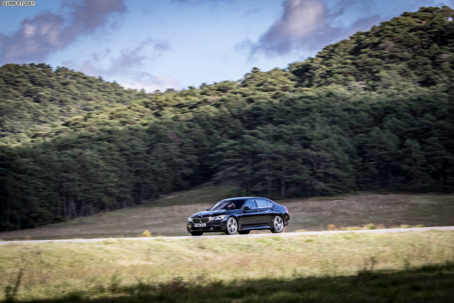 Aus England erreichen uns einige weitere Fotos vom neuen BMW 7er 2015 mit M Sport-Paket. Erstmals sehen wir die Luxuslimousine im eleganten Carbon-Schwarz Metallic, das wie bei einigen anderen Baureihen nur in Kombination mit dem M Paket erhältlich ist. Dank der BMW Individual Hochglanz Shadow Line sind auch einige Elemente wie die vom Luftauslass der Air Breather ausgehende seitliche Zierleiste in Schwarz ausgeführt, die bei anders konfigurierten 7ern mit einer Chrom-Oberfläche glänzen und dadurch eher luxuriöse Akzente setzen.