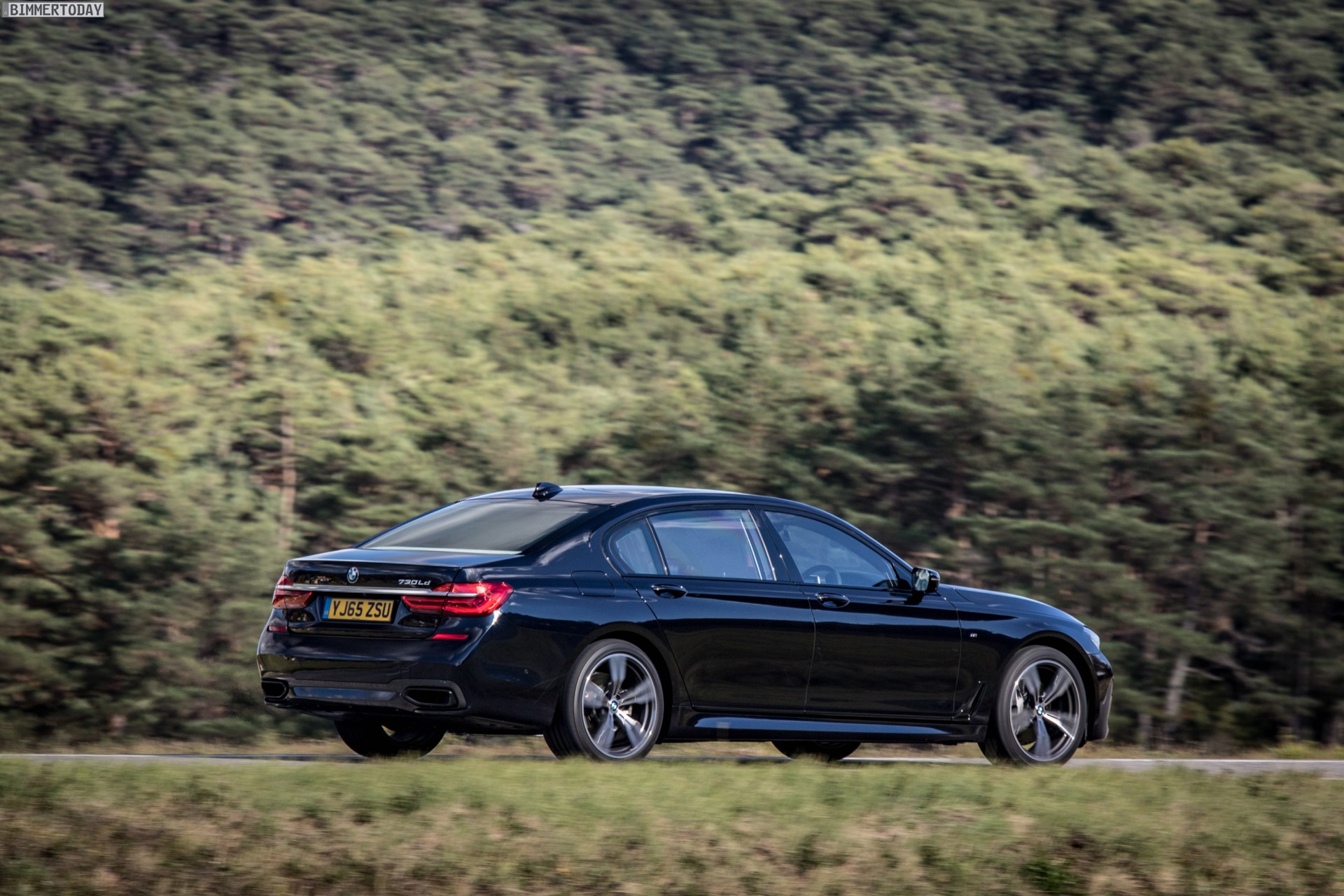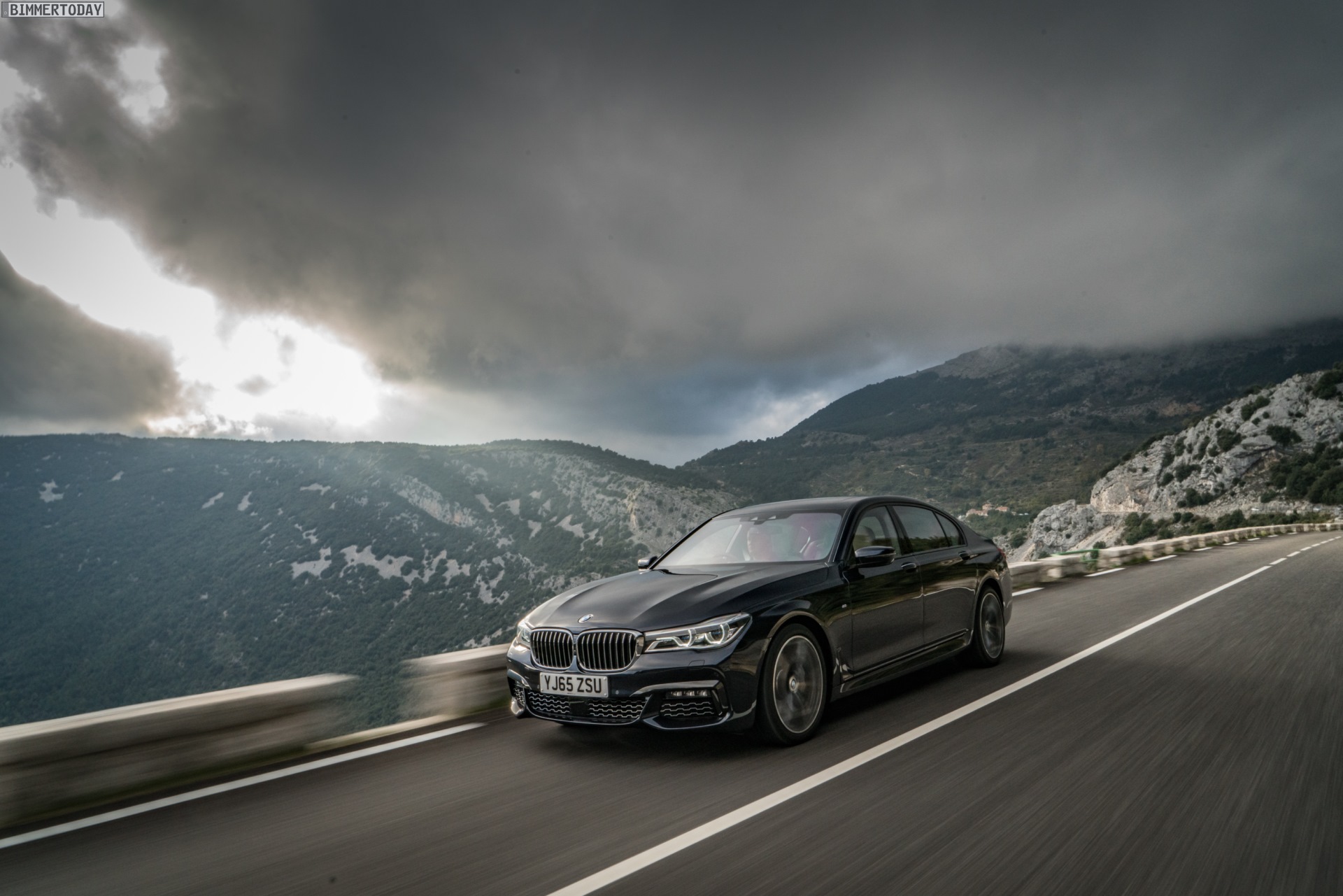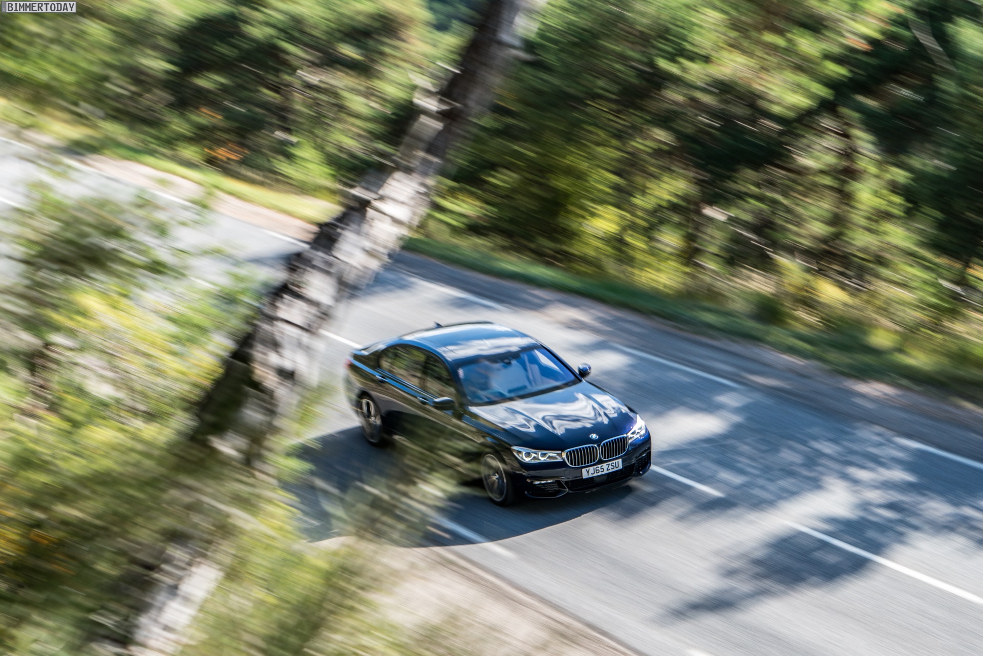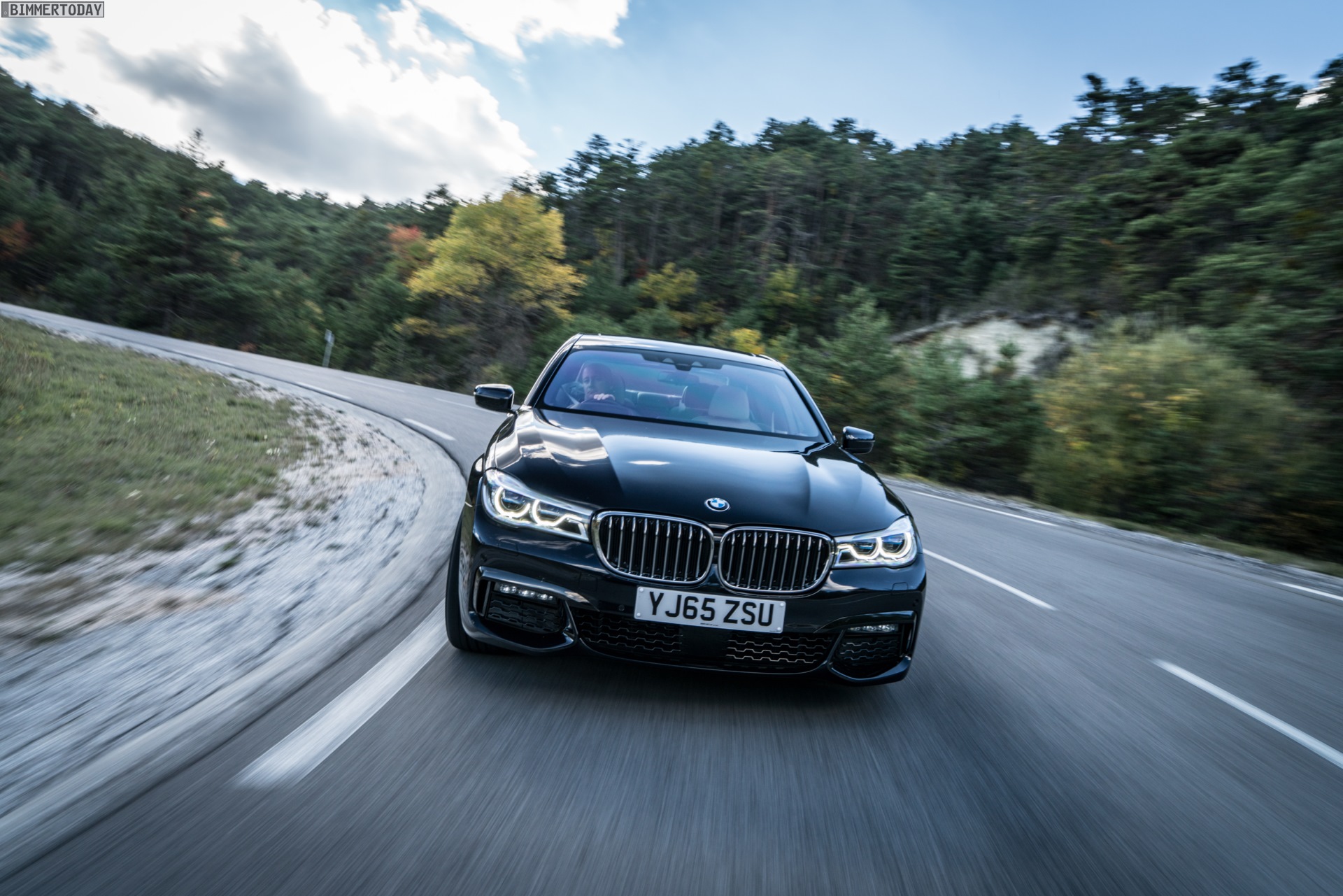 Aus England erreichen uns einige weitere Fotos vom neuen BMW 7er 2015 mit M Sport-Paket. Erstmals sehen wir die Luxuslimousine im eleganten Carbon-Schwarz Metallic, das wie bei einigen anderen Baureihen nur in Kombination mit dem M Paket erhältlich ist. Dank der BMW Individual Hochglanz Shadow Line sind auch einige Elemente wie die vom Luftauslass der Air Breather ausgehende seitliche Zierleiste in Schwarz ausgeführt, die bei anders konfigurierten 7ern mit einer Chrom-Oberfläche glänzen und dadurch eher luxuriöse Akzente setzen.