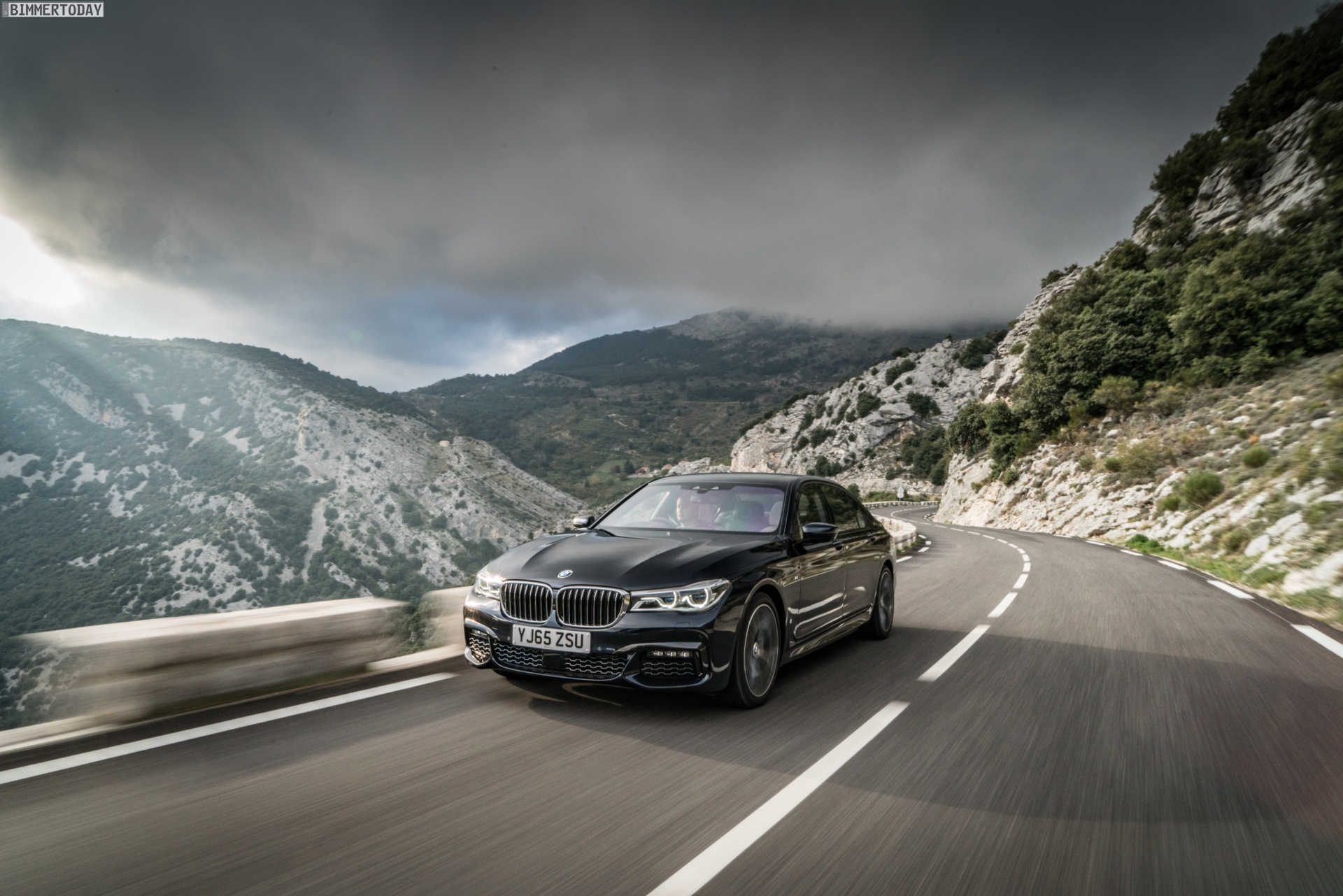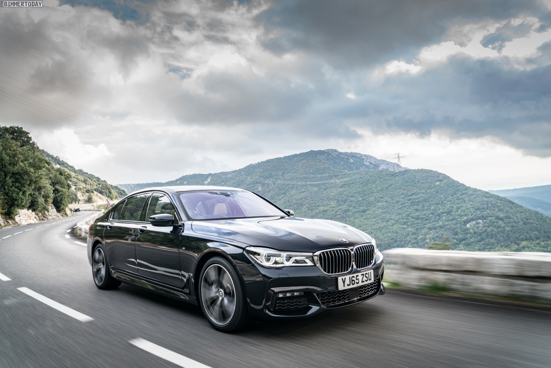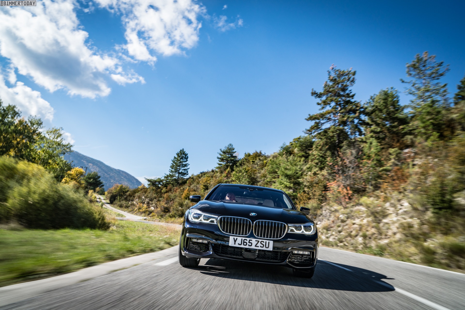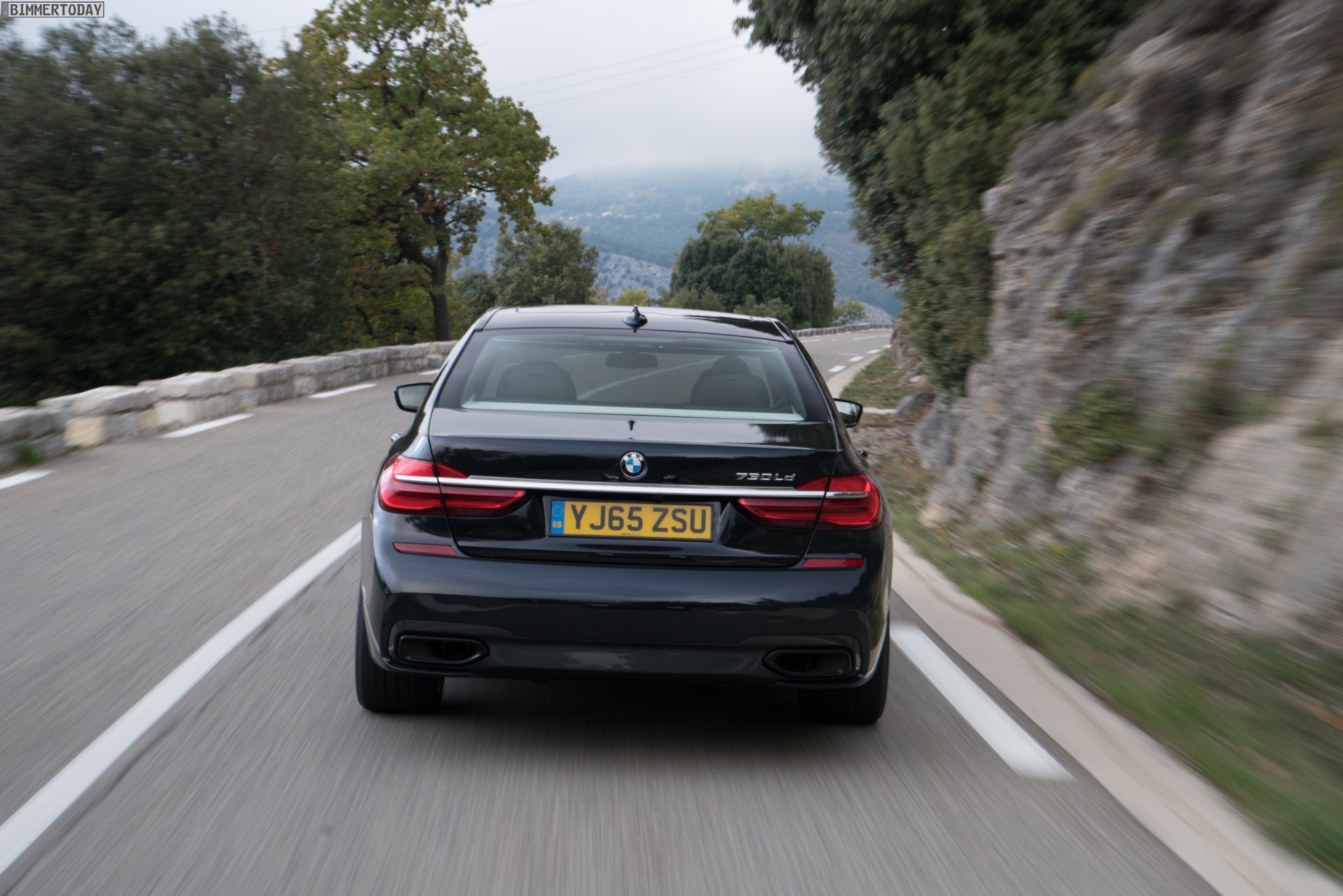 Aus England erreichen uns einige weitere Fotos vom neuen BMW 7er 2015 mit M Sport-Paket. Erstmals sehen wir die Luxuslimousine im eleganten Carbon-Schwarz Metallic, das wie bei einigen anderen Baureihen nur in Kombination mit dem M Paket erhältlich ist. Dank der BMW Individual Hochglanz Shadow Line sind auch einige Elemente wie die vom Luftauslass der Air Breather ausgehende seitliche Zierleiste in Schwarz ausgeführt, die bei anders konfigurierten 7ern mit einer Chrom-Oberfläche glänzen und dadurch eher luxuriöse Akzente setzen.
