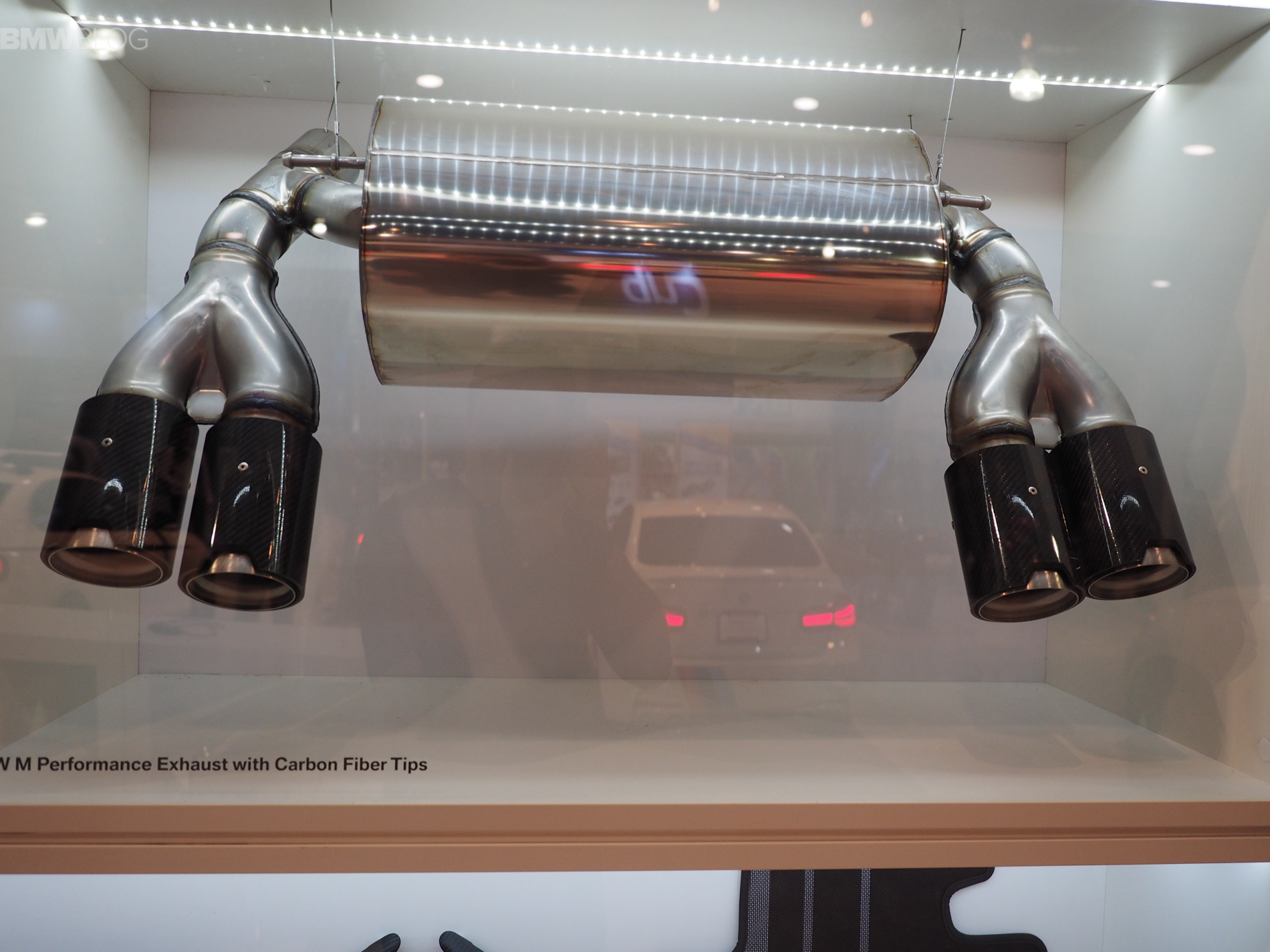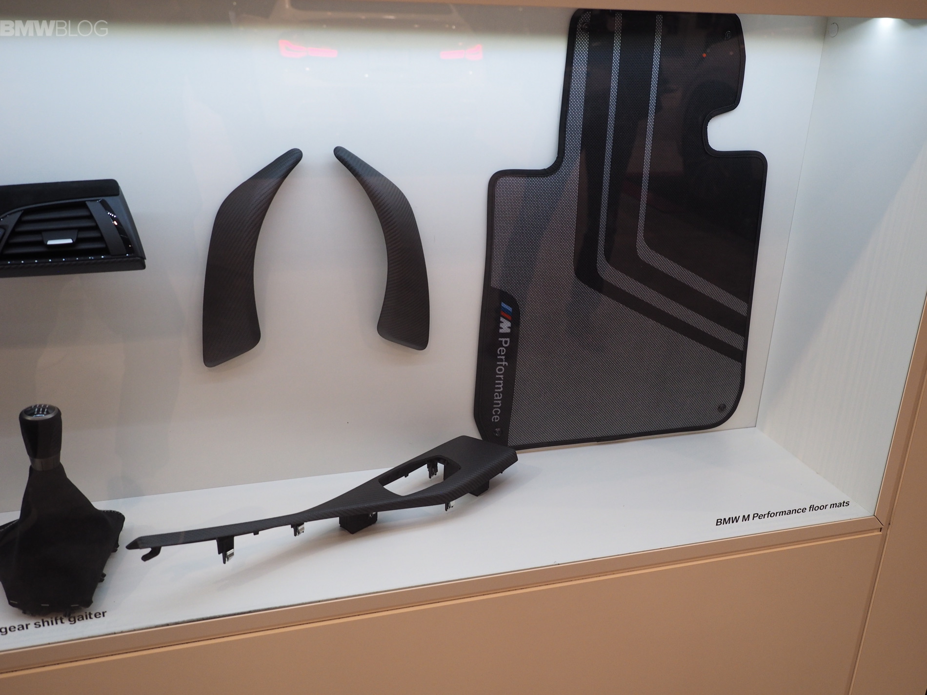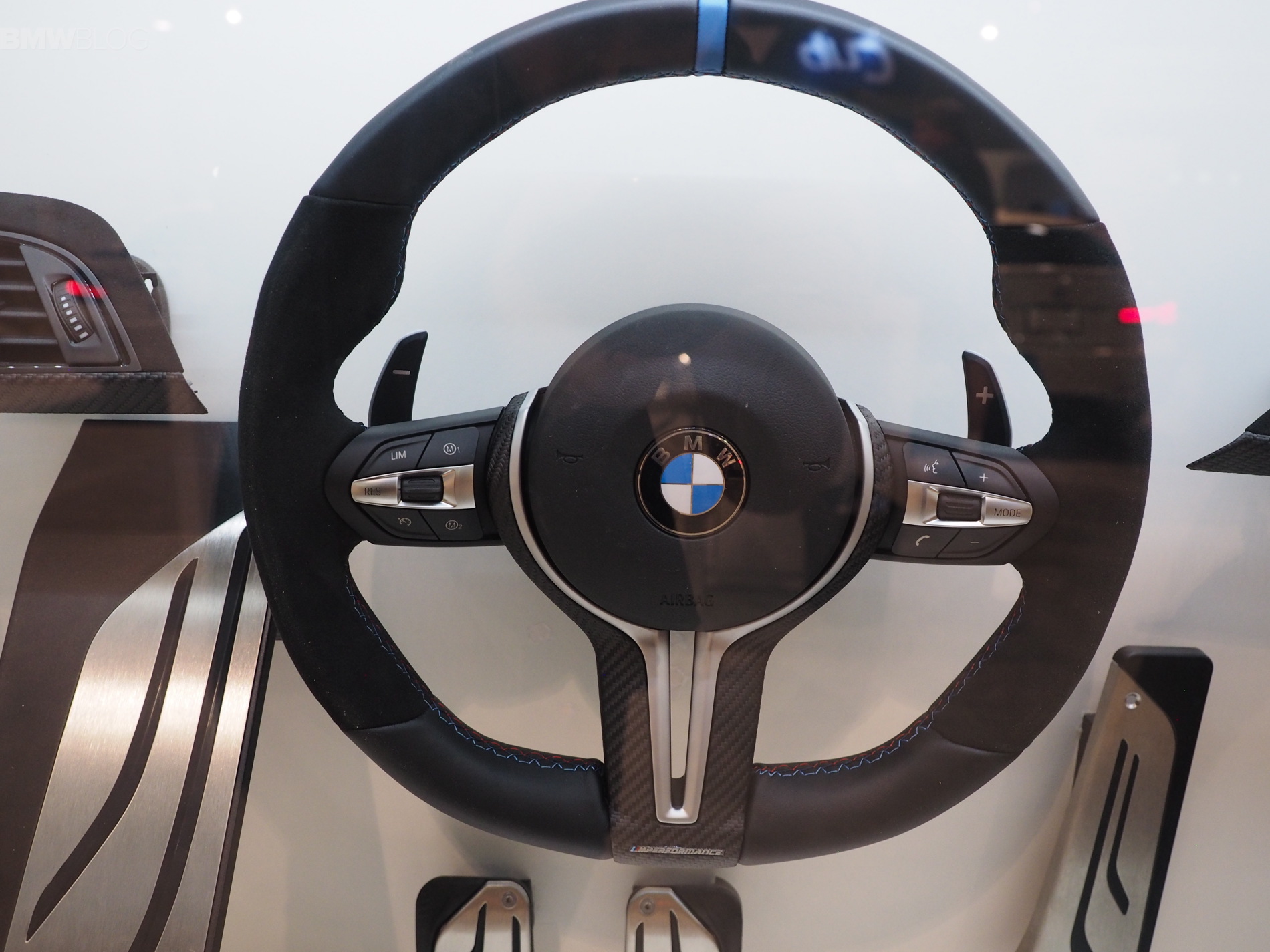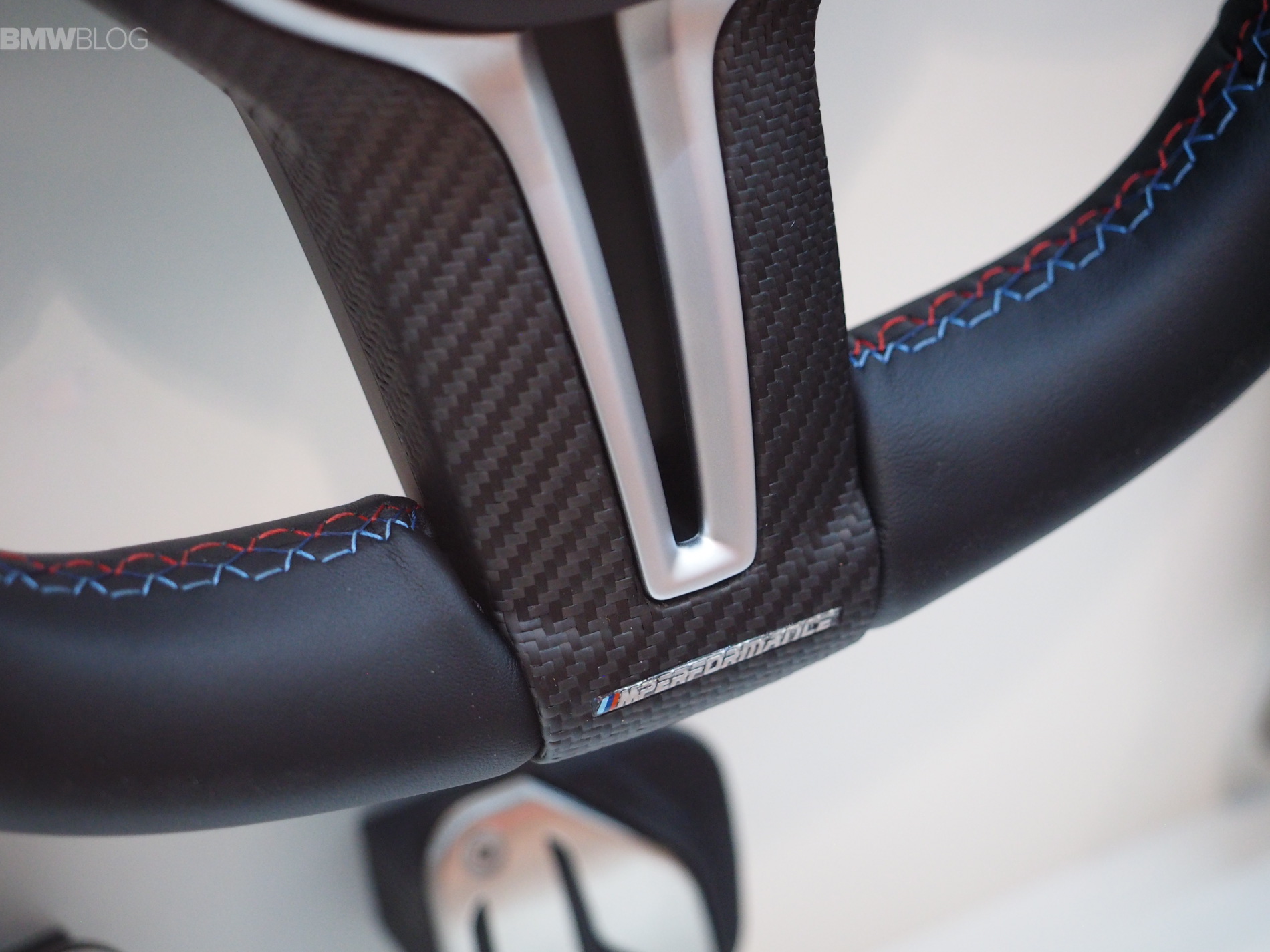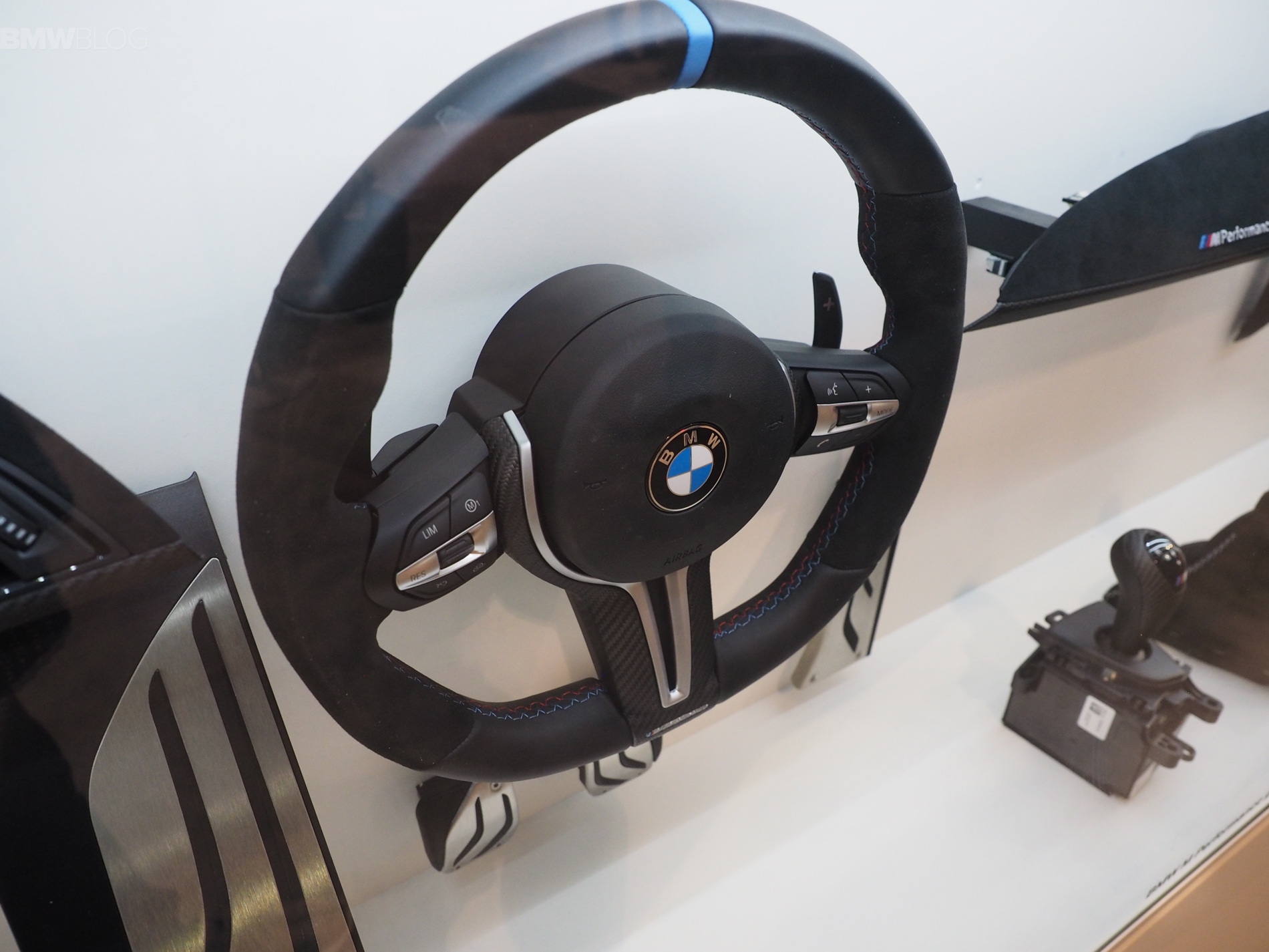 Ebenfalls bereits angekündigt sind eine Sport-Abgasanlage mit Klappensteuerung, ein M Performance-Fahrwerk und einige Teile für den Innenraum, die mit Carbon und Alcantara für einen noch sportlicheren Gesamteindruck sorgen sollen. Fotos von der Messe zeigen unter anderem das Sportlenkrad mit 12-Uhr-Markierung und den alternativen Gangwahlhebel für das manuelle Sechsgang-Getriebe und das optionale 7-Gang-DKG.