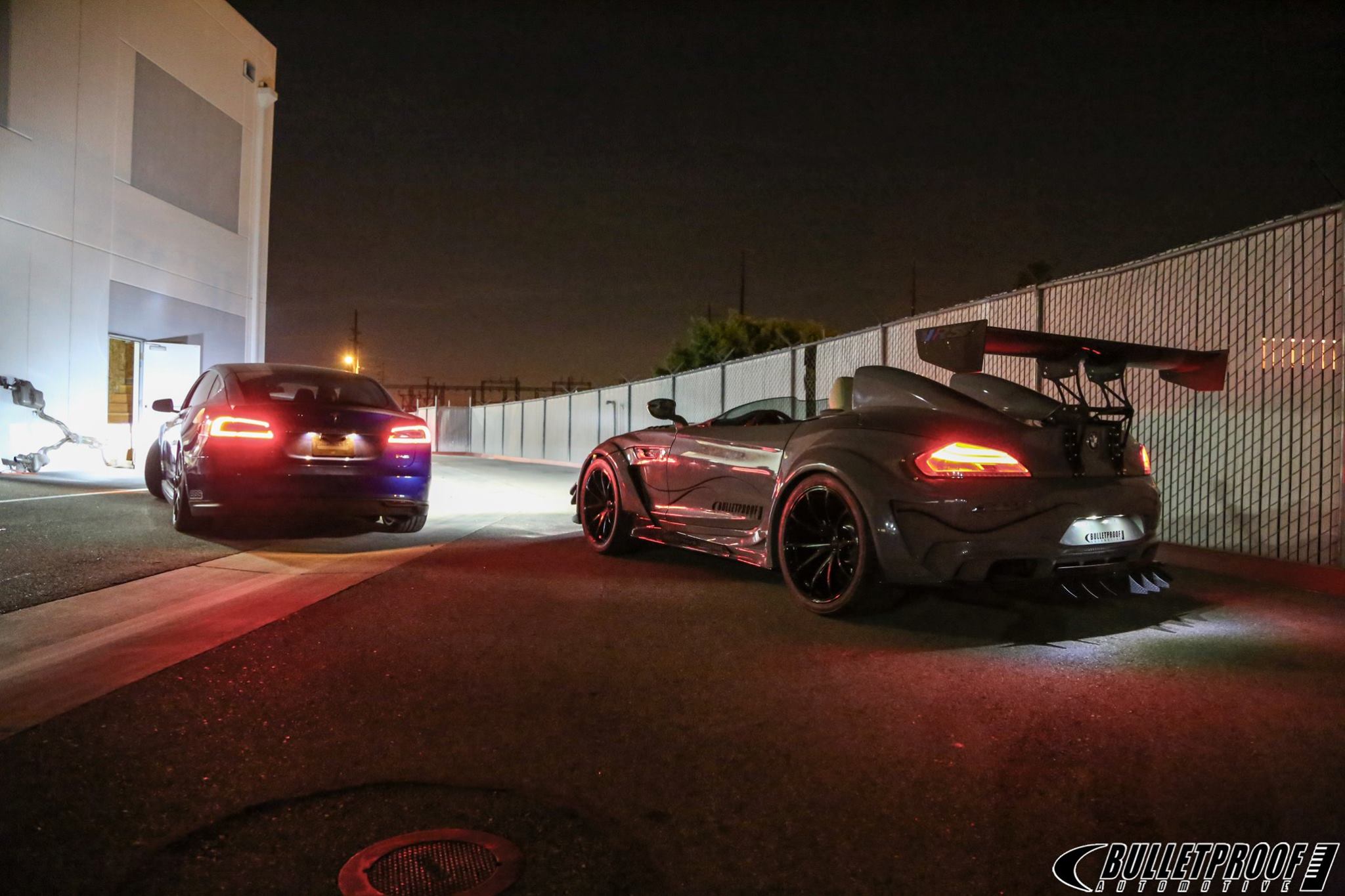 Wie bei früheren Rennwagen ragen hinter den Köpfen der beiden Insassen große Hutzen aus der Karosserie, dahinter verbaut Bulletproof zudem einen riesigen Heckflügel und krönt die Heckschürze mit einem Diffusor, der auch an einem BMW Z4 GT3 nicht auffallen würde. Massiv verbreiterte Radhäuser, eine neue Frontschürze mit großem Carbon-Splitter und die winzige Frontscheibe runden den radikalen Umbau ab.