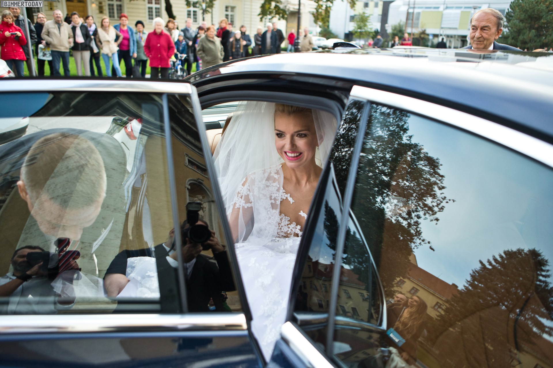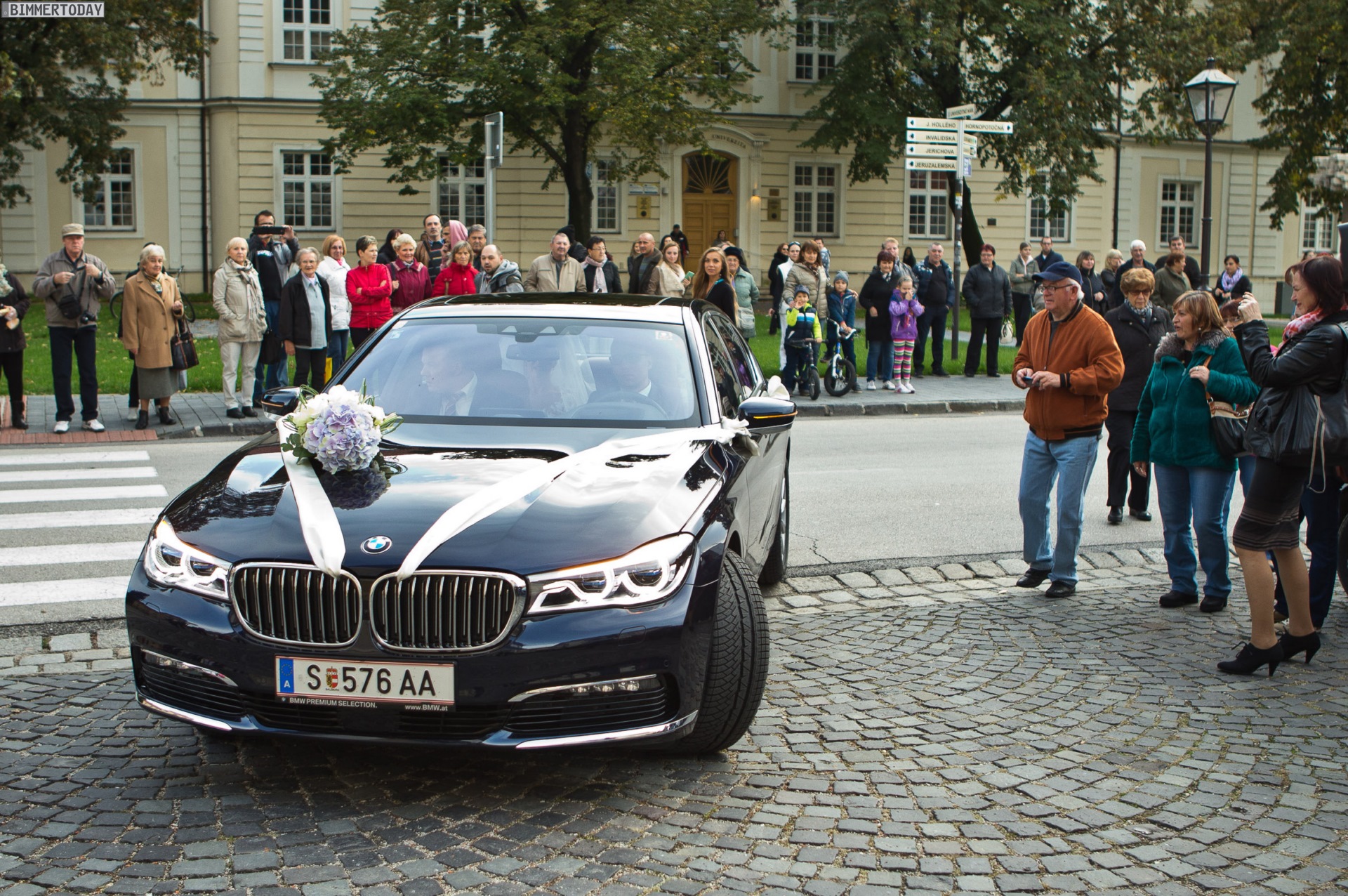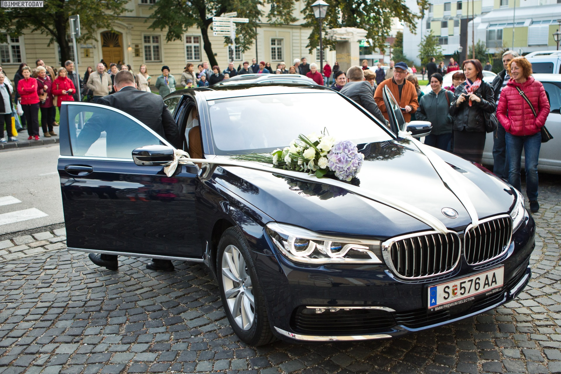 Aus Slowenien erreichen uns einige schöne Bilder von der Premiere des BMW 7er 2015, der nicht nur bei einer exklusiven Veranstaltung im Showroom gezeigt wurde, sondern auch gleich seinen weltweit ersten Einsatz als Hochzeits-Limousine hinter sich gebracht hat. Unzweifelhaft ist davon auszugehen, dass auch die sechste Generation der eleganten Luxuslimousine aus München regelmäßig für Hochzeiten genutzt und dabei Braut und Bräutigam stilvoll chauffieren wird.