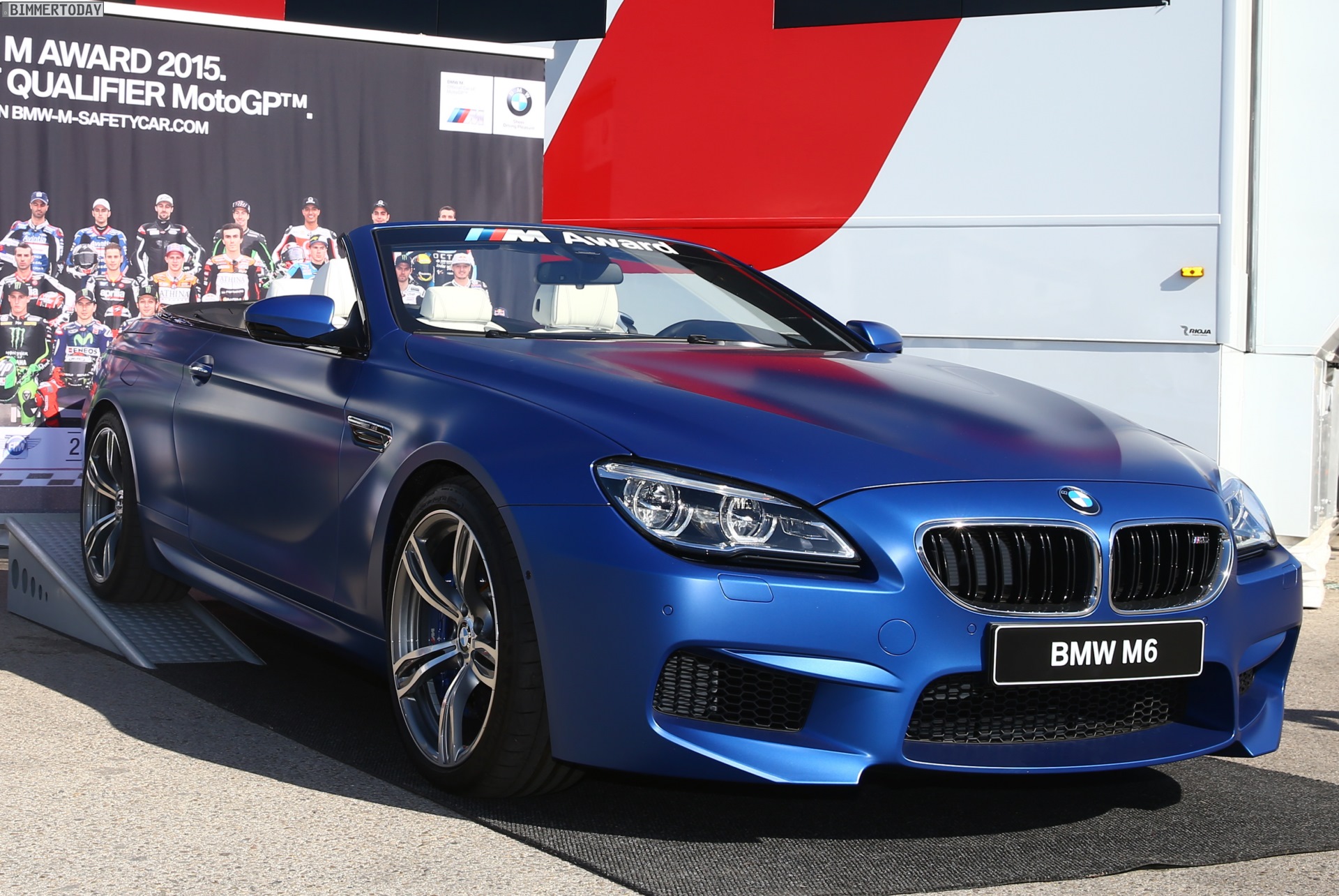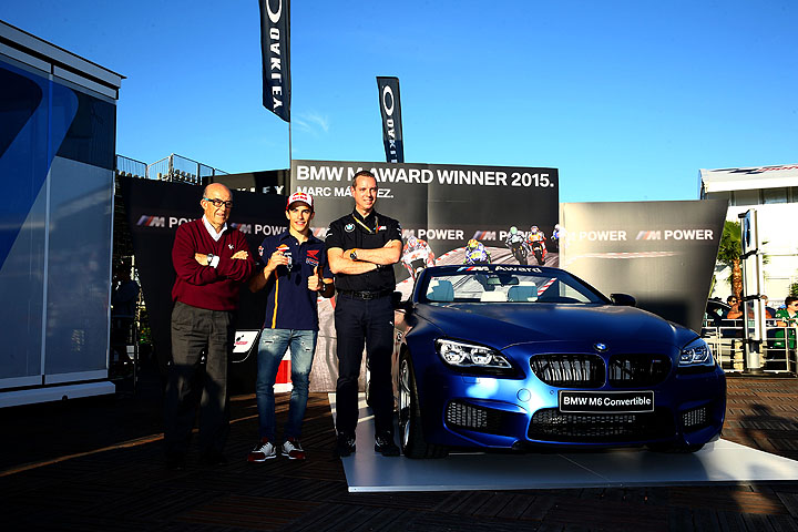 Das als BMW M Award 2015 ausgelobte BMW M6 Cabrio ist in Frozen Blue Metallic lackiert, trägt 20 Zoll-Felgen und glänzt im Innenraum mit der hochwertigen Vollleder-Ausstattung Merino Feinnarbe Opalweiß sowie der Edelholz-Ausführung Esche Maser Weiß. 2013 durfte sich Marc Marquez bereits über ein BMW M6 Coupé in Frozen Black freuen, 2014 wurde er mit einem BMW M4 in Frozen Red für seine starke Qualifying-Performance belohnt.