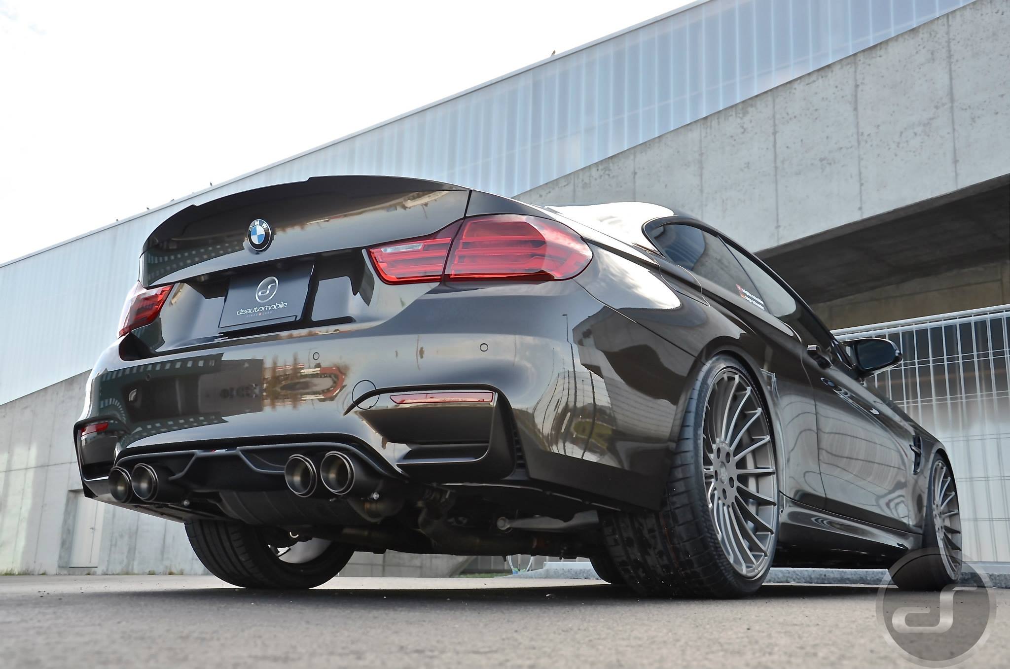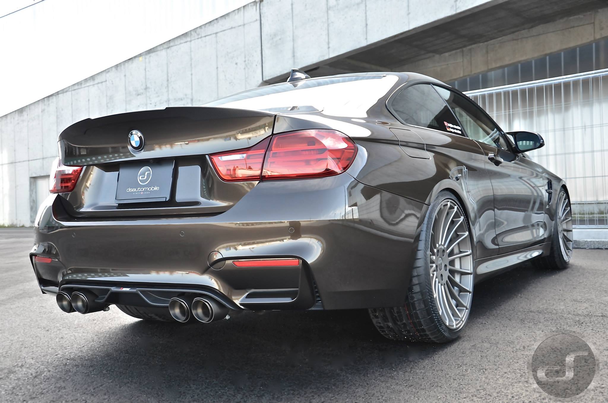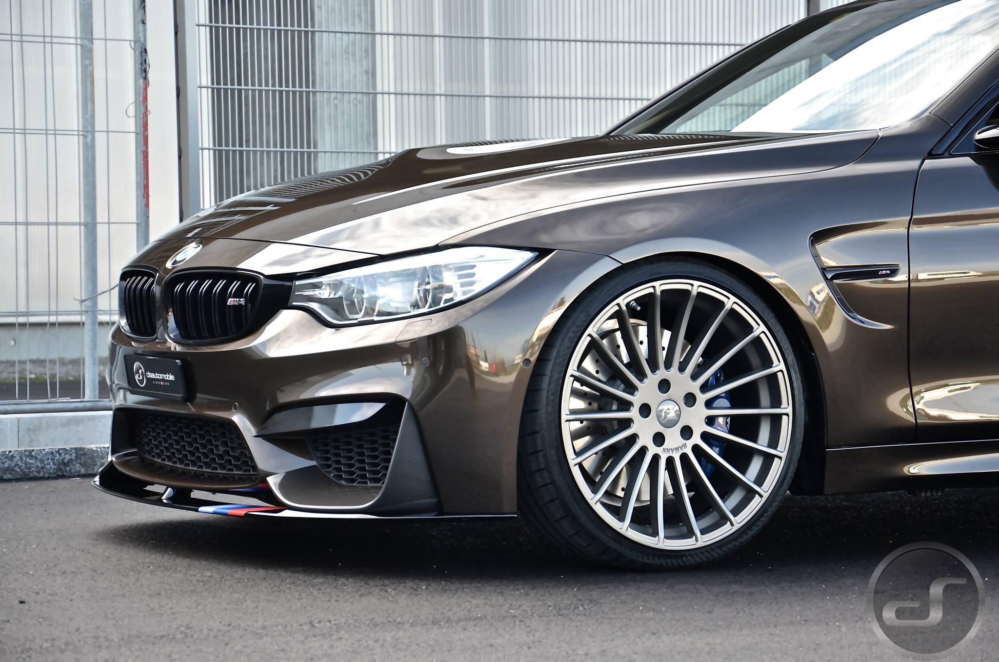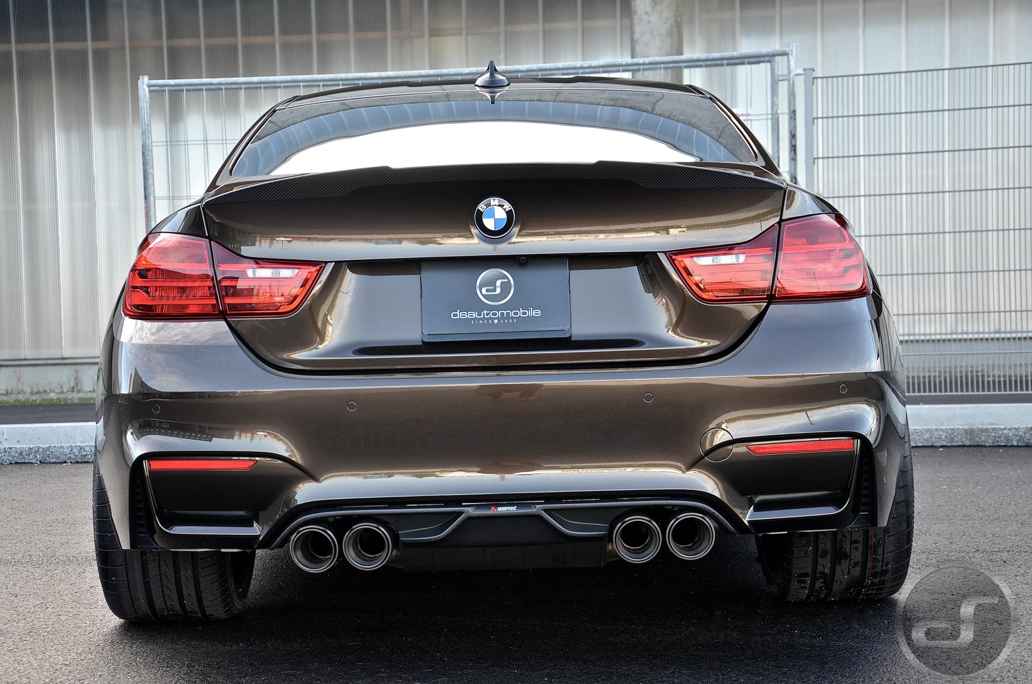 Einige neue Fotos von DS Automobile & Autowerke zeigen ein Exemplar des BMW M4, das neben der Individual-Lackierung auch die schwarzen Nieren, den Frontsplitter-Aufsatz und die Heckspoiler-Lippe von BMW M Performance sowie Felgen aus dem Tuning-Programm von Hamann Motorsport trägt. Auffällige Akzente setzen die auf dem Frontsplitter platzierten Farben der BMW M GmbH und die Abgasanlage samt passendem Diffusor von Akrapovic.