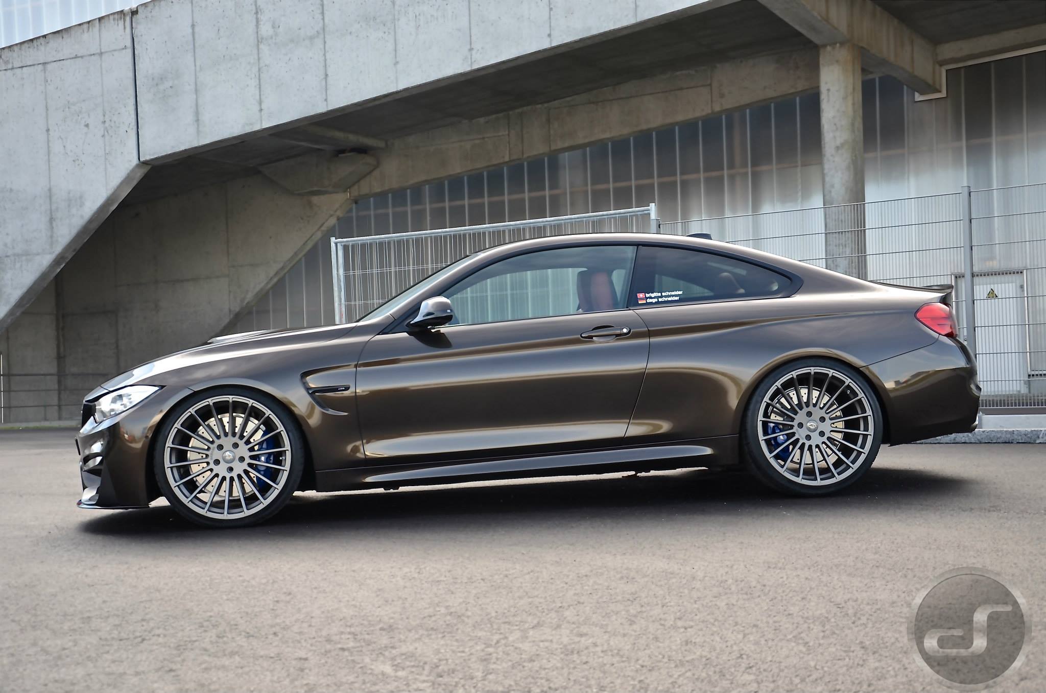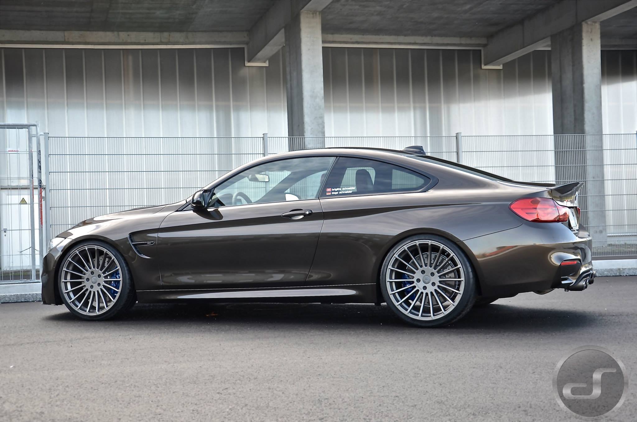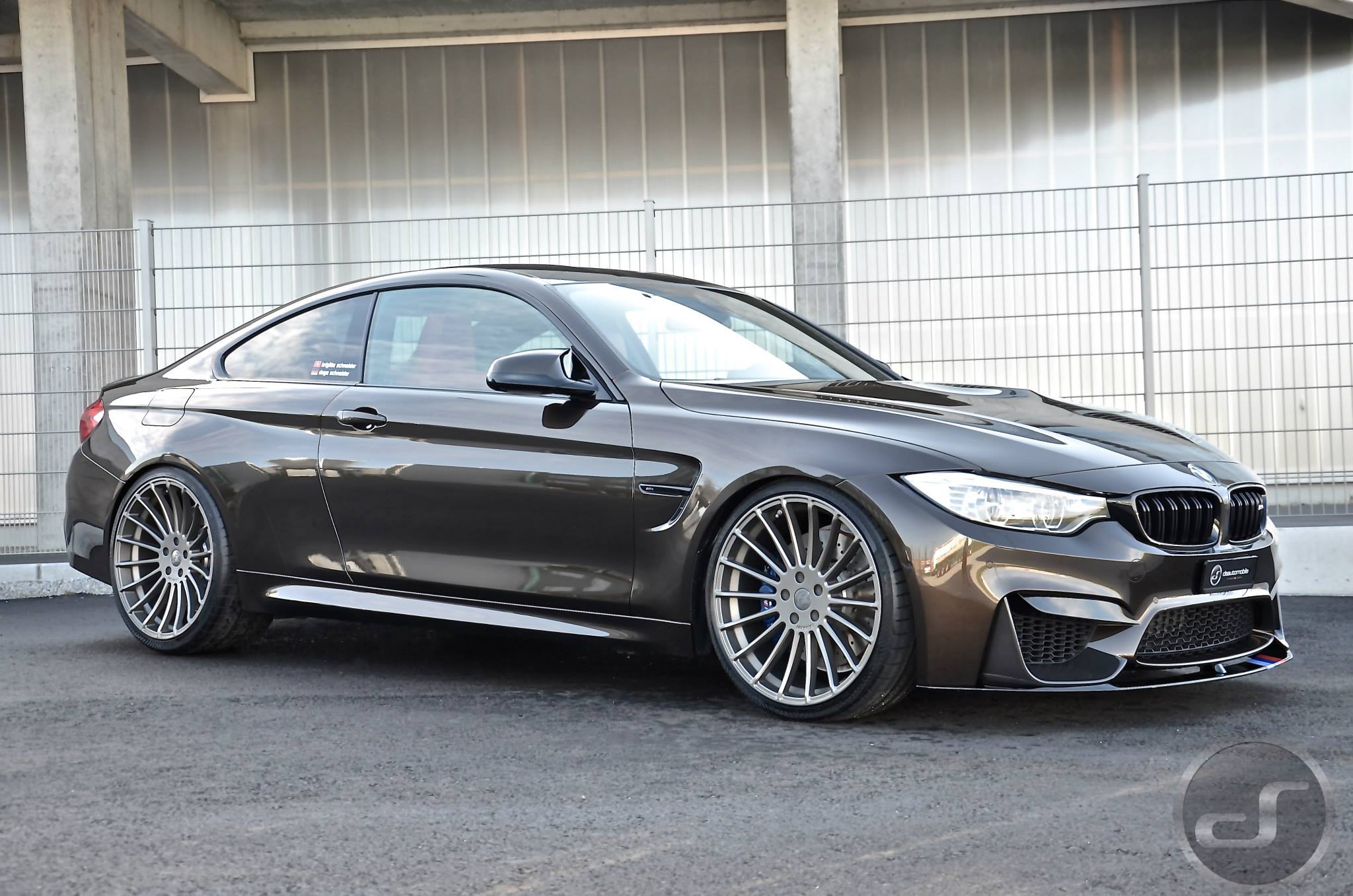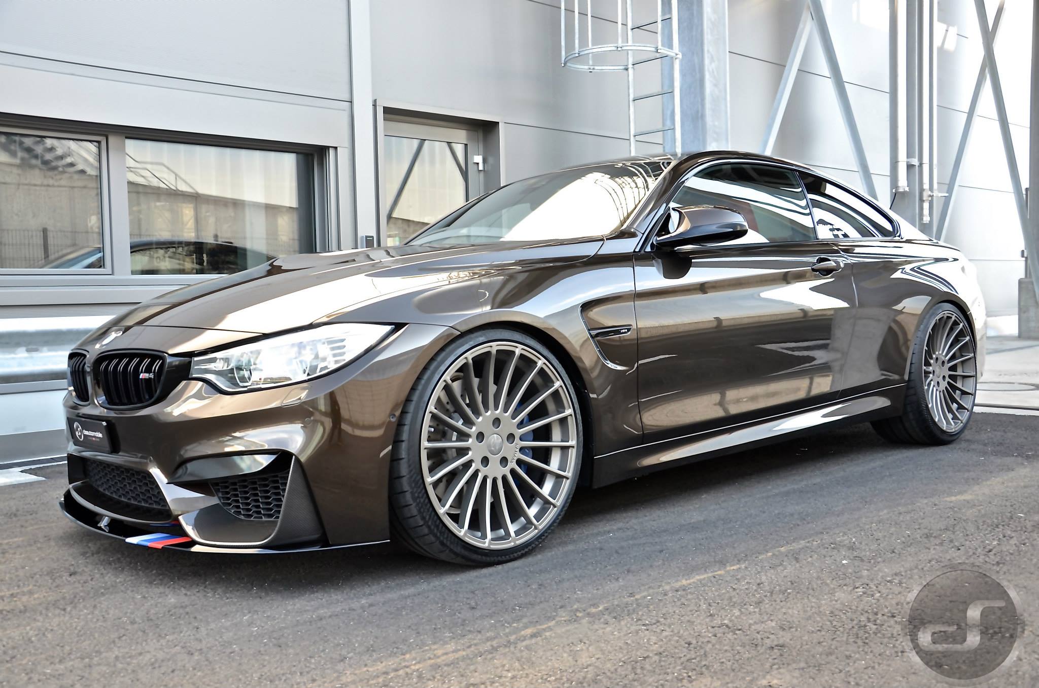 Einige neue Fotos von DS Automobile & Autowerke zeigen ein Exemplar des BMW M4, das neben der Individual-Lackierung auch die schwarzen Nieren, den Frontsplitter-Aufsatz und die Heckspoiler-Lippe von BMW M Performance sowie Felgen aus dem Tuning-Programm von Hamann Motorsport trägt. Auffällige Akzente setzen die auf dem Frontsplitter platzierten Farben der BMW M GmbH und die Abgasanlage samt passendem Diffusor von Akrapovic.