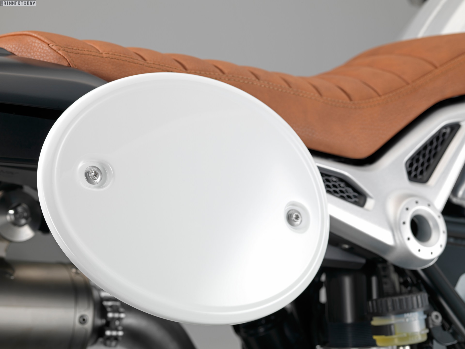 In Anlehnung an die Scrambler der 1950er- bis 70er-Jahre bietet auch der neue R nineT-Ableger eine beinahe aufrechte Sitzposition, ein klassisches Rahmendesign mit 19 Zoll großem Vorderrad und einer bewusst hoch und eng platzierten Abgasanlage. Eine abgesteppte Leder-Sitzbank mit patinierter Optik unterstreicht den Ansatz, hier kein gewöhnliches Motorrad von der Stange anbieten zu wollen – Individualität wird großgeschrieben und gehört von der ersten Minute an zum Konzept der R nineT Scrambler, die schon bald erste Experten mit ihren maßgeschneiderten Modifikationen auf den Plan rufen soll.