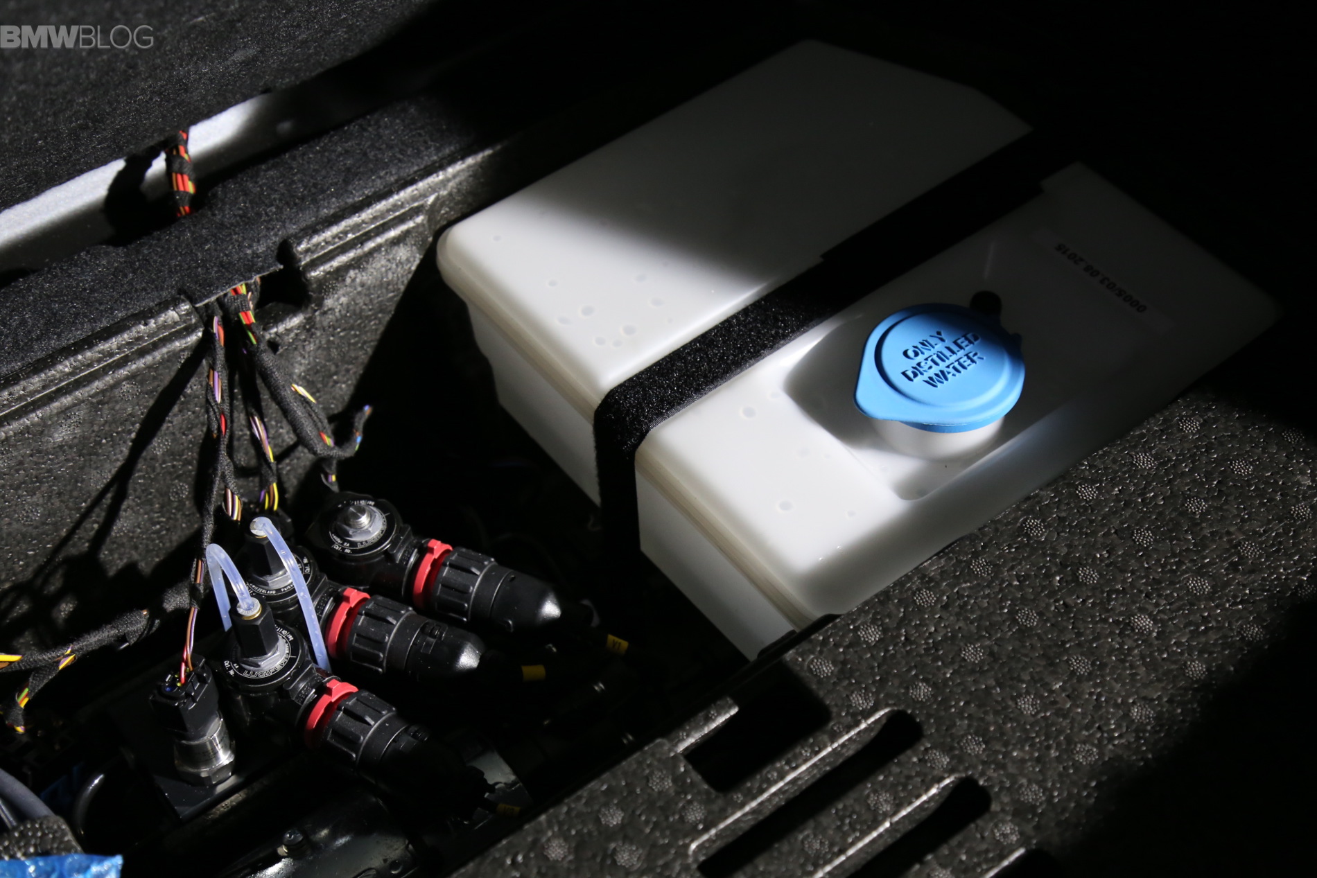 Die ersten Live-Fotos vom BMW M4 GTS haben wir bereits vor ein paar Wochen gezeigt, doch aus Tokyo erreichten uns damals keine Fotos von einem der interessantesten Details des neuen Sportcoupés. Dank BMWblog.com können wir nun zwei Fotos von der L.A. Auto Show 2015 liefern, die uns zum ersten Mal den rund fünf Liter fassenden Wasser-Tank im Kofferraum des BMW M4 GTS zeigen – und damit einen wichtigen Bestandteil der Leistungssteigerung auf 500 PS.