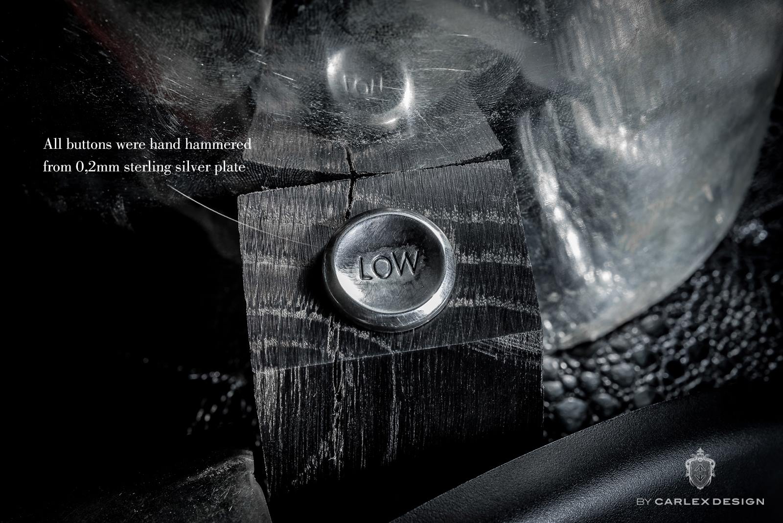 Allein für das Lenkrad wurde laut Carlex Design über ein Kilogramm Sterling-Silber verarbeitet, auch zahlreiche Knöpfe im Innenraum sind mit Silber verziert. Bei einem derart ambitionierten Projekt darf auch das edelste aller Metalle nicht fehlen, unter anderem wurden die Autoschlüssel in Handarbeit mit 24-karätigem Gold und feinstem Leder verziert.