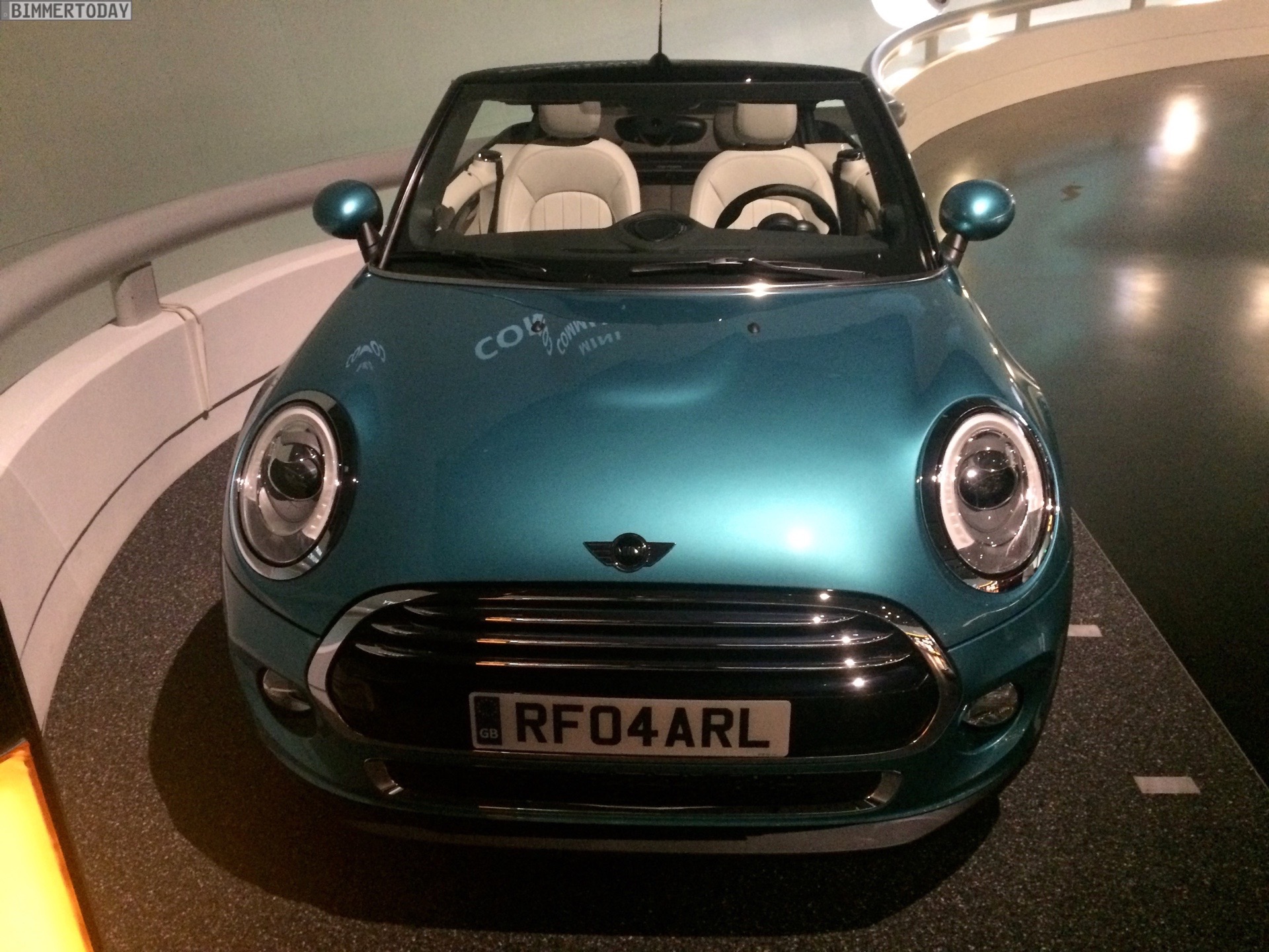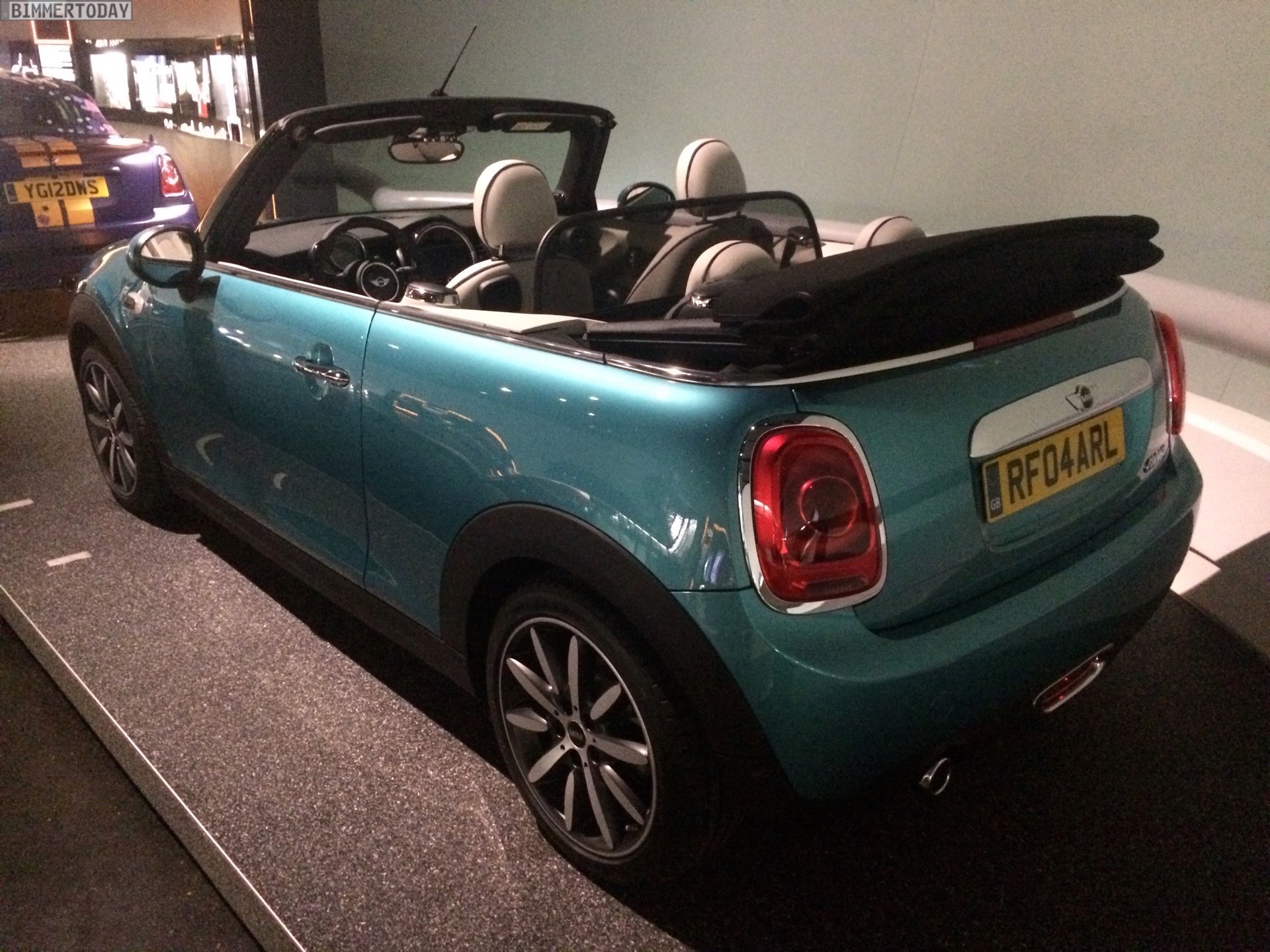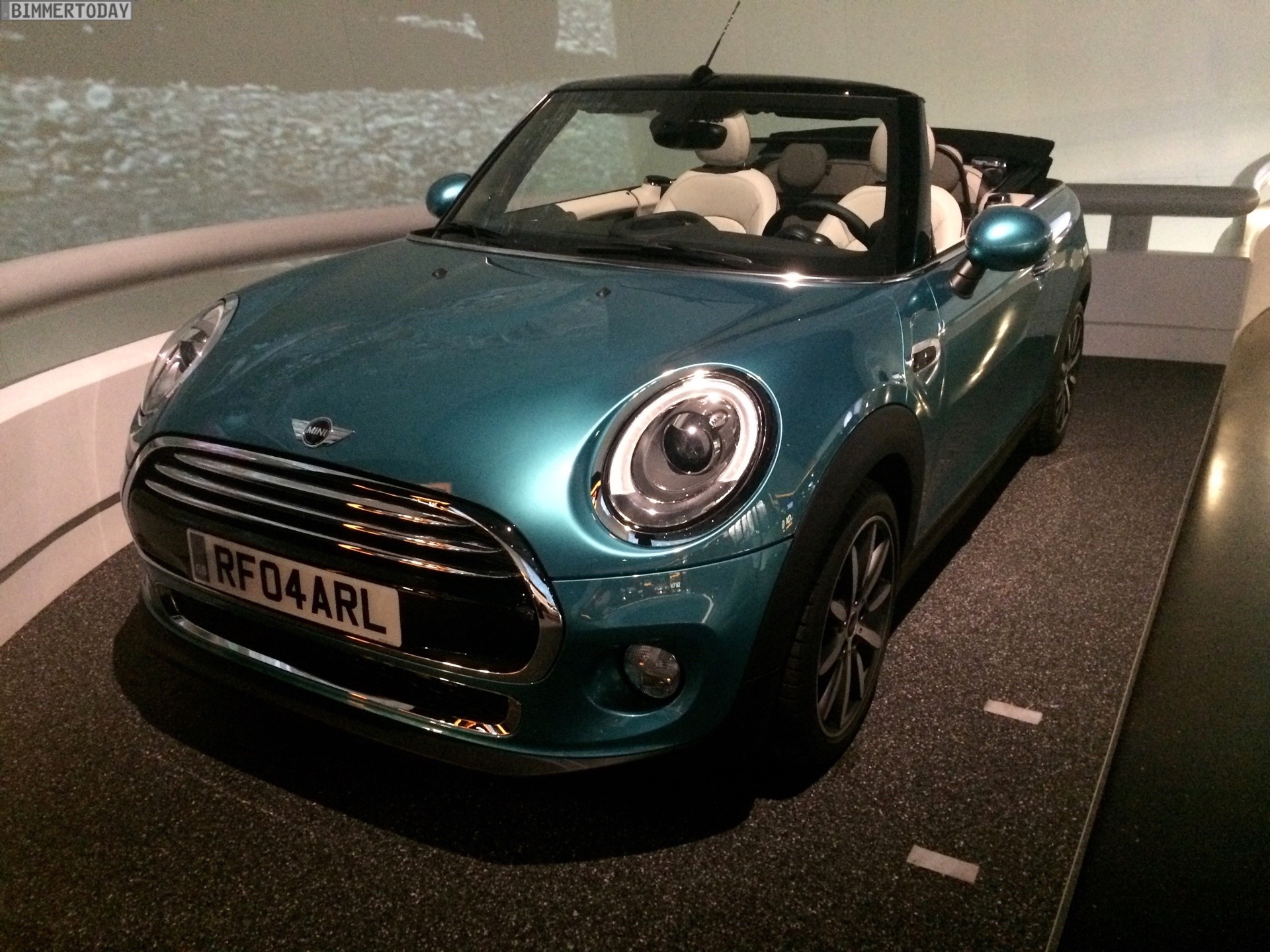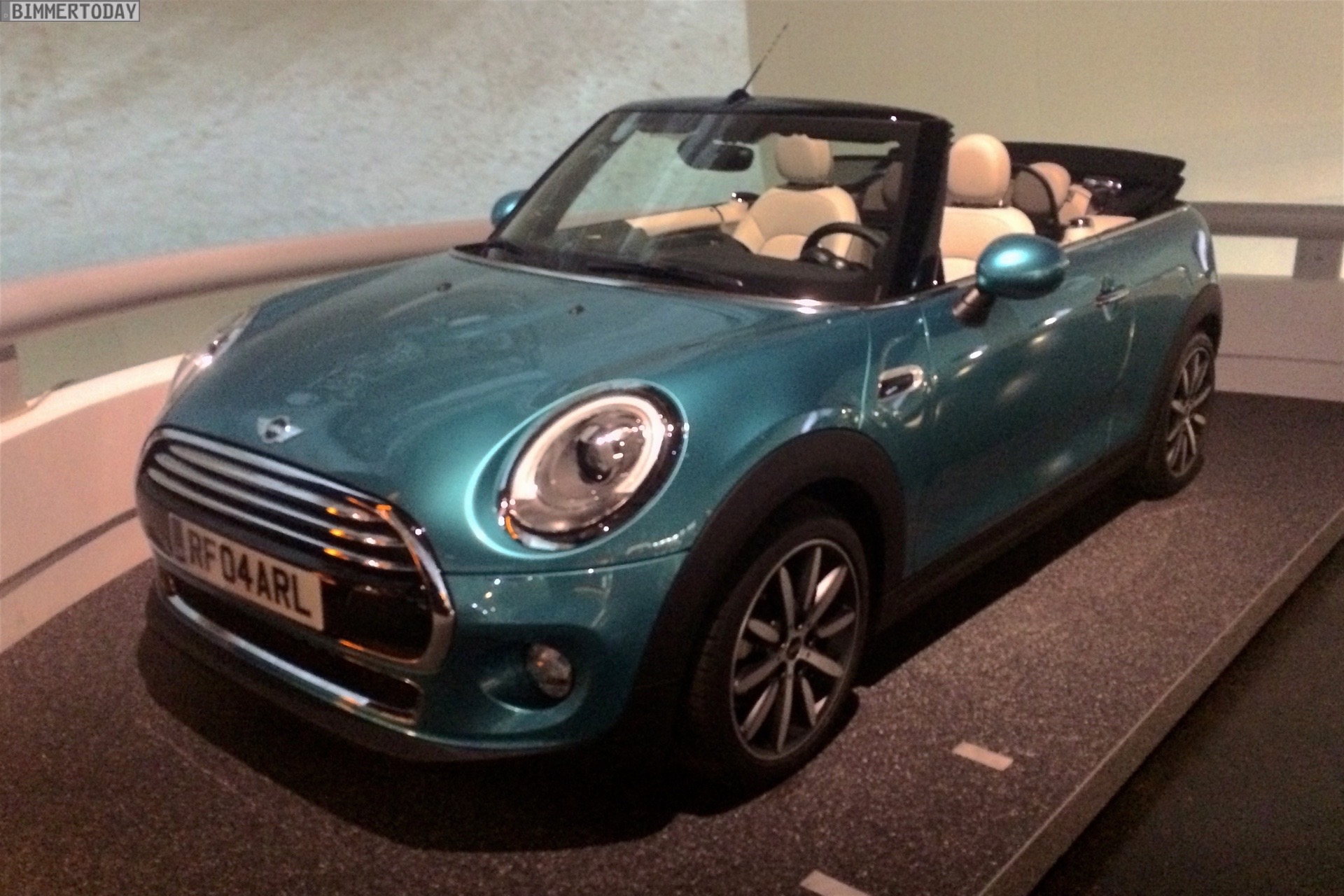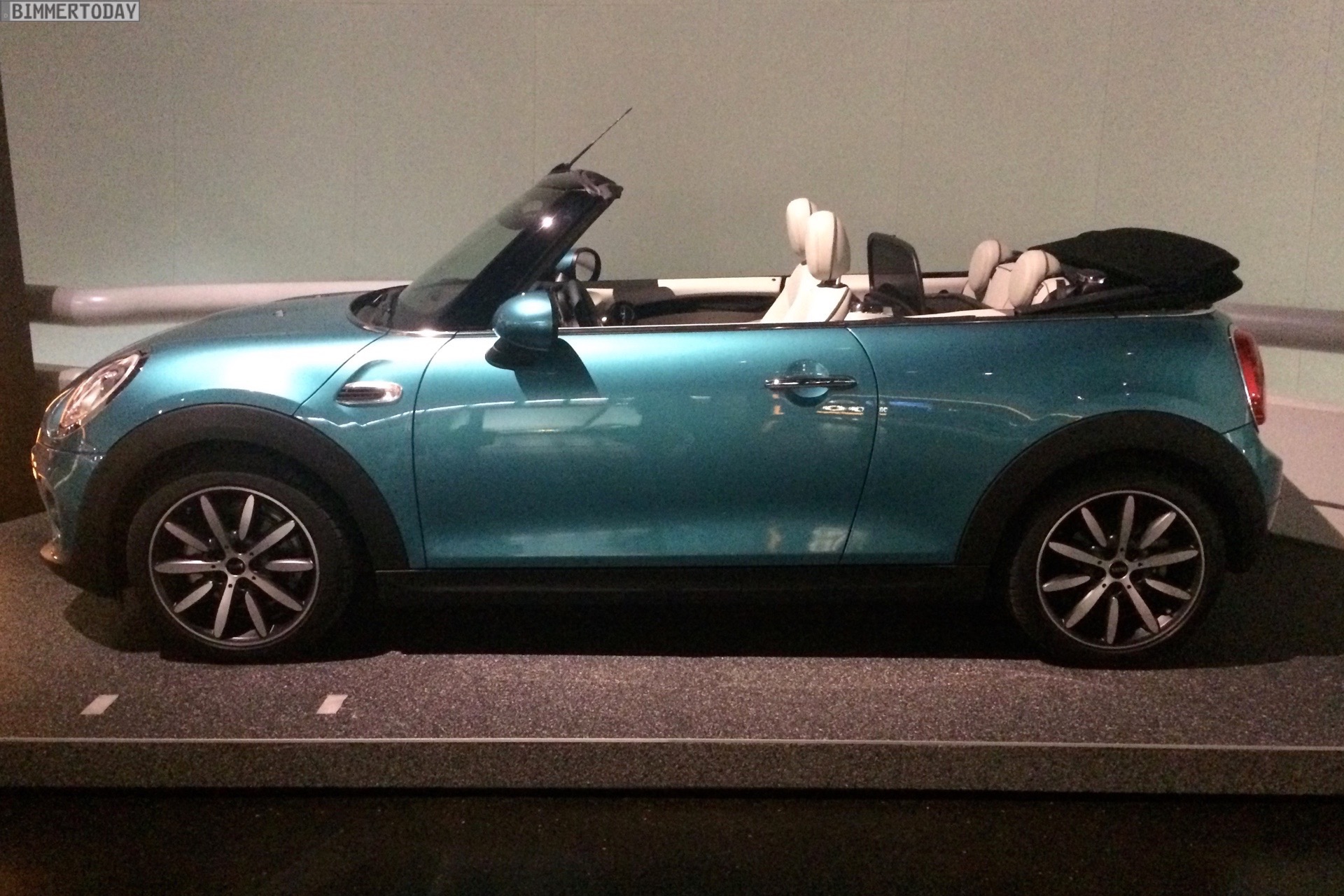 Unverhofft kommt oft: Wer sich derzeit im BMW Museum München umsieht, kann dabei neben zahlreichen historischen Fahrzeugen aus der beinahe hundertjährigen Geschichte von BMW auch das brandneue MINI Cabrio F57 bestaunen. Das offiziell vor wenigen Wochen in Tokio und Los Angeles präsentierte Premium-Cabrio für die Saison 2016 glänzt auch im BMW Museum in der neuen Außenfarbe Caribbean Aqua, die zunächst exklusiv für das Cabrio angeboten wird.