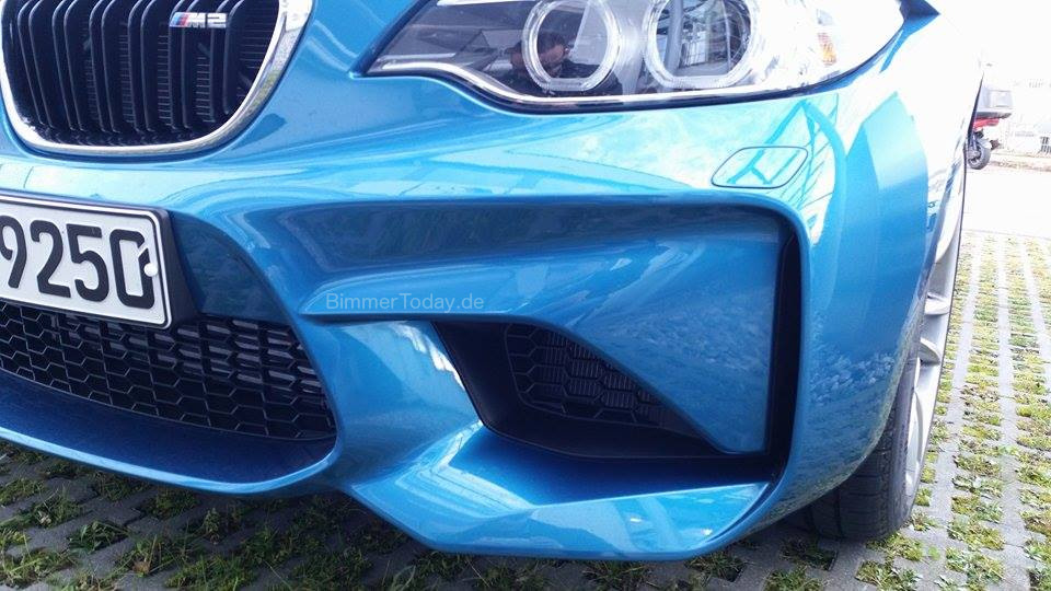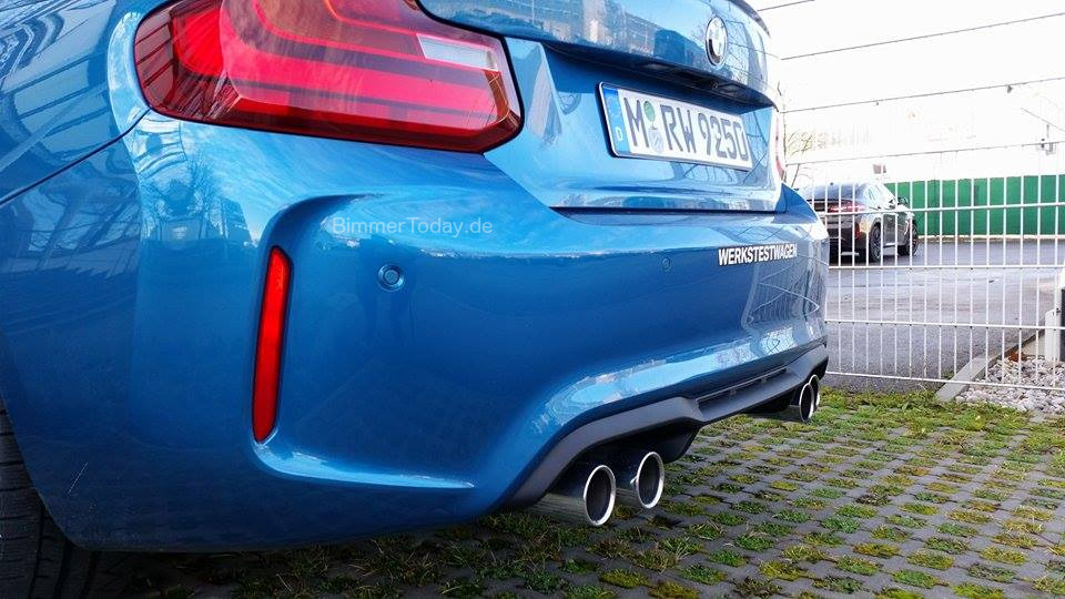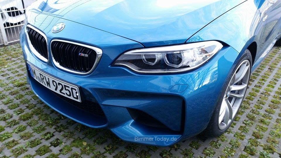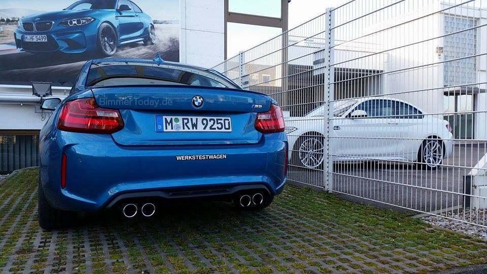 Noch vor seiner offiziellen Weltpremiere auf der Detroit Auto Show 2016 erfreut sich das BMW M2 Coupé großer Beliebtheit bei den Mitarbeitern der M GmbH, unser Leser Todor hat vor der M-Zentrale in Garching erneut ein Exemplar des neuen Sportcoupés als völlig ungetarnten Werkstestwagen erwischt. Der Prototyp glänzt in der offiziellen Launch-Farbe Long Beach Blue und ist bei der M GmbH nicht nur als echtes Fahrzeug zu bewundern, sondern ziert auch ein Plakat-Poster an der Fassade. Im Hintergrund ist außerdem ein weiterer BMW M2-Prototyp in Alpinweiß zu erkennen, genau wie der blaue Werkstester steht auch dieser Erlkönig auf Winterreifen.
