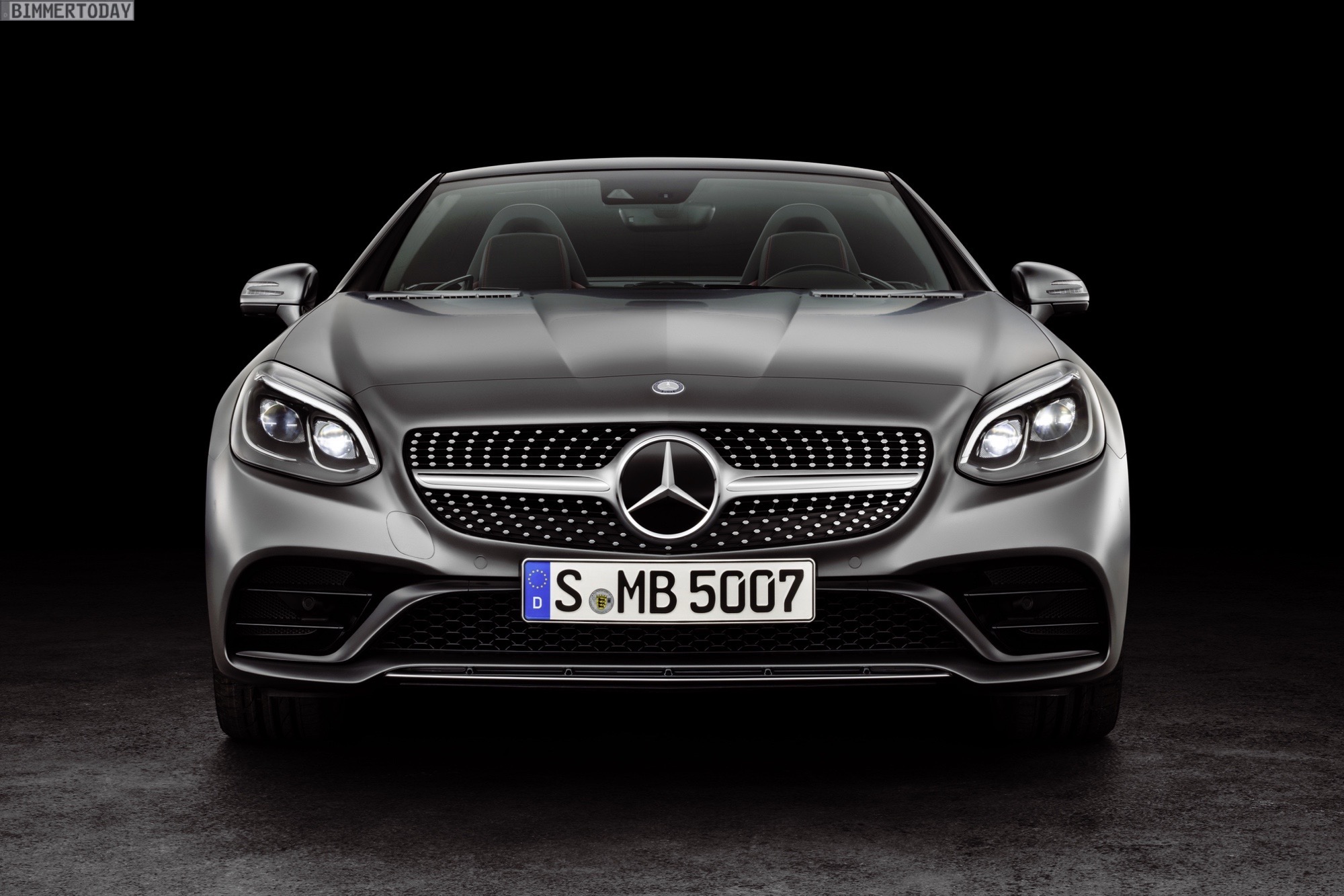 Die Nähe zum bisherigen SLK ist bereits auf den ersten Blick unübersehbar, der serienmäßige Diamantgrill bringt die Front auf Linie mit der aktuellen Designsprache und sorgt für eine gewisse Abgrenzung vom Pre-Facelift. Dezent überarbeitete Leuchteinheiten an Front und Heck, serienmäßige LED-Scheinwerfer und ein aufgefrischter Innenraum mit größerem Infotainment-Display runden die optischen Maßnahmen der Modellpflege ab.