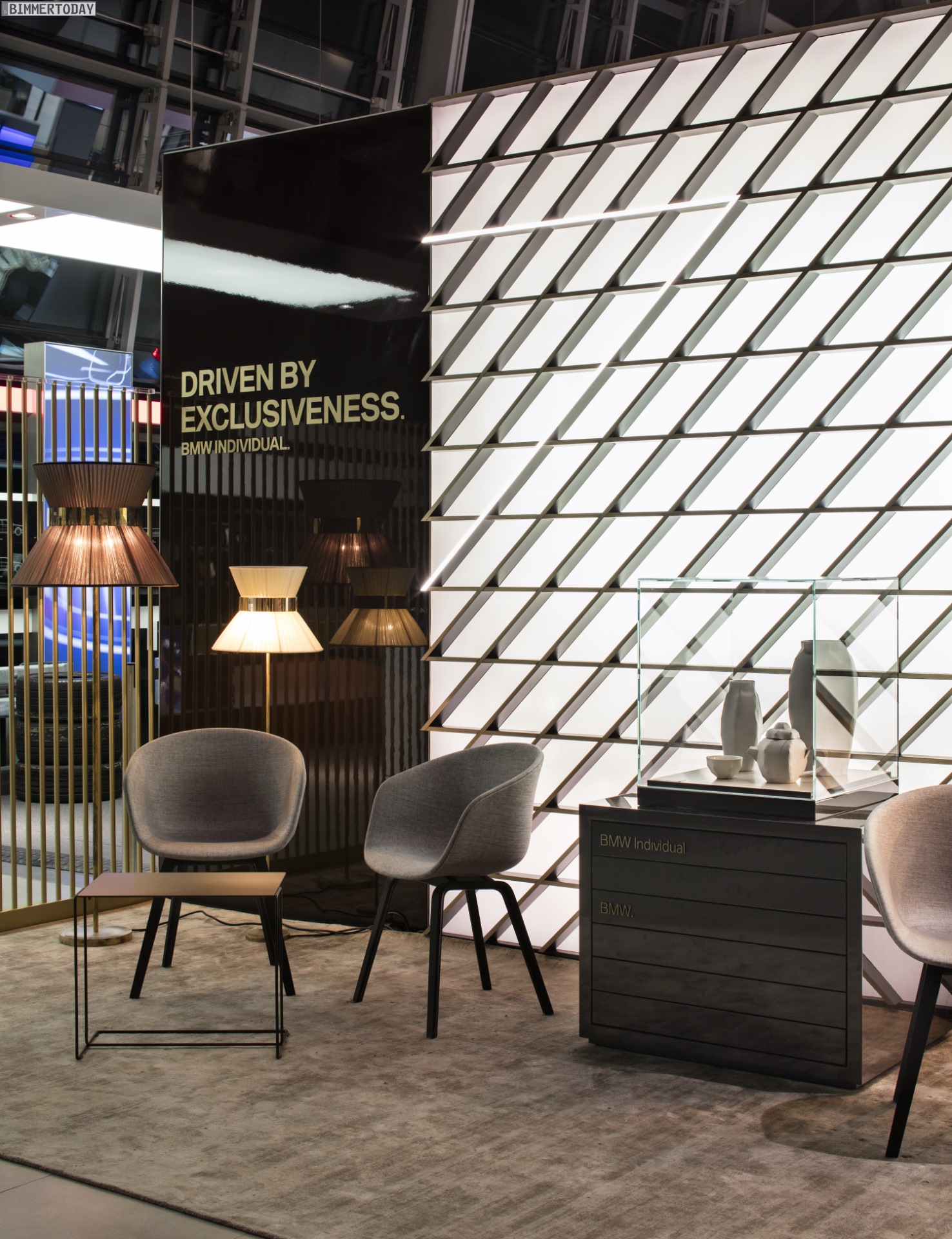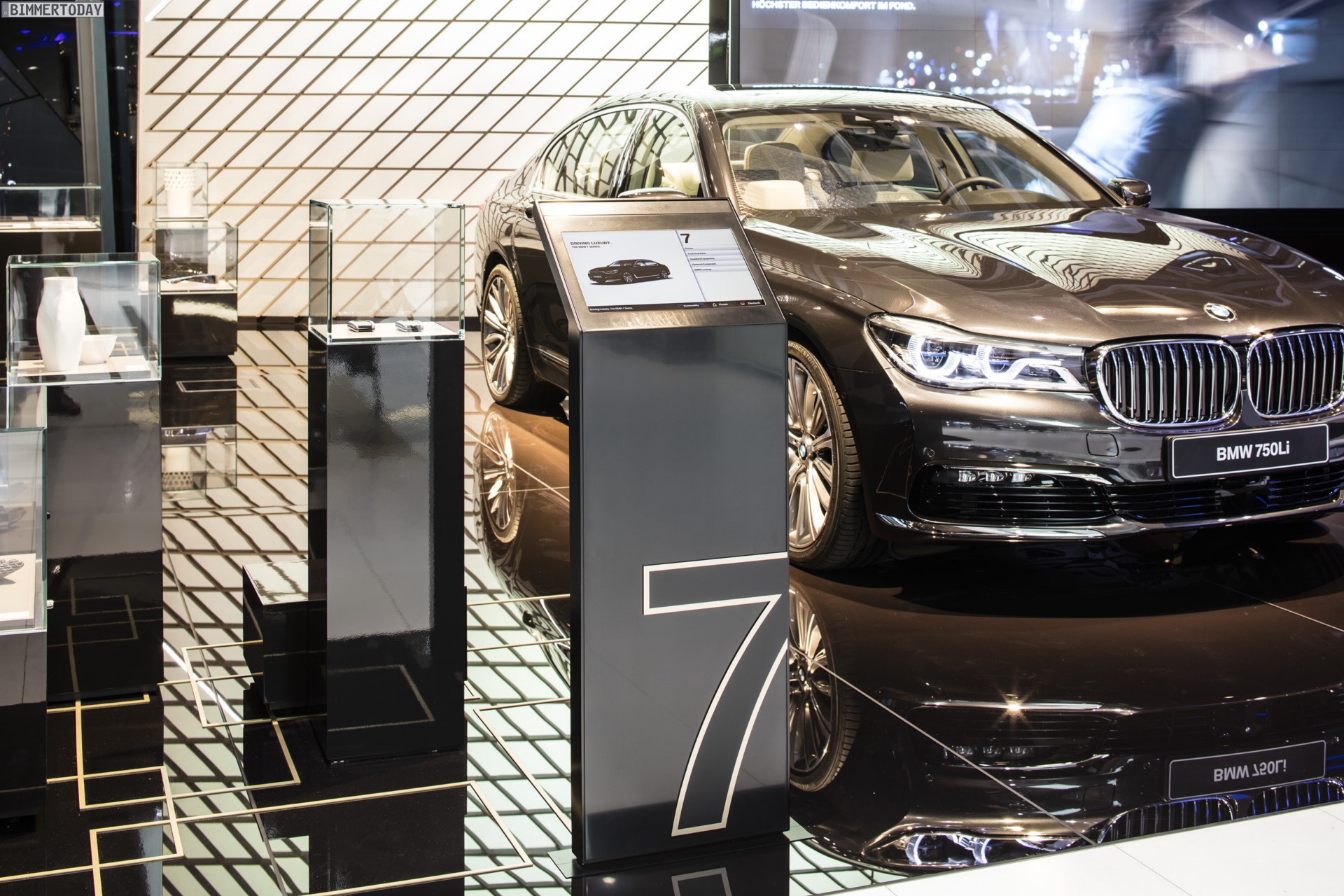 Im Umfeld der Fahrzeuge lassen sich außerdem Innovationen aus den Themenbereichen Funktionalität, individueller Komfort, Design und EfficientDynamics erleben. Neben zahlreichen Bauteilen der neuen BMW 7er-Reihe kommen dabei auch Artefakte aus der Nymphenburger Porzellan Manufaktur zum Einsatz und unterstreichen den hochwertigen Anspruch der Luxuslimousine.