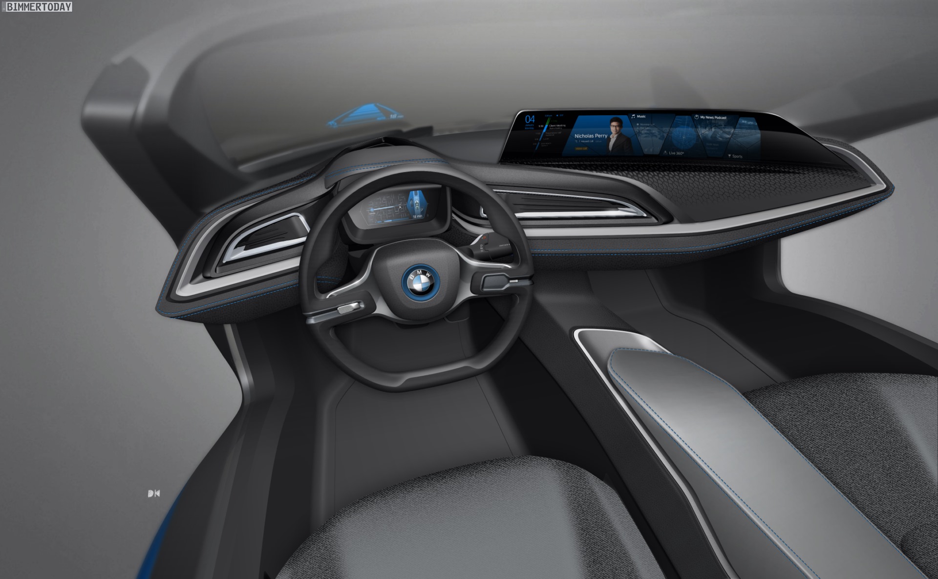 Auf den ersten Blick könnte man das Münchner Concept Car zur CES 2016 “nur” für eine Vorschau auf den BMW i8 Spyder halten, doch damit wäre die Geschichte des BMW i Vision Future Interaction völlig unzureichend erzählt. Den Hauptgrund für das fehlende Dach und den völligen Verzicht auf Türen liefert der Innenraum, der sich so einfach von mehr Besuchern gleichzeitig begutachten lässt – denn die hier gezeigte Vision vom Interieur der Zukunft ist deutlich spannender als es ein BMW i8 Spyder mit vertrauter Technik sein könnte.