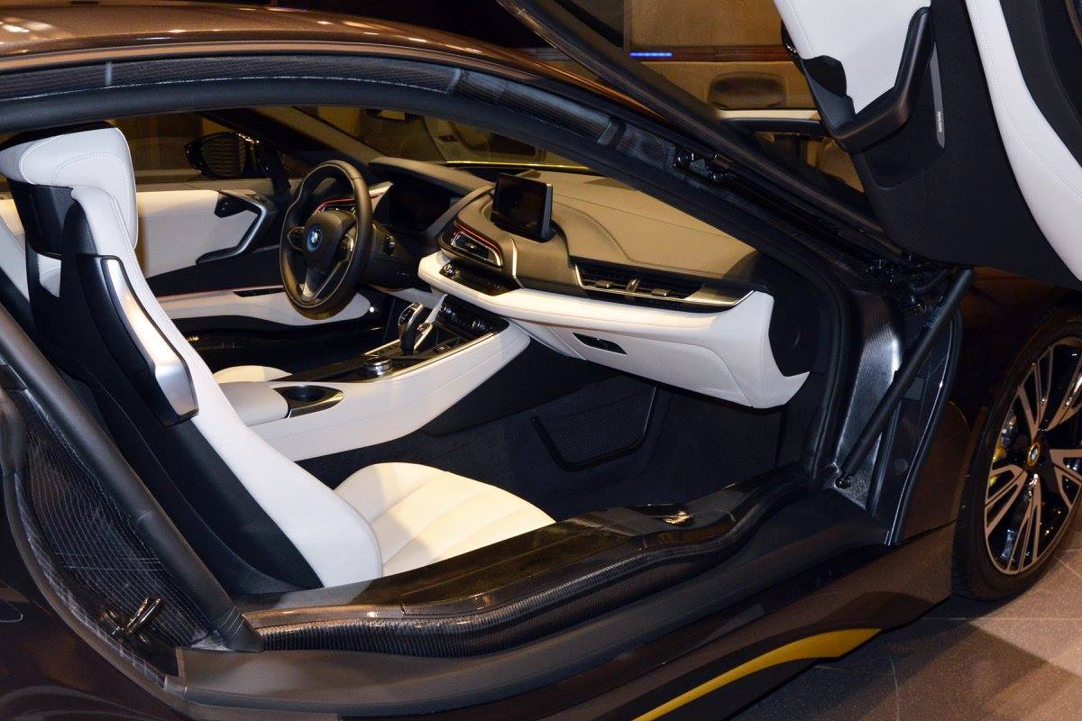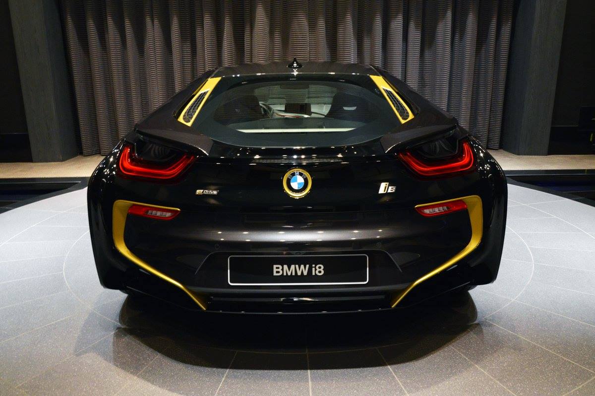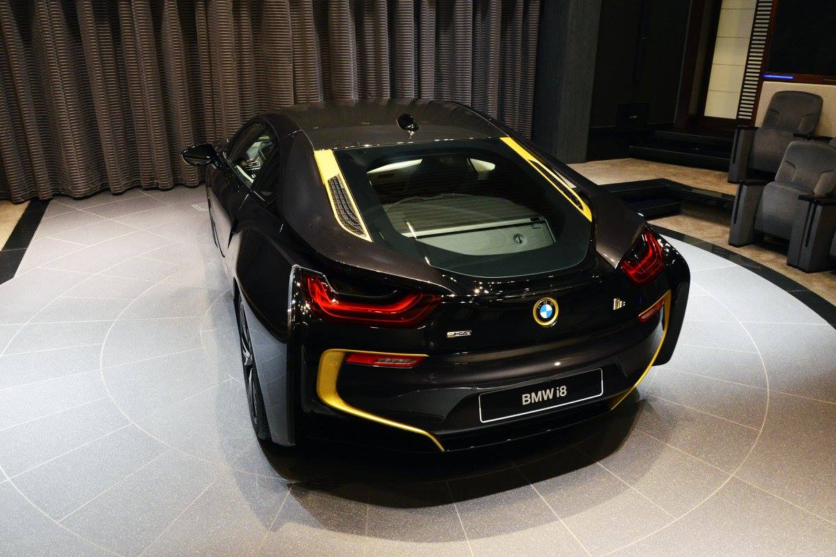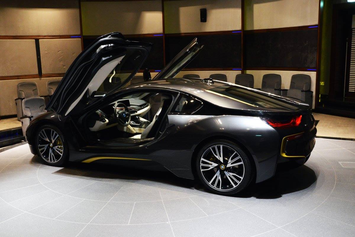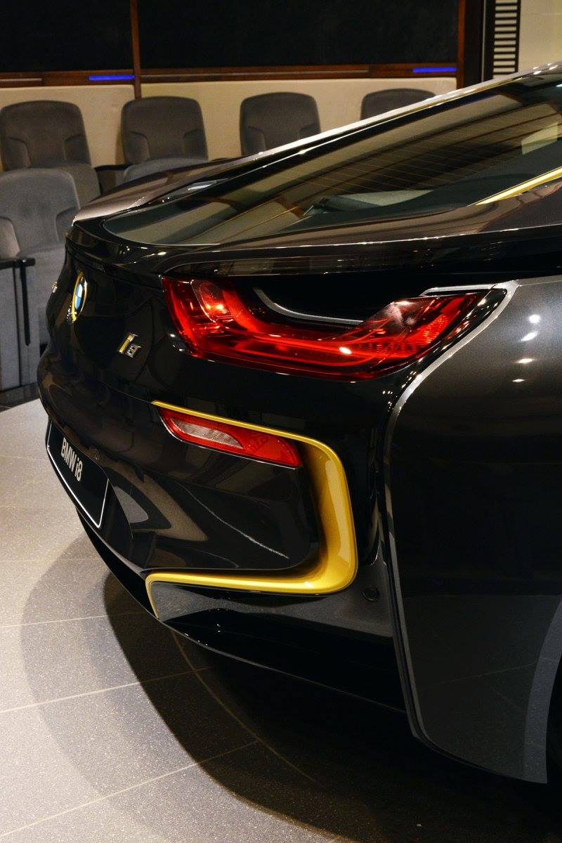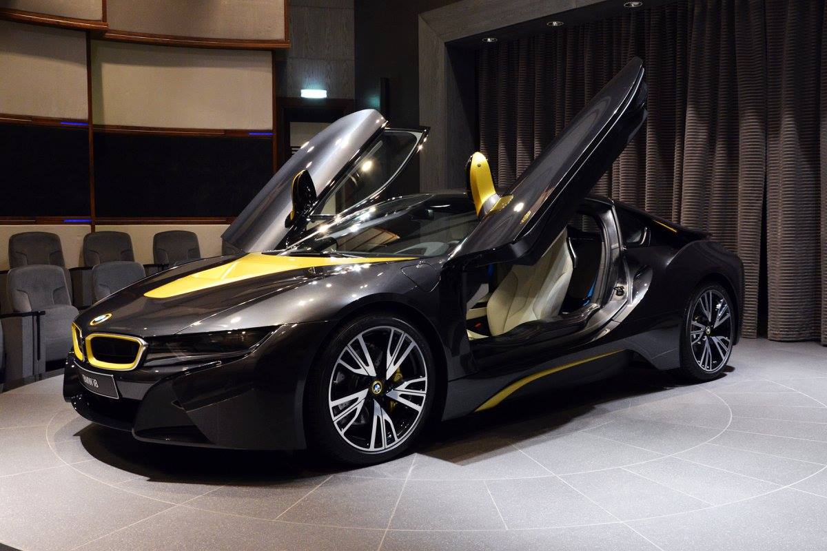 Ein weiteres Beispiel für die große Wirkung kleiner Maßnahmen liefert BMW Abu Dhabi Motors. Für ihren Showroom haben die Araber einen BMW i8 in Sophistograu mit Akzenten in Austin Yellow versehen und verpassen ihm so eine unverwechselbare Optik. Die gemeinsam mit den Mittelklasse-Sportlern M3 und M4 eingeführte und nach der Formel 1-Rennstrecke in Texas benannte Farbe kommt nicht nur an Nieren und Außenspiegeln zum Einsatz, sie ersetzt auch Elemente des sogenannten Black Belt und jene Akzente, die ab Werk in BMW i Blau lackiert sind.