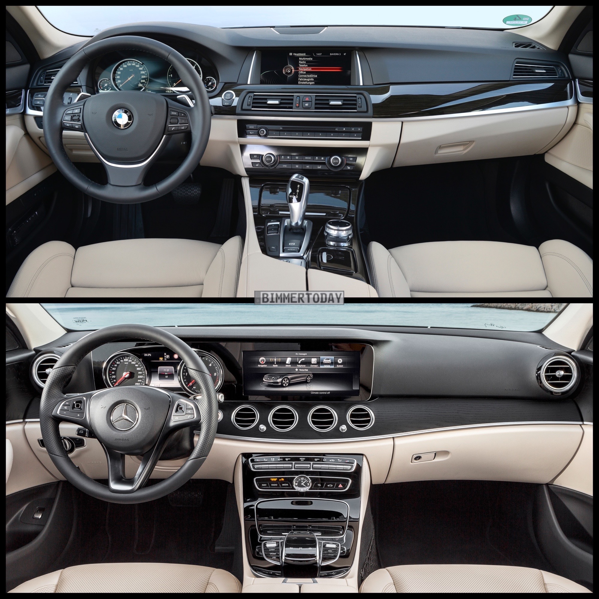 In unserem Bild-Vergleich stellt sich der aktuelle BMW 5er (F10 LCI) dem neuen Rivalen aus Stuttgart, der sowohl der aktuellen C- als auch der S-Klasse wie aus dem Gesicht geschnitten zu sein scheint. Doch auch die Tatsache, dass sich der BMW 5er derzeit klar von 3er- und 7er-Reihe unterscheidet, dürfte mit der ab Anfang 2017 erhältlichen 5er-Generation G30 der Vergangenheit angehören – die Ähnlichkeit der Limousinen-Baureihen wird dann auch in München wieder zunehmen, wenn auch nicht in gleicher Konsequenz wie bei Mercedes.