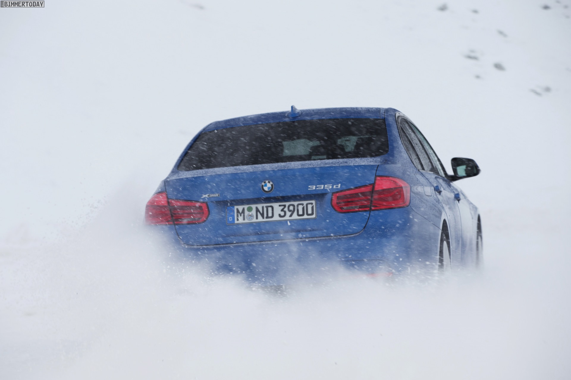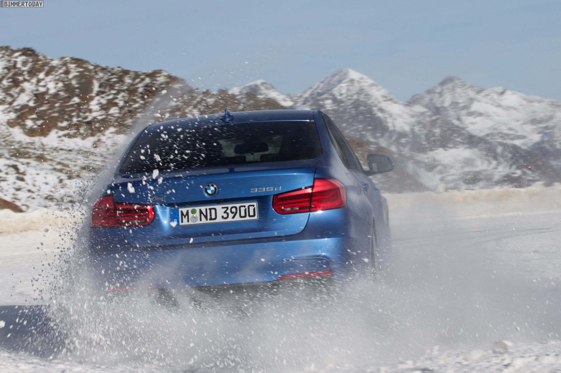 Mit dem BMW 3er Facelift 2015 wurde auch das Topmodell unter den Selbstzündern aufgefrischt. Der BMW 335d xDrive (F30 LCI) ist mit seinem 313 PS starken Biturbo-Diesel genau wie seine Vorgänger ohne direkte Konkurrenz unterwegs, weder Audi noch Mercedes bieten in der Mittelklasse ähnlich starke Diesel an. Auf einigen neuen Fotos sehen wir den ausschließlich mit Allradantrieb erhältlichen BMW 335d mit M Sportpaket und auffälliger Lackierung in Estorilblau Metallic vor verschneiter Alpen-Kulisse.