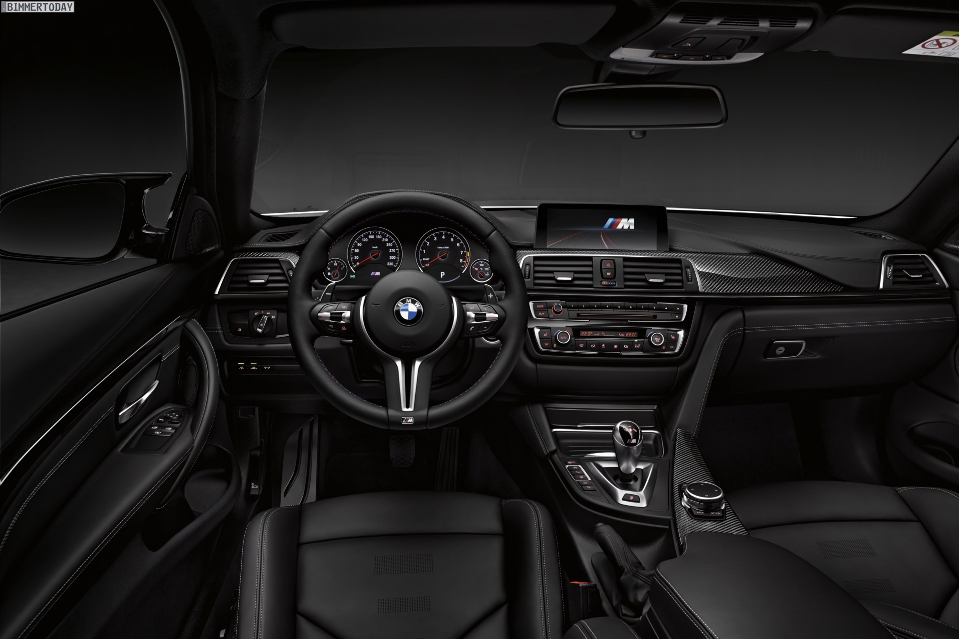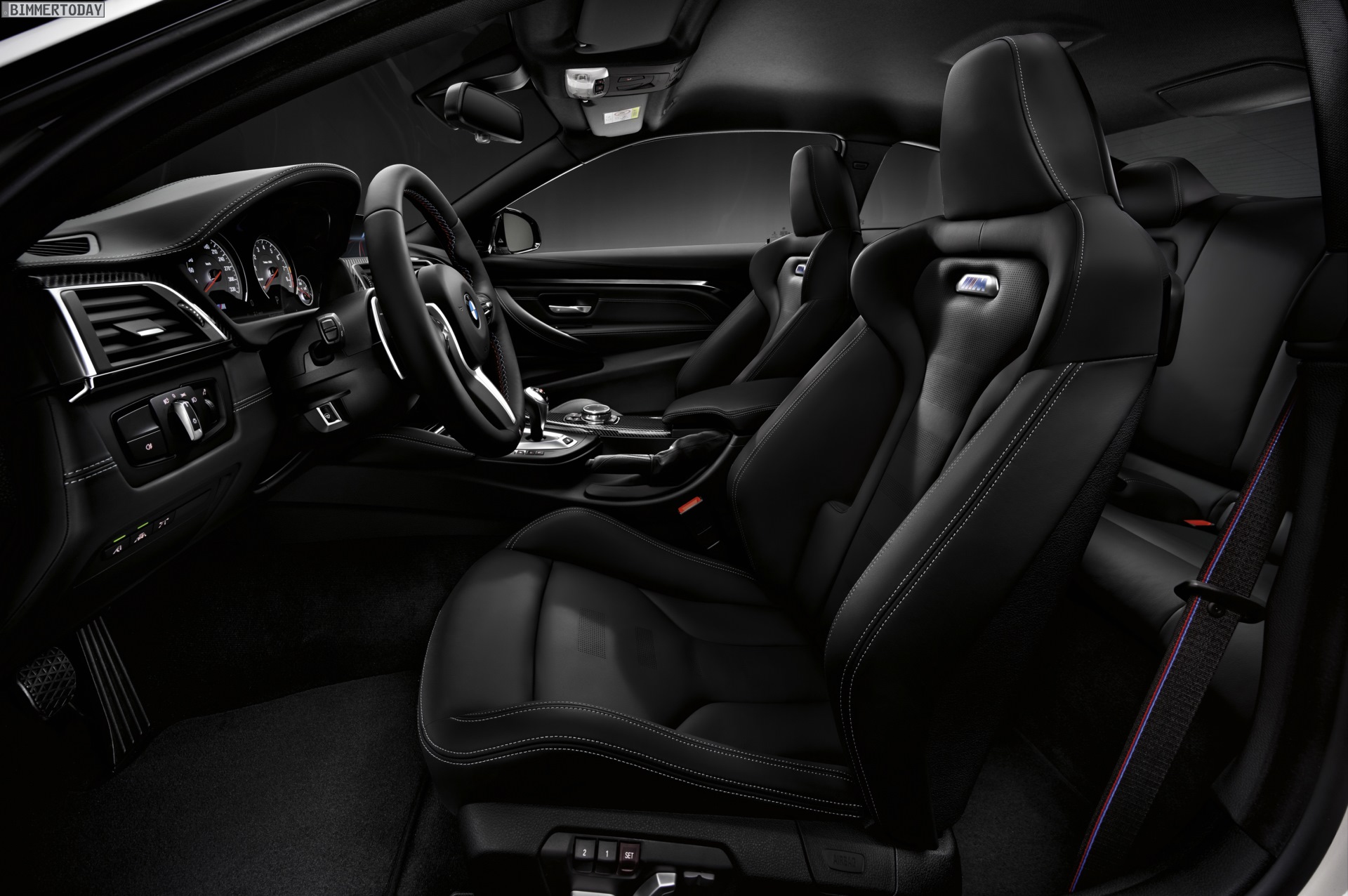Im Preis von 7.300 Euro für BMW M3 Limousine und BMW M4 Coupé beziehungsweise 6.400 Euro im Fall des BMW M4 Cabrio inbegriffen ist auch die BMW Individual Hochglanz Shadow Line mit erweiterten Umfängen. Neben den üblichen Elementen sind bei Fahrzeugen mit Competition Paket auch die Nieren, die seitlichen Kiemen und der Modellschriftzug am Heck in hochglänzendem Schwarz ausgeführt. Genießen lässt sich das nachgeschärfte Gesamtpaket auf neuen M Leichtbau-Sportsitzen, die mit speziellen Gurten samt eingearbeiteten M-Farben kombiniert werden.