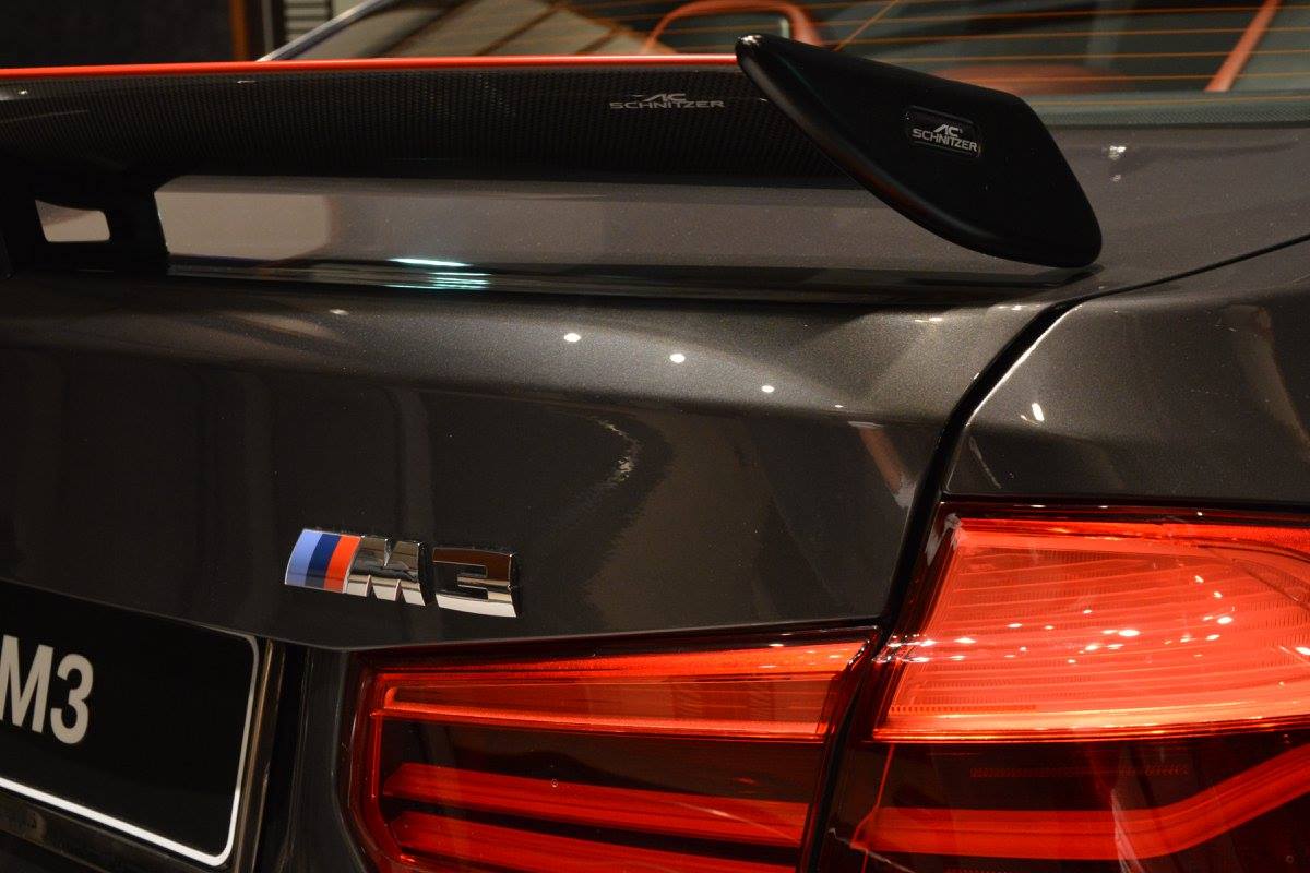 Die wichtigsten Komponenten kommen dabei aus dem Regal von BMW M Performance, denn die hauseigene Tuning-Marke steuert neben Außenspiegeln, Carbon-Diffusor und passenden Seitenschwellern auch Carbon-Aufsätze und Splitter für die Frontschürze bei. Der markante Heckflügel auf der Kofferraumhaube stammt von AC Schnitzer und dürfte auch dem letzten Beobachter klar machen, dass hier kein serienmäßiger BMW M3 unterwegs ist.