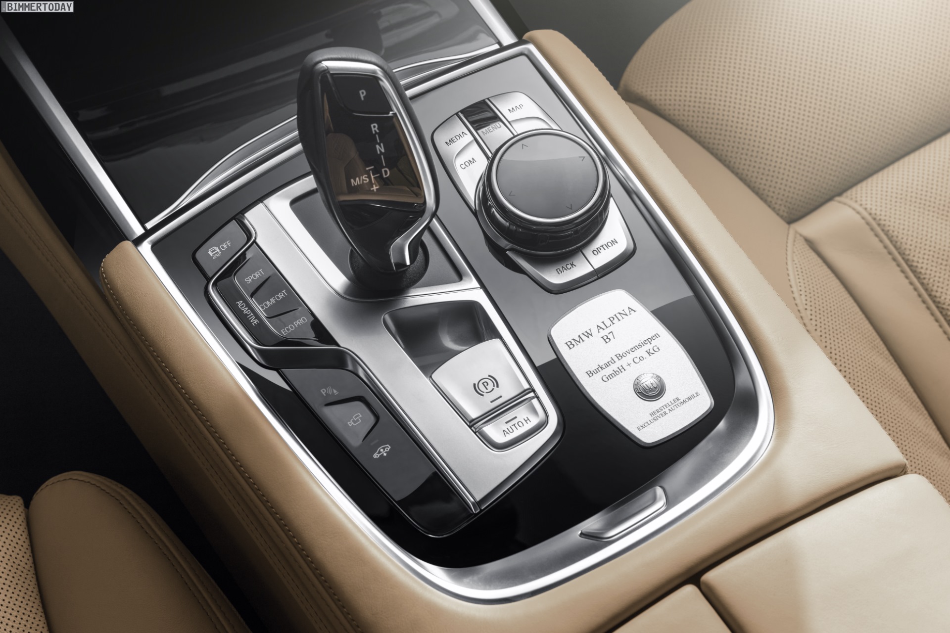 Im Vergleich zum 450 PS starken Motor des BMW 750i G11 verfügt der BMW Alpina B7 xDrive über eine grundlegend geänderte Luftführung mit leistungsstärkerem Ladeluftkühler und zwei speziell für den neuen Alpina B7 abgestimmten TwinScroll-Turboladern mit größerem Luftdurchsatz. Außerdem kommen Kolben von Mahle, Zündkerzen von NGK sowie zusätzliche Wasser- und Öl-Kühler zum Einsatz und halten das Triebwerk stets in einem gesunden Temperaturfenster. Der Sound der Abgasanlage kann dank Klappensteuerung durch einen einfachen Druck auf den Fahrerlebnisschalter signifikant verändert werden.