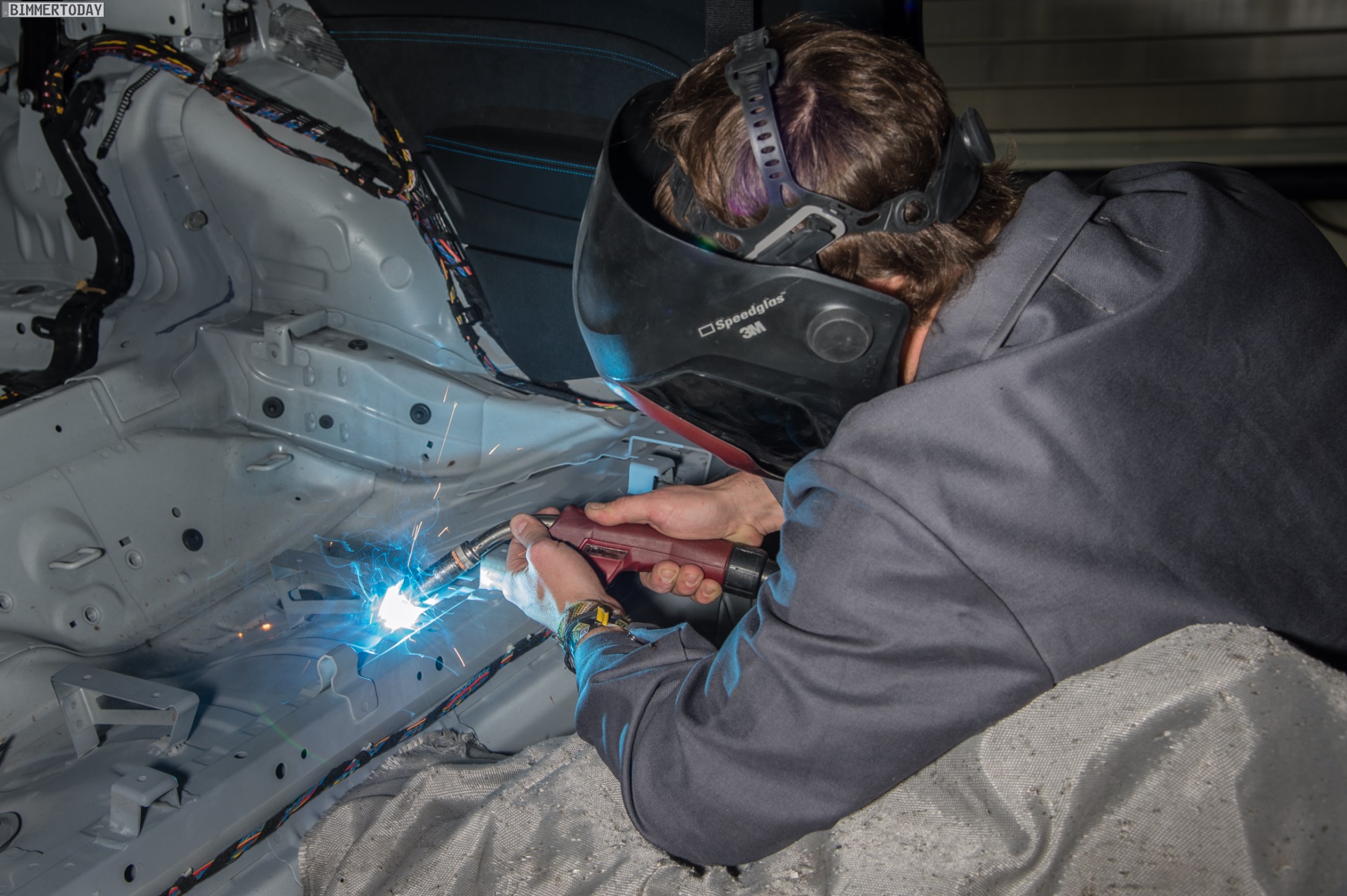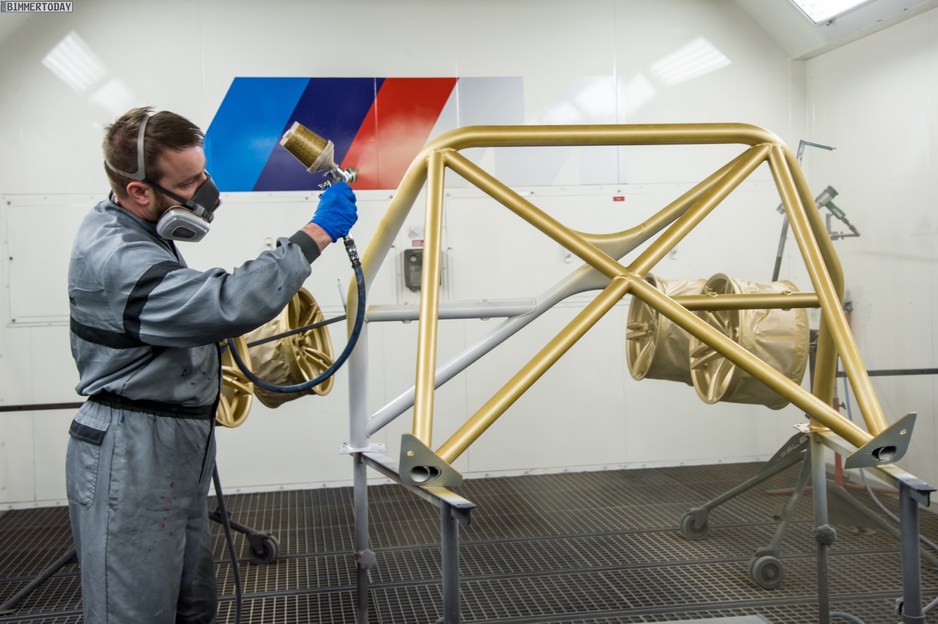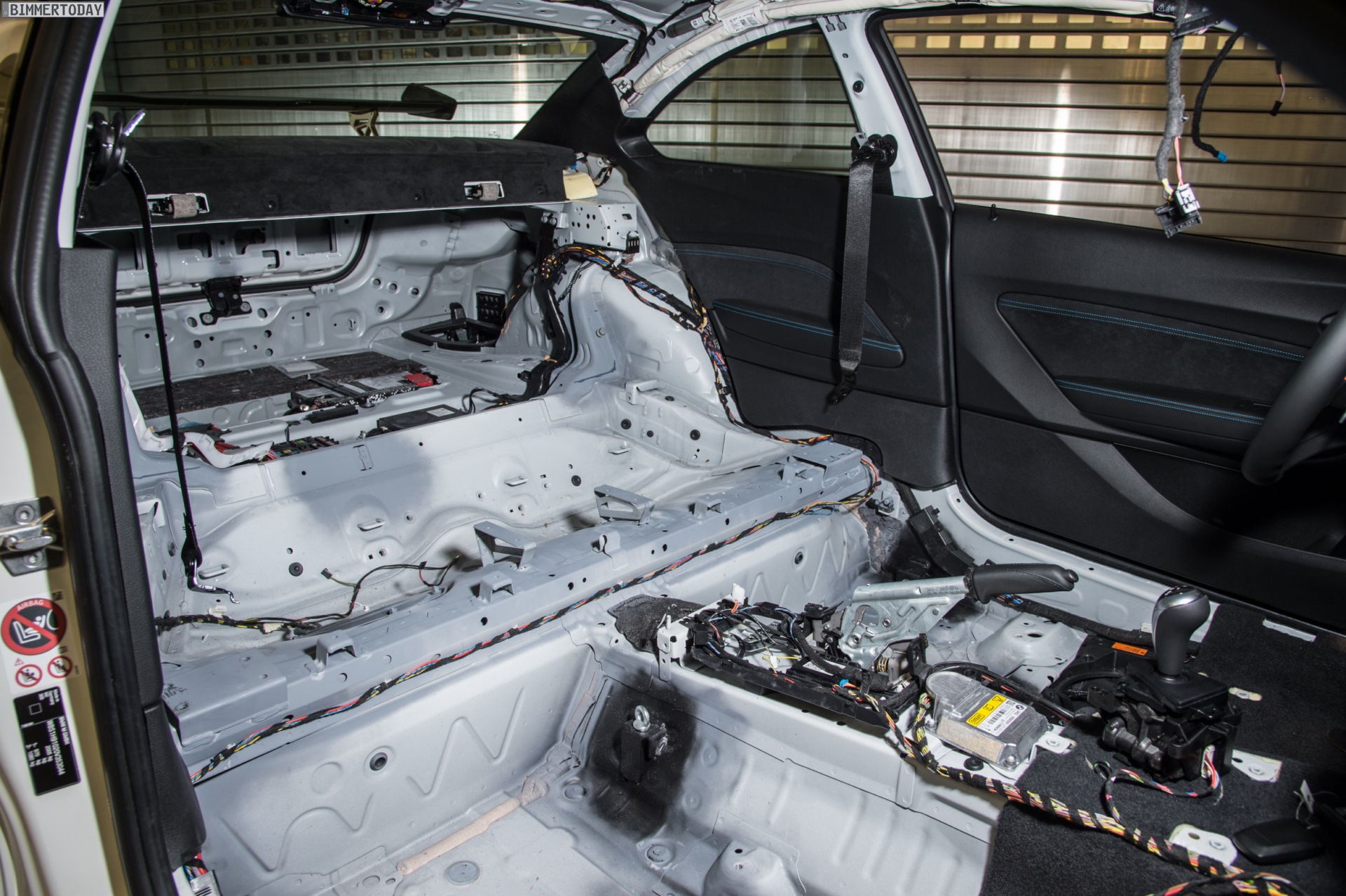 Der BMW M2 musste dabei nicht nur technisch für den Einsatz auf der Rennstrecke vorbereitet werden, natürlich spielt auch die Optik bei einem derartigen Showcar eine wesentliche Rolle. Nach dem Entfernen der Rückbank konnten die Aufnahmen für den Überrollkäfig, die Anker der Sechspunkt-Gurte und die Halterung für den Feuerlöcher angeschweißt werden. Der Käfig ist an den des BMW M4 GTS angelehnt, musste aber für die etwas kleinere Karossiere des M2 Coupé angepasst werden.