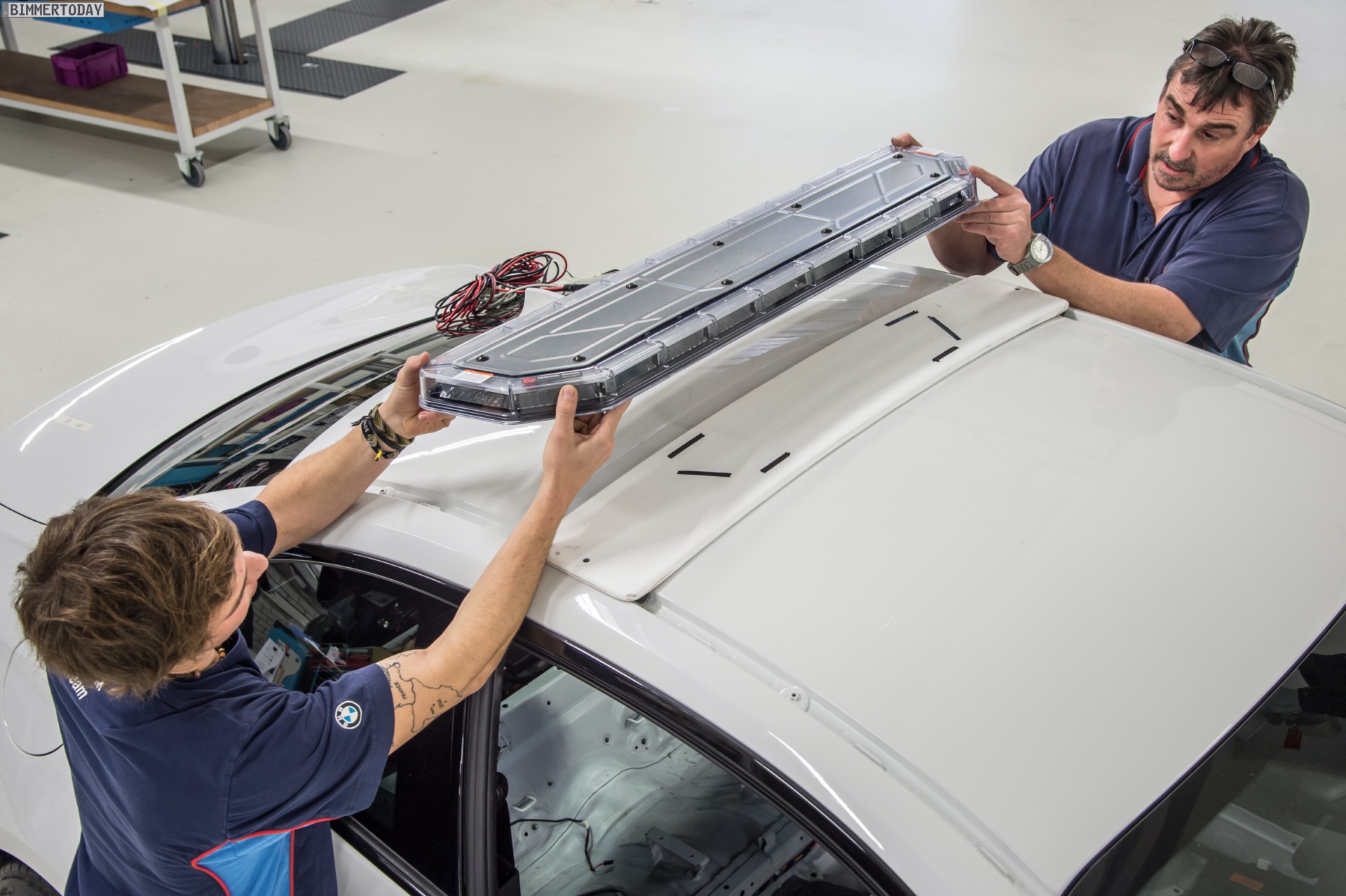 Eine wesentliche Rolle für den unübersehbaren Einsatz als Safety Car spielen natürlich auch die zusätzlichen Licht-Elemente. Die Corona-Ringe der Scheinwerfer können dabei ebenso blinken wie die Rückleuchten, zusätzliche LED-Blitzer an Front und Heck sowie die Lichtleiste auf dem Dach. So ist dem MotoGP Safety Car 2016 unter allen Bedingungen Aufmerksamkeit sicher. Zur Steuerung der Lichttechnik wurde schließlich noch ein neues Schaltpanel im Cockpit montiert.