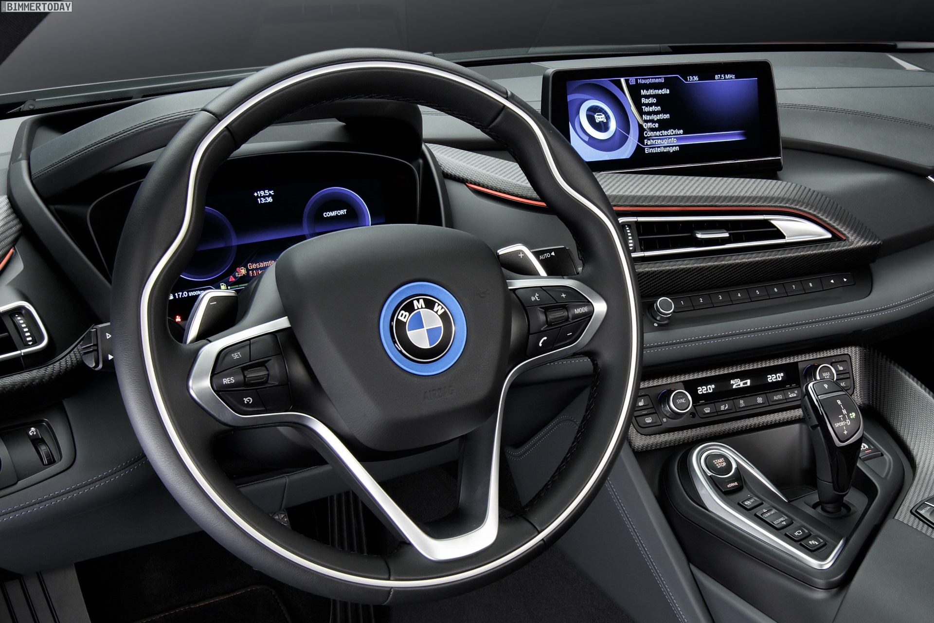 Auch im Innenraum kommt die BMW i8 Protonic Red Edition mit zahlreichen roten Details, Kontrastnähte und Lederkeder greifen die exklusive Außenfarbe vielerorts wieder auf. Die Sonderedition ist nicht auf eine bestimmte Stückzahl beschränkt, kann aber nur bis Ende 2016 bestellt werden und ist insofern durchaus limitiert.