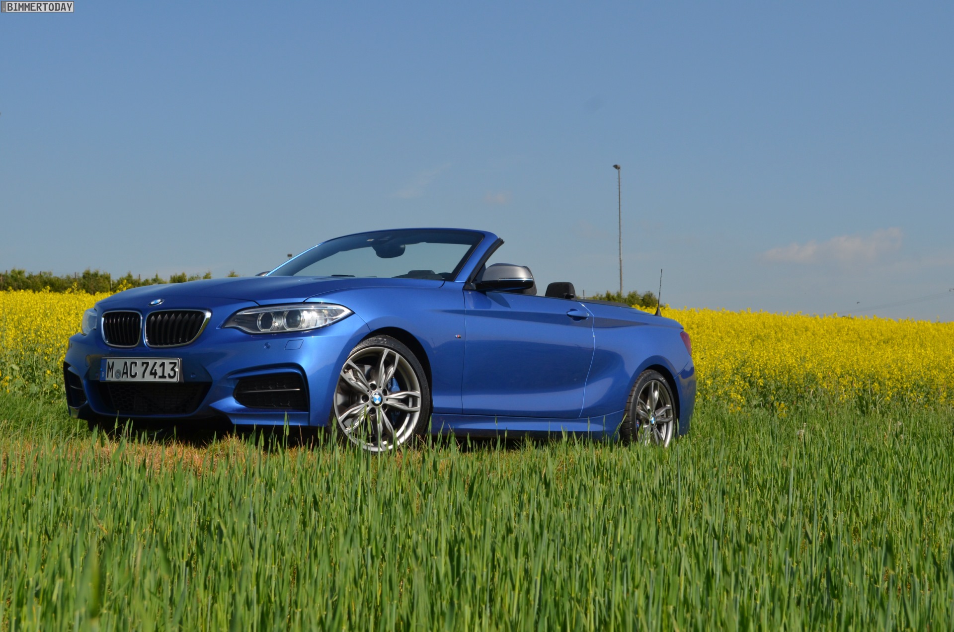 Dass dabei die Sonne im Gesicht und der Wind in den Haaren zu spüren sind, dürfte nicht nur ausgesprochenen Cabrio-Fans letztlich wichtiger als die im Vergleich zum leichteren, aber permanent geschlossenen Coupé marginal niedrigeren Kurvengeschwindigkeiten sein. Die Art und Weise, wie sich im BMW M235i Cabrio Kurven genießen und erleben lassen, macht auch bei geschlossenem Verdeck ähnlich viel Spaß wie im Coupé. Generell merkt man dem Cabriolet sein zusätzliches Gewicht nur äußerst selten an, ohne ein direktes Umsteigen vom Coupé lässt die Agilität des offenen M235i ganz sicher keine Wünsche offen.