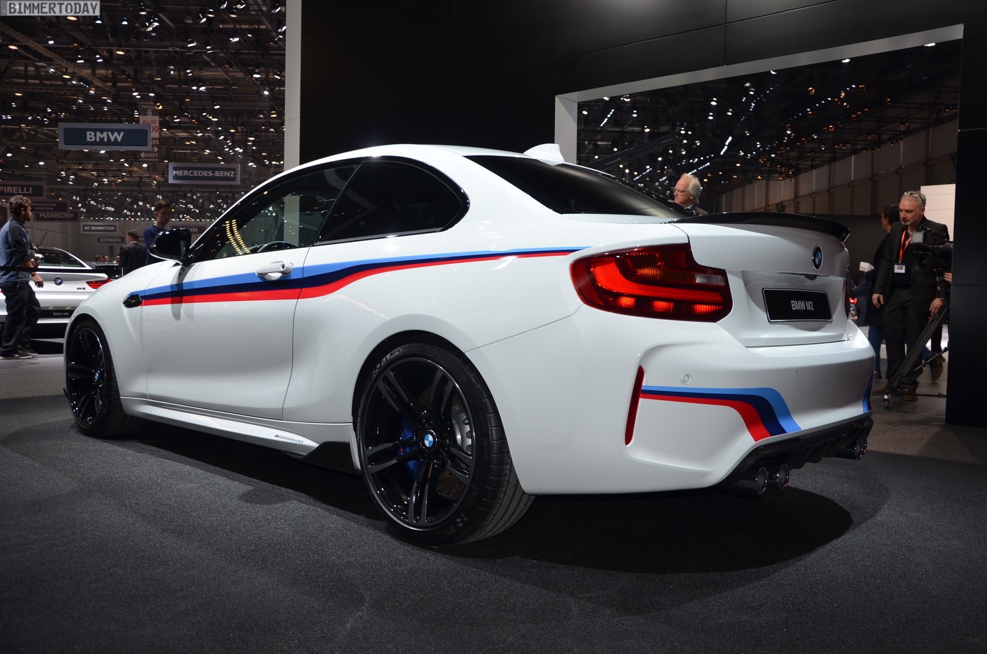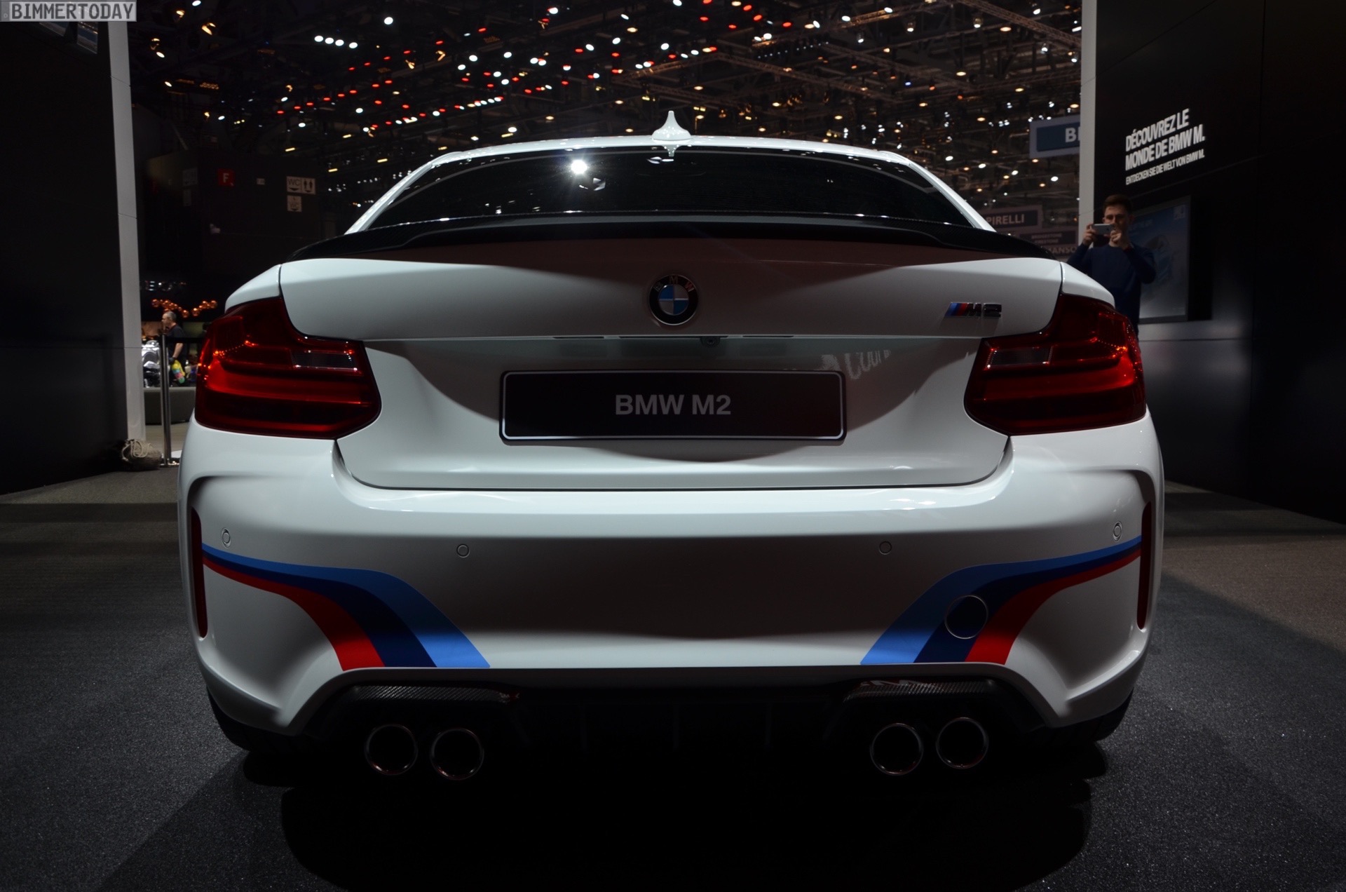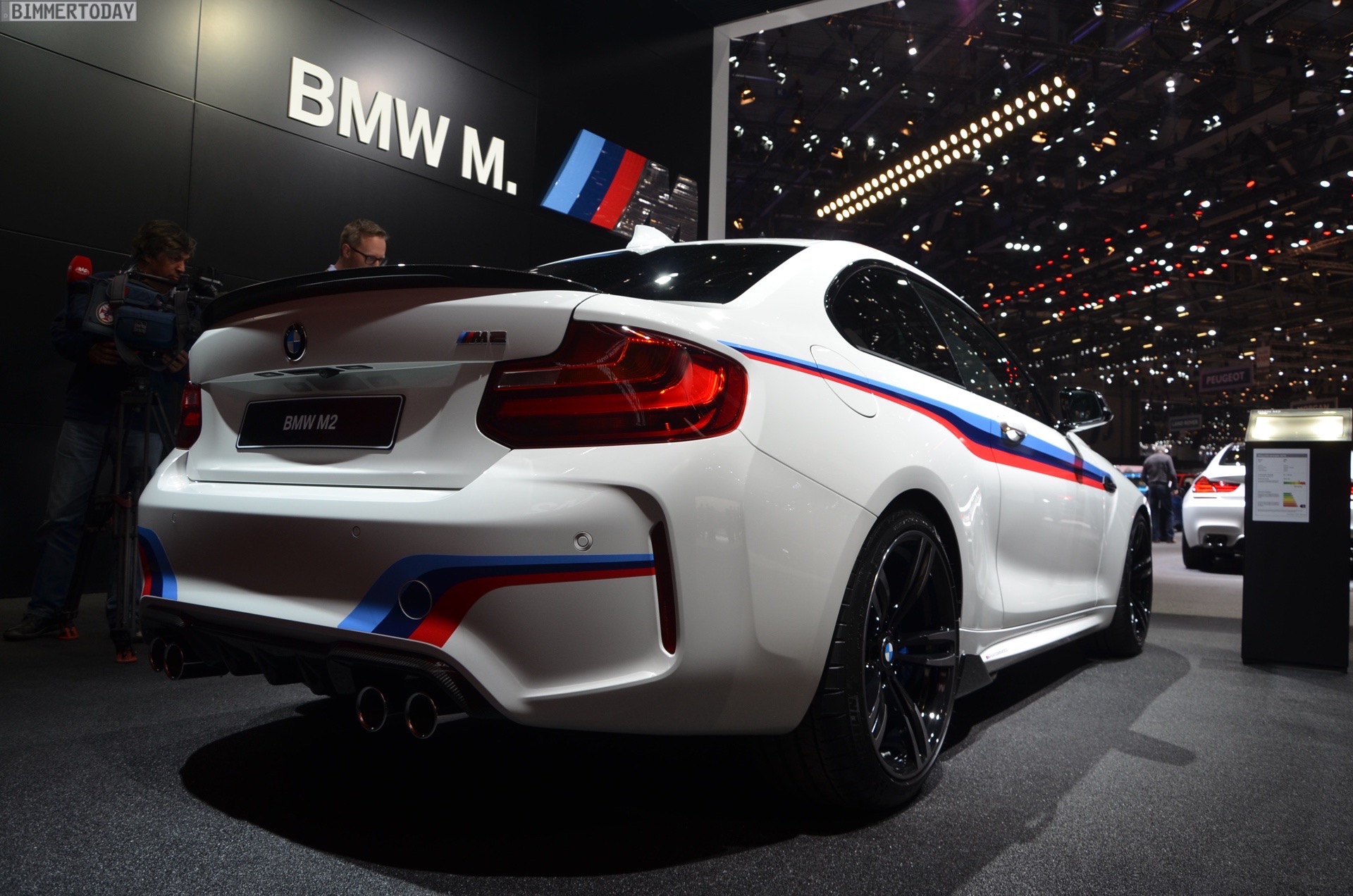 Der offizielle Marktstart des neuen BMW M2 folgt erst im April, das neue BMW M Performance Tuning-Zubehör wird aber schon jetzt auf dem Genfer Autosalon 2016 erstmals dem Publikum präsentiert. Unsere Live-Fotos zeigen den Kompaktsportler im vollen M Performance-Look, wie üblich glänzt das Fahrzeug dabei mit einer Lackierung in Alpinweiß uni und lässt die Tuning-Accessoires so besonders gut zur Geltung kommen.