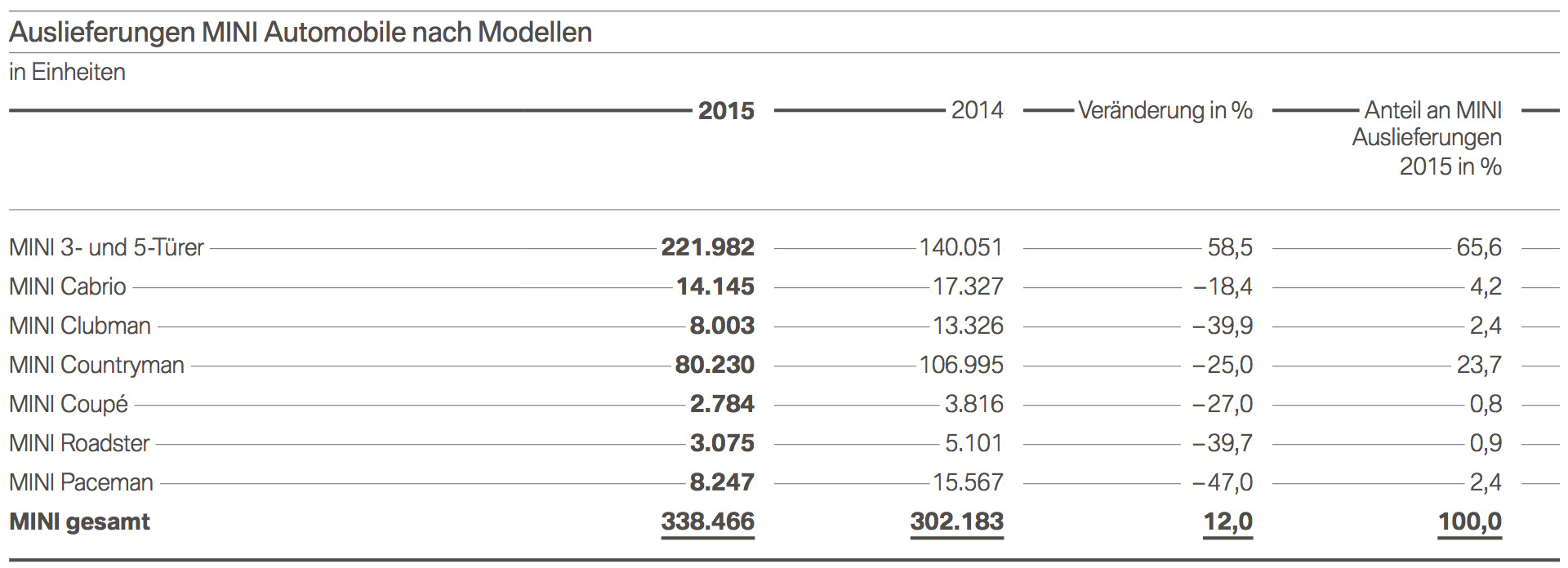 Beim Blick zurück auf das Jahr 2015 gewährt die BMW Group wie üblich auch einen Blick auf die weltweiten Verkaufszahlen nach Baureihen und Modellen. Wer sich etwas genauer mit dem Unternehmen befasst, findet in diesen Statistiken immer wieder interessante Details und erhält auch einen guten Eindruck davon, in welche Richtung sich die Prioritäten in den nächsten Jahren verschieben könnten.
