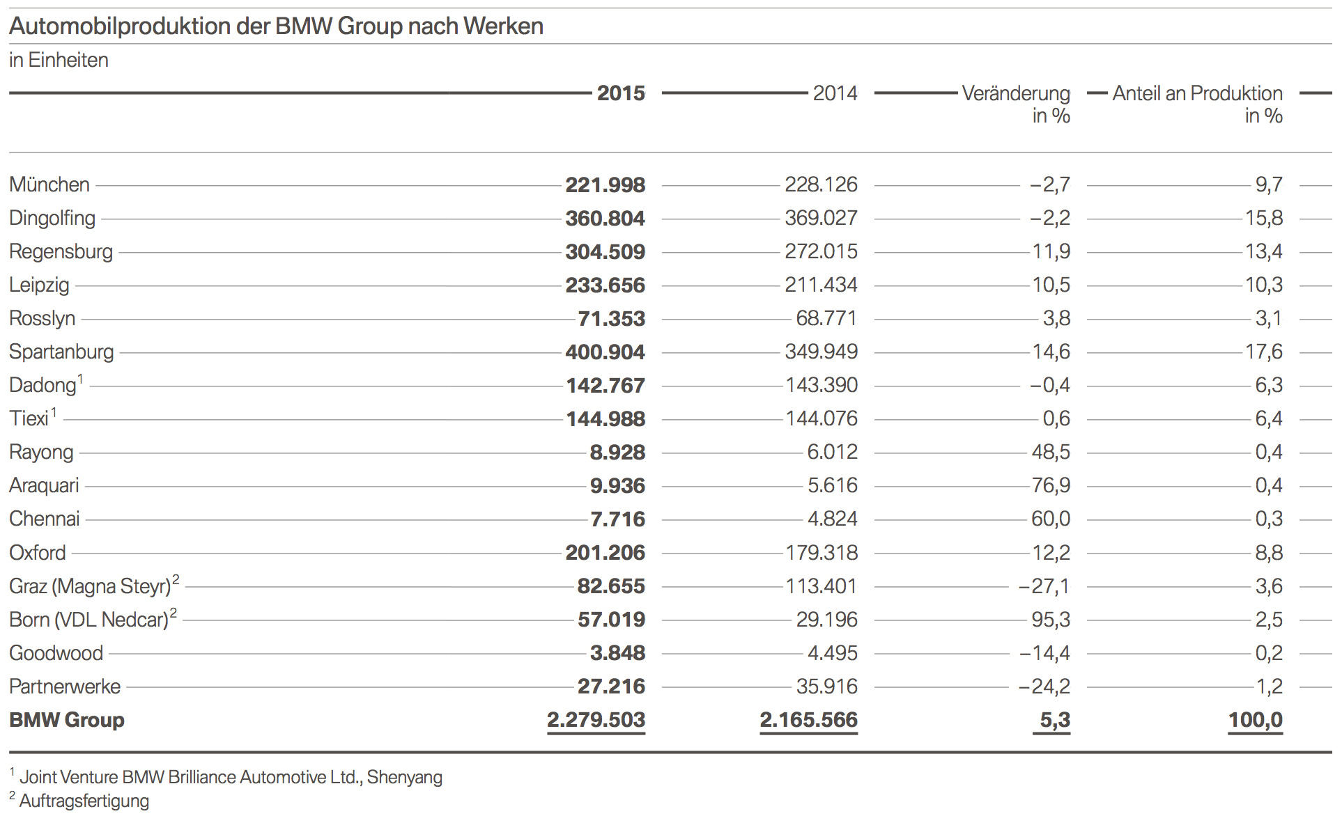 In unserer Bilder-Galerie greifen wir noch einige weitere Statistiken aus dem BMW Group Geschäftsbericht 2015 auf, darunter auch die Verteilung des weltweiten Absatzes nach Regionen und Märkten sowie die Verteilung der Produktion auf die einzelnen Werke.