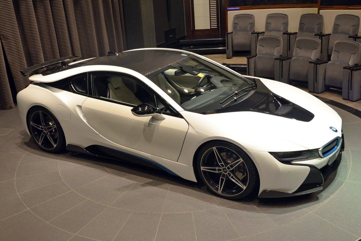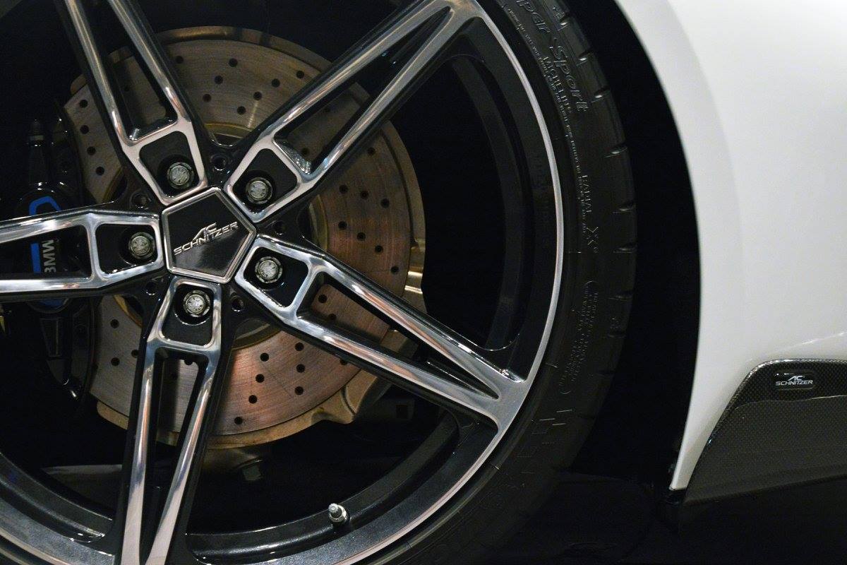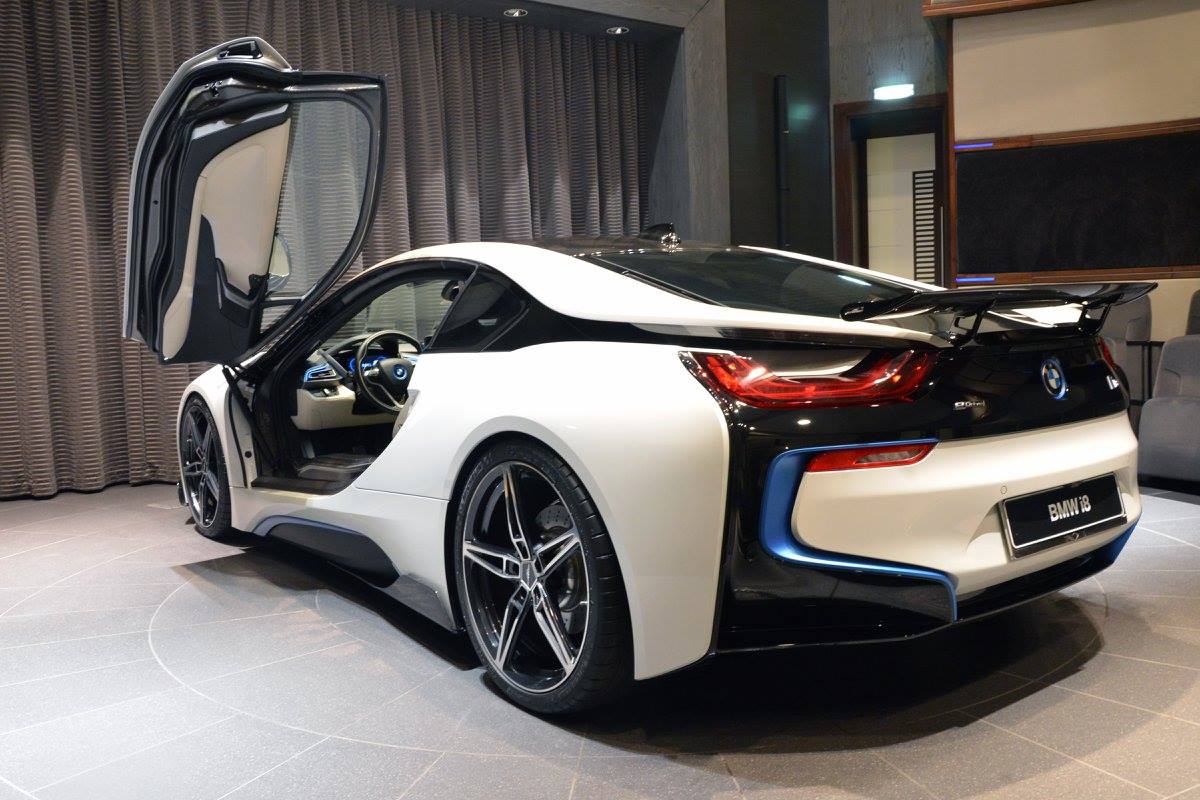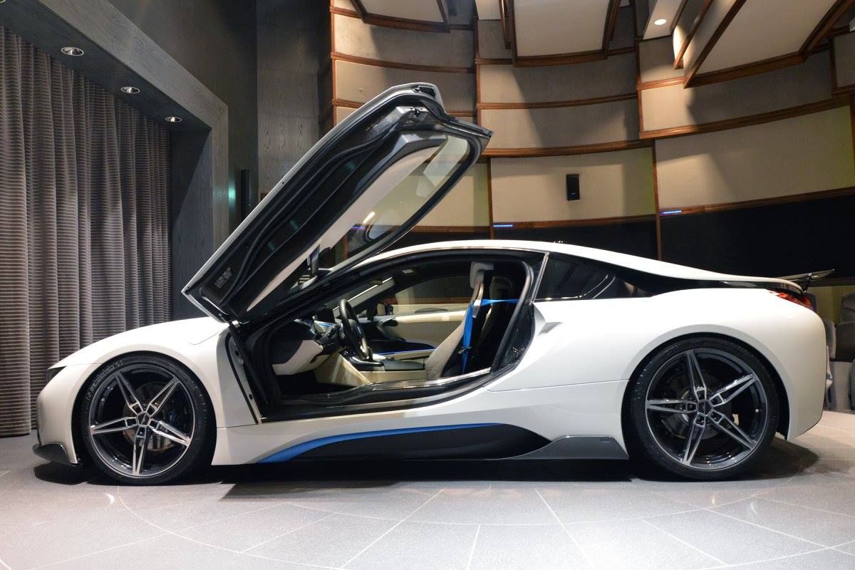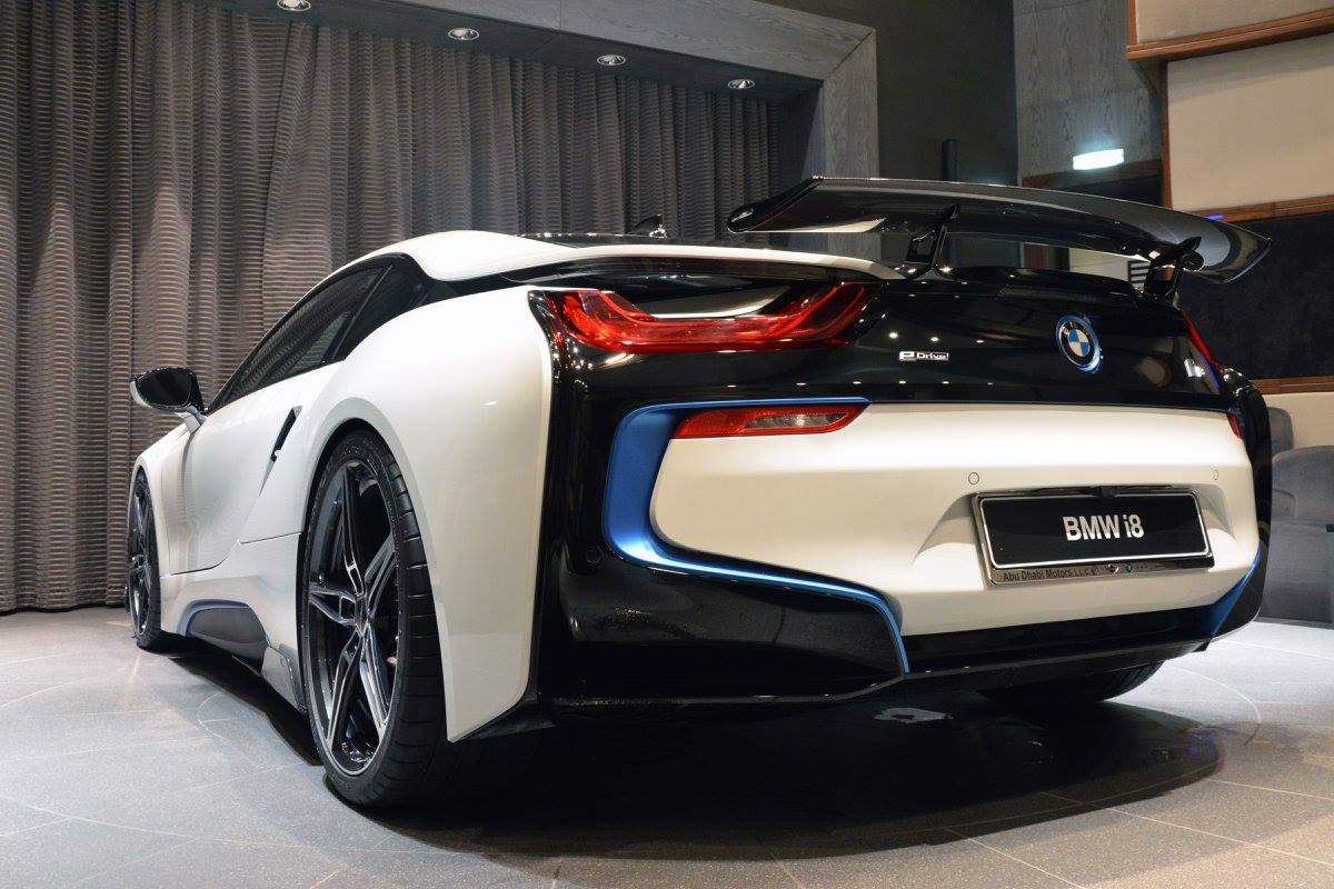 Der gezeigte Plug-in-Hybrid steht auf 21 Zoll großen Schnitzer-Felgen und trägt außerdem die Aerodynamik-Komponenten aus Aachen, die in Sicht-Carbon ausgeführt sind und so farbliche Akzente zur hellen Lackierung in Kristallweiß Perleffekt setzen. Außerdem passt der Hightech-Werkstoff auch technisch perfekt zum BMW i8, dessen komplette Fahrgastzelle aus Carbon besteht und entscheidend zum vergleichsweise niedrigen Gewicht des Hybriden beiträgt.