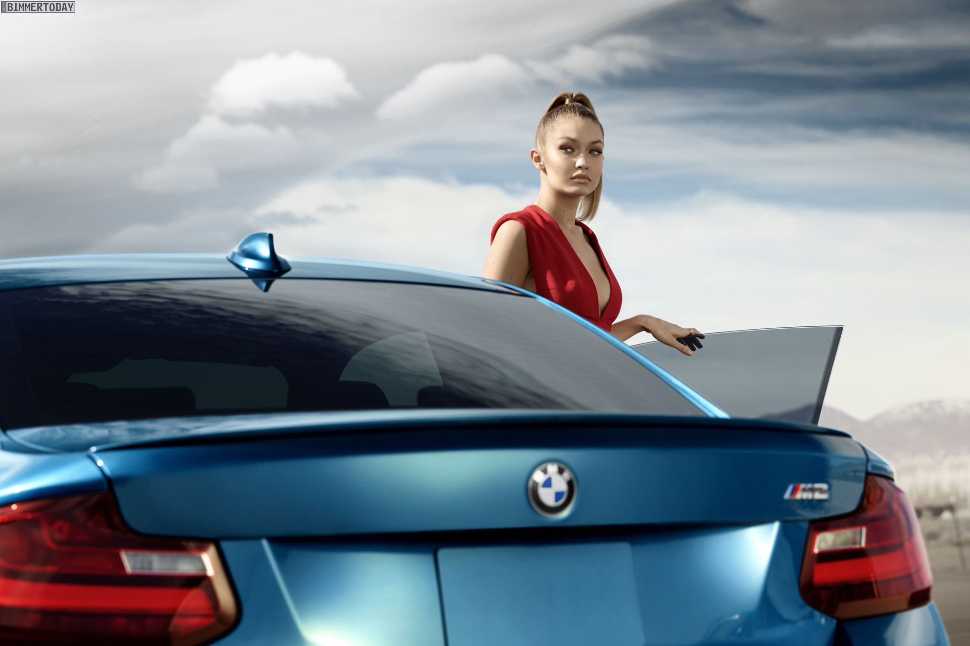 Update: Neue Fotos zeigen Gigi Hadid bei der Arbeit mit dem BMW M2 Coupé. Und sie eignen sich durchaus auch für den Desktop-Hintergrund.