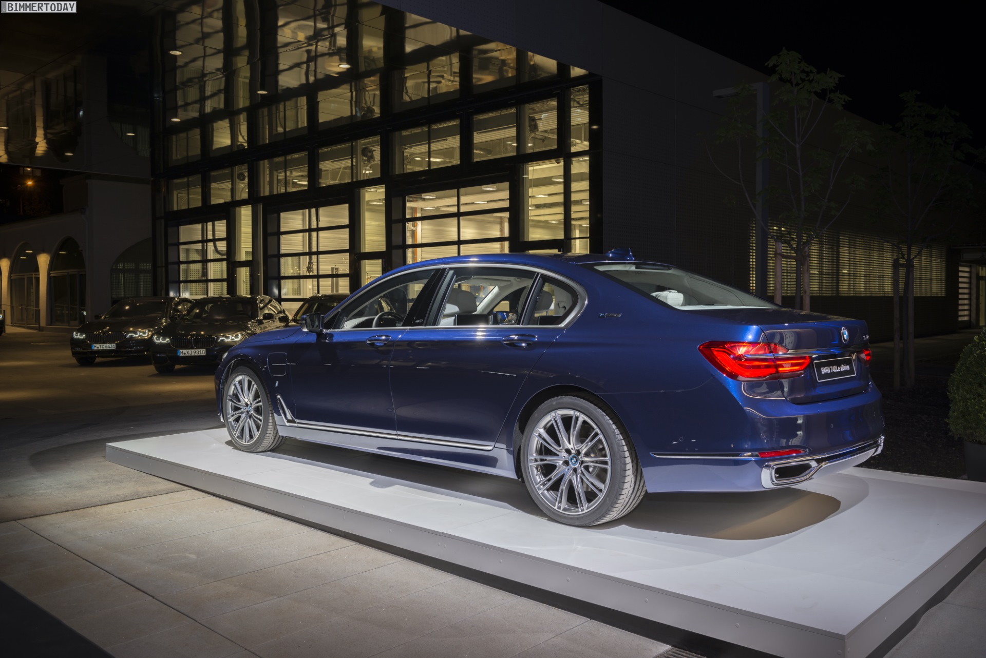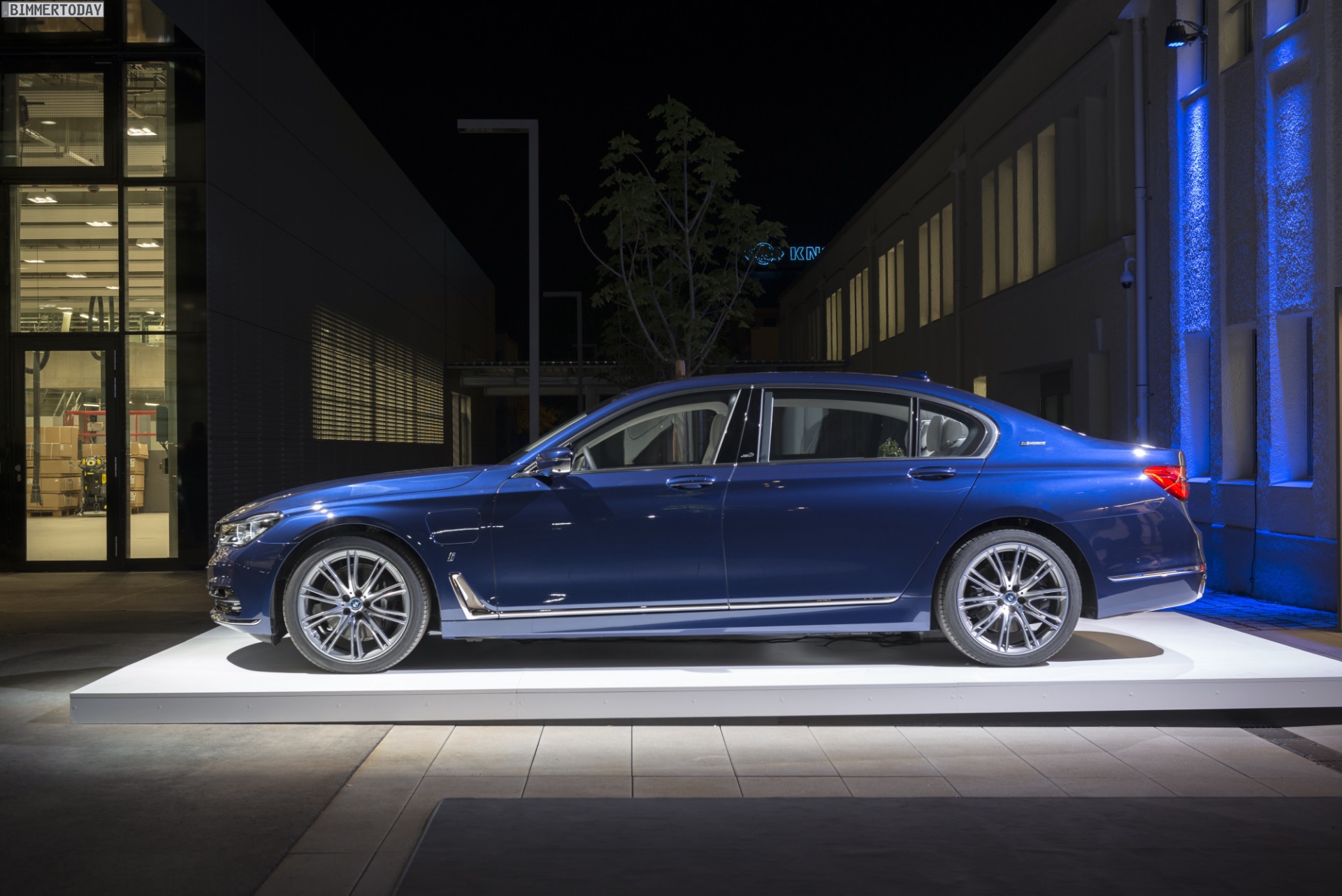 Die besondere Brillanz und Tiefenwirkung der exklusiv für die 100 Exemplare des BMW 7er The Next 100 Years entwickelten Individual-Lackierung Centennial Blue metallic lässt sich zwar auf Fotos höchstens ansatzweise transportieren, aber wir erhalten zumindest den bisher besten Eindruck von der kräftigen Farbe. Präsentiert wurde das Sondermodell im renovierten Gebäude der BMW Group Classic, das schon vor ein paar Wochen zur Ausstellung spannender Exponate aus 100 Jahren BMW-Geschichte genutzt wurde.