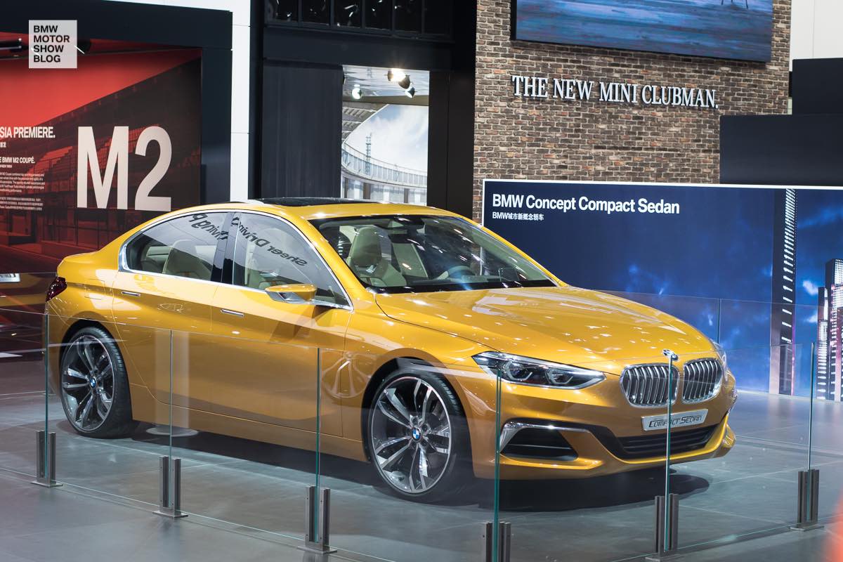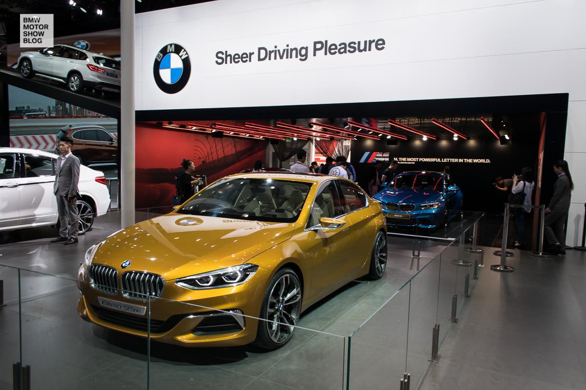 Auf der Auto China 2016 präsentiert sich die prinzipiell unveränderte Studie mit einer neuen Lackierung. Sunglow Metallic sorgt für einen deutlich spektakuläreren Look und zeigt, dass sich die BMW 1er Limousine auch in auffälligen Farben sehen lassen kann. Einige Live-Fotos des BMWMotorShowBlog.com zeigen die farbenfrohe Version der Limousine auf der Autoshow in Peking:
