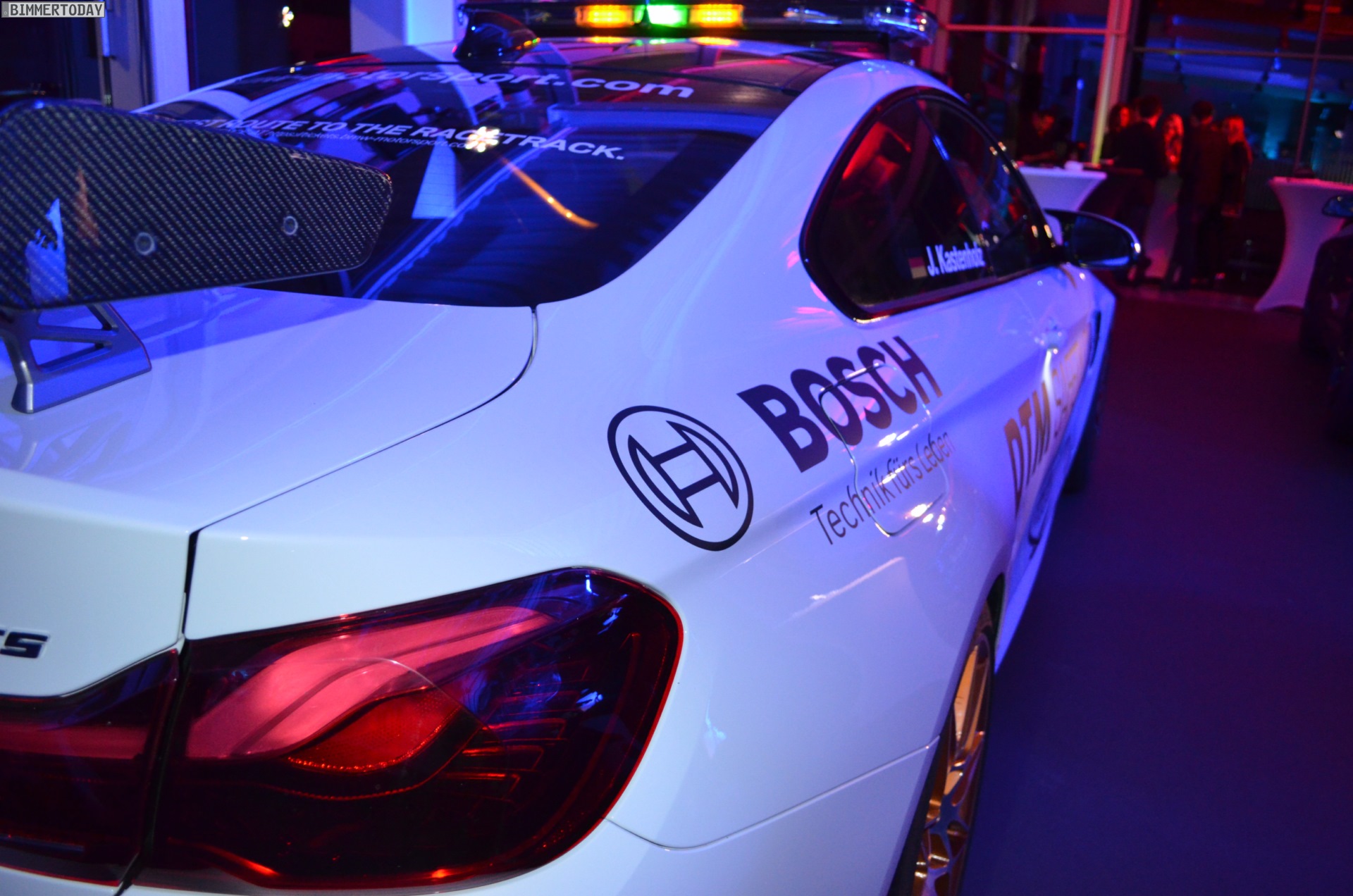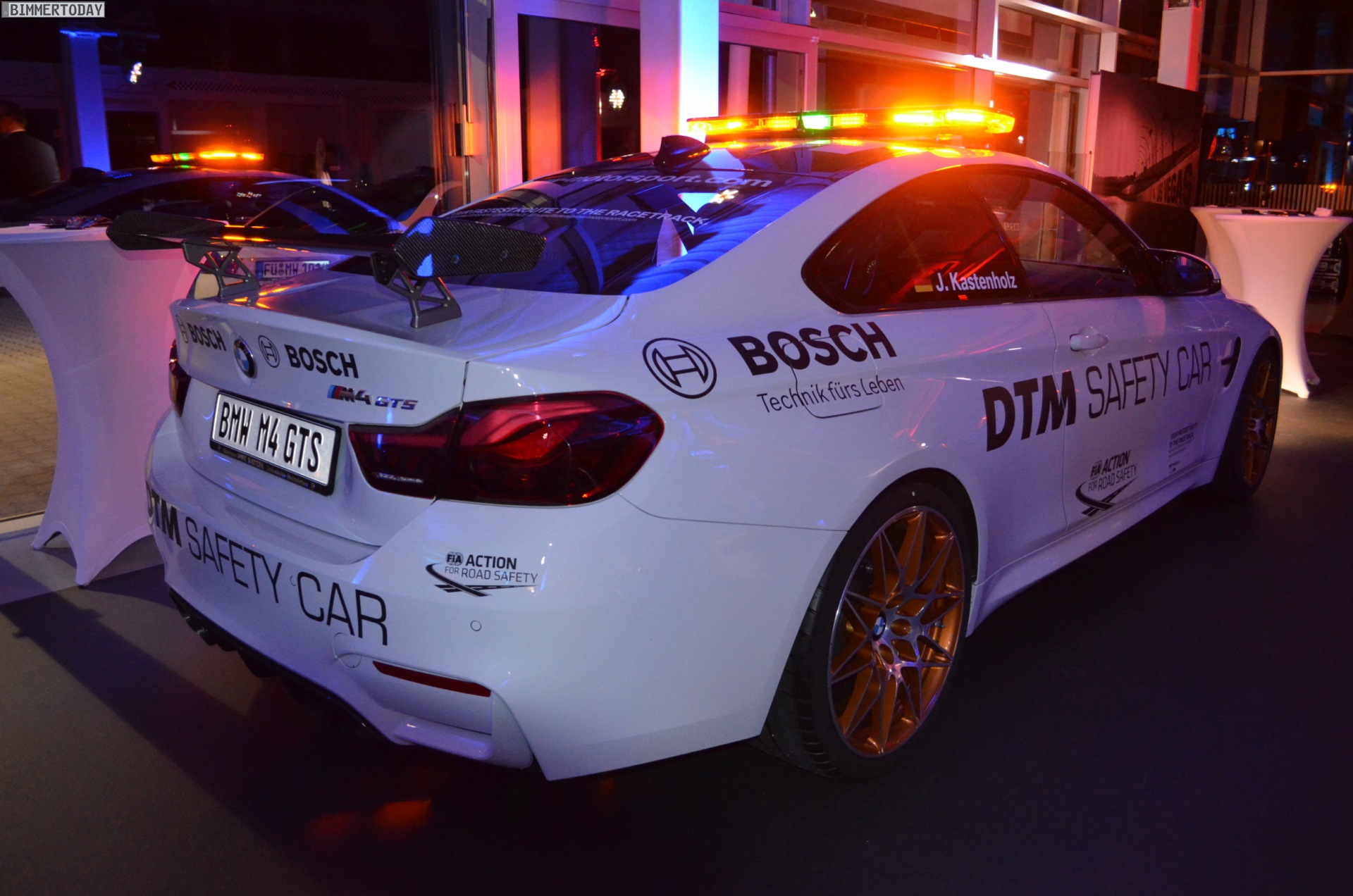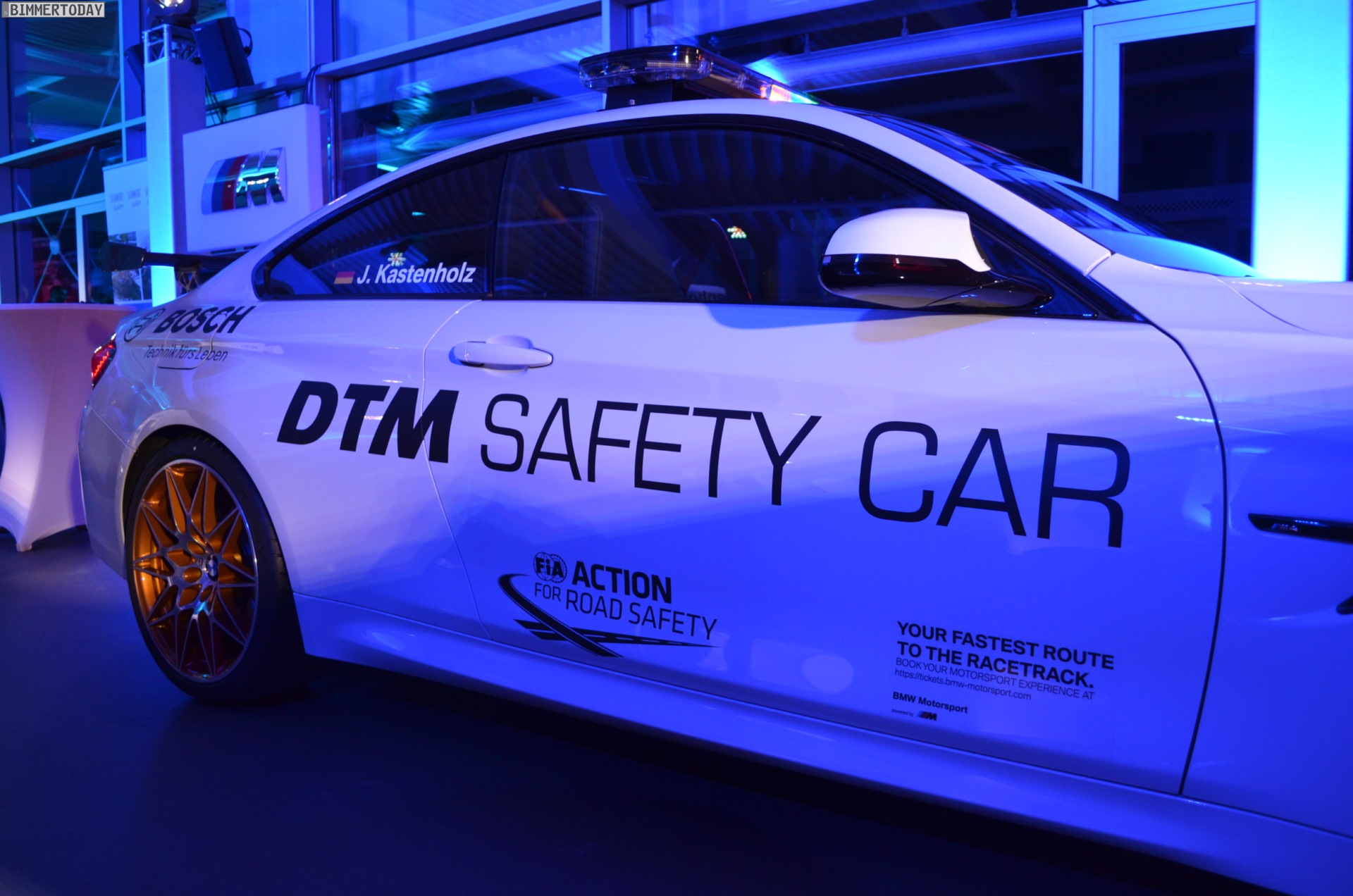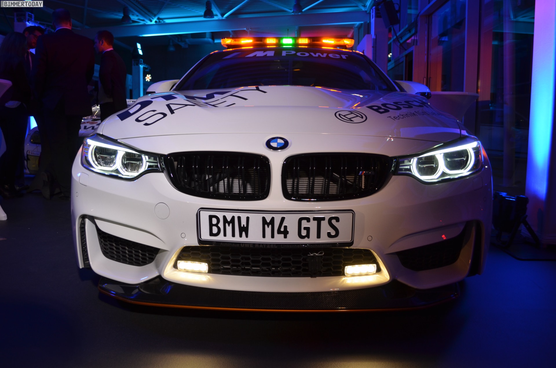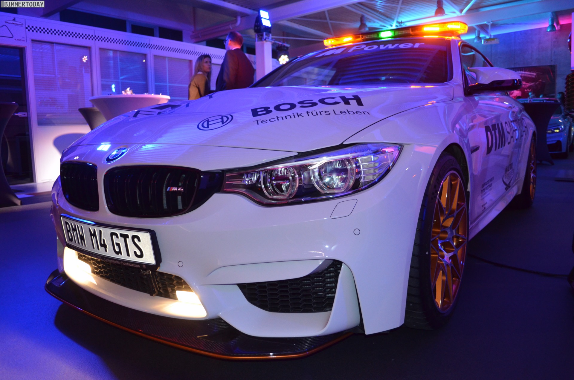 Mit seiner auffälligen Lichtanlage auf dem Dach sorgt das BMW M4 GTS DTM Safety Car bei Dunkelheit im Alleingang für eine beeindruckende Lightshow, im Rahmen der DTM sollen die Lichtsignale für Sicherheit auf der Rennstrecke sorgen. Zum Einsatz kommt das Safety Car bei den Rennen in Hockenheim, Spielberg und auf dem Lausitzring. Bei den übrigen Rennen werden die anderen Hersteller mit modifizierten Fahrzeugen aus ihrem Programm für Sicherheit sorgen.