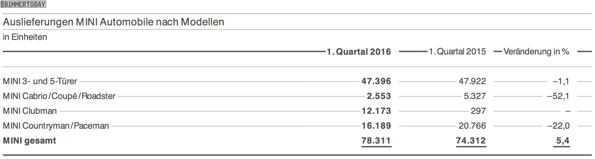 Regional betrachtet steht das Wachstum der BMW Group auch in Q1 2016 auf einem breiten Fundament: In der europäischen Heimat konnten die Verkaufszahlen um 9,5 Prozent auf 257.120 Einheiten gesteigert werden, in Asien entsprechen 183.204 verkaufte Fahrzeuge einem Plus von 9,9 Prozent. Problematisch stellt sich die Situation in Amerika und auf dem wichtigen US-Markt dar, hier lagen die Verkaufszahlen im ersten Quartal um 8,7 respektive 10,8 Prozent unter dem Vorjahr.