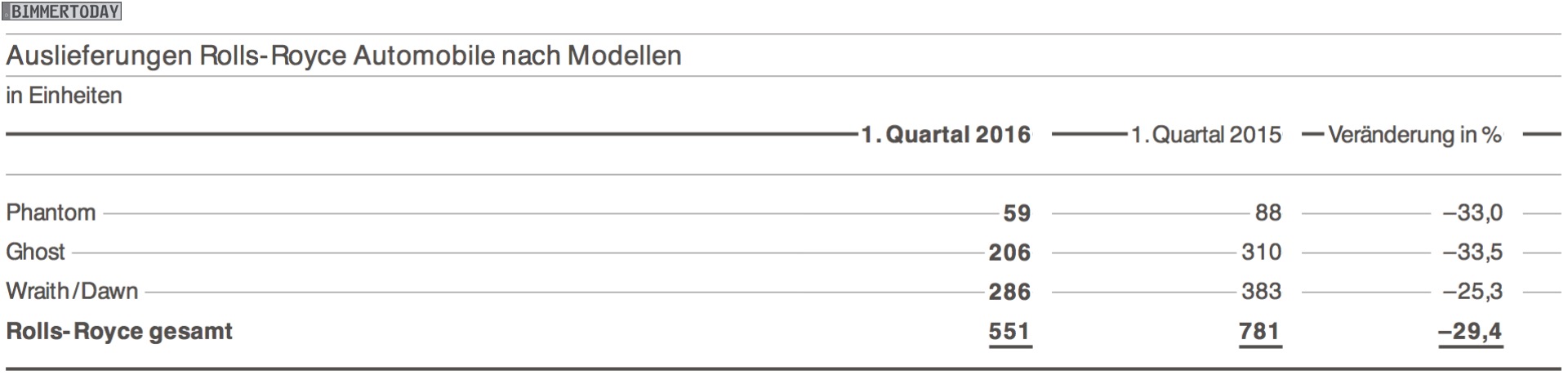 Im Auftakt-Quartal 2016 konnte die BMW Group ihren Absatz im Segment Automobile um 5,9 Prozent auf 557.605 Einheiten steigern, der Absatz von BMW Motorrad stieg um 7,7 Prozent auf 33.788 Einheiten. Beim Blick auf die einzelnen Baureihen fallen einige leichte Rückgänge bei wichtigen Baureihen auf, diese kommen aber unter Berücksichtigung des Modellzyklus wenig überraschend. Starke Zuwächse verbuchen X1 (+67,6%), 2er-Reihe (+56,3 Prozent), X3 (+26,9%) und die BMW 7er-Reihe (+20,3%).